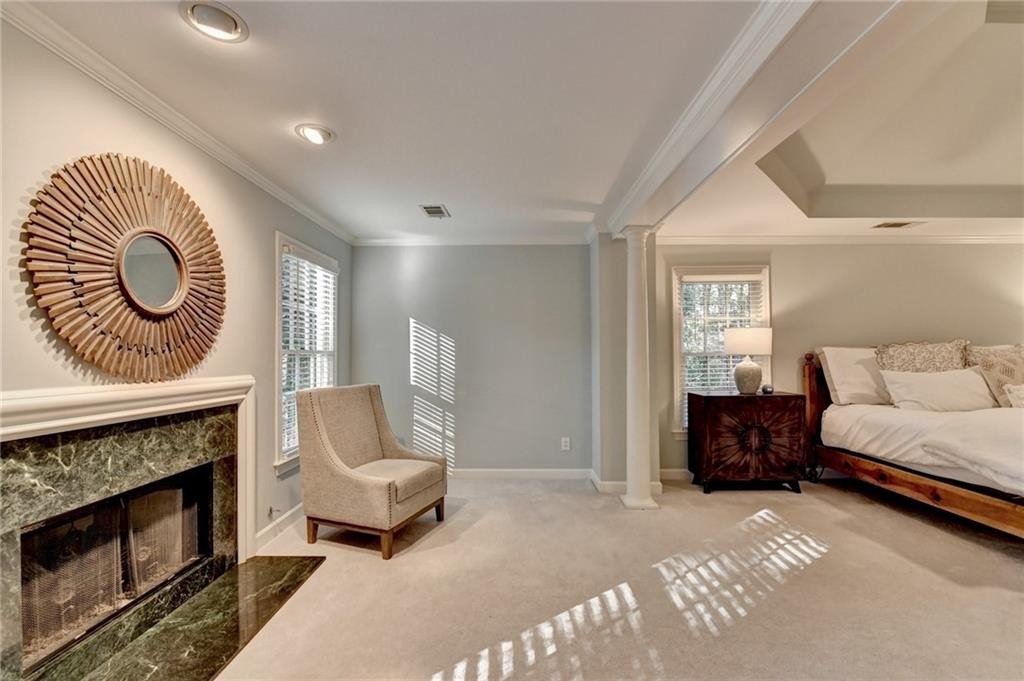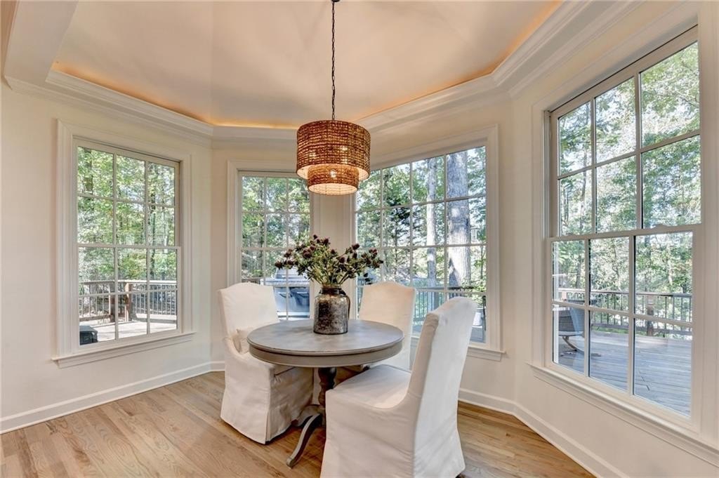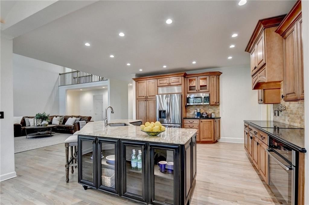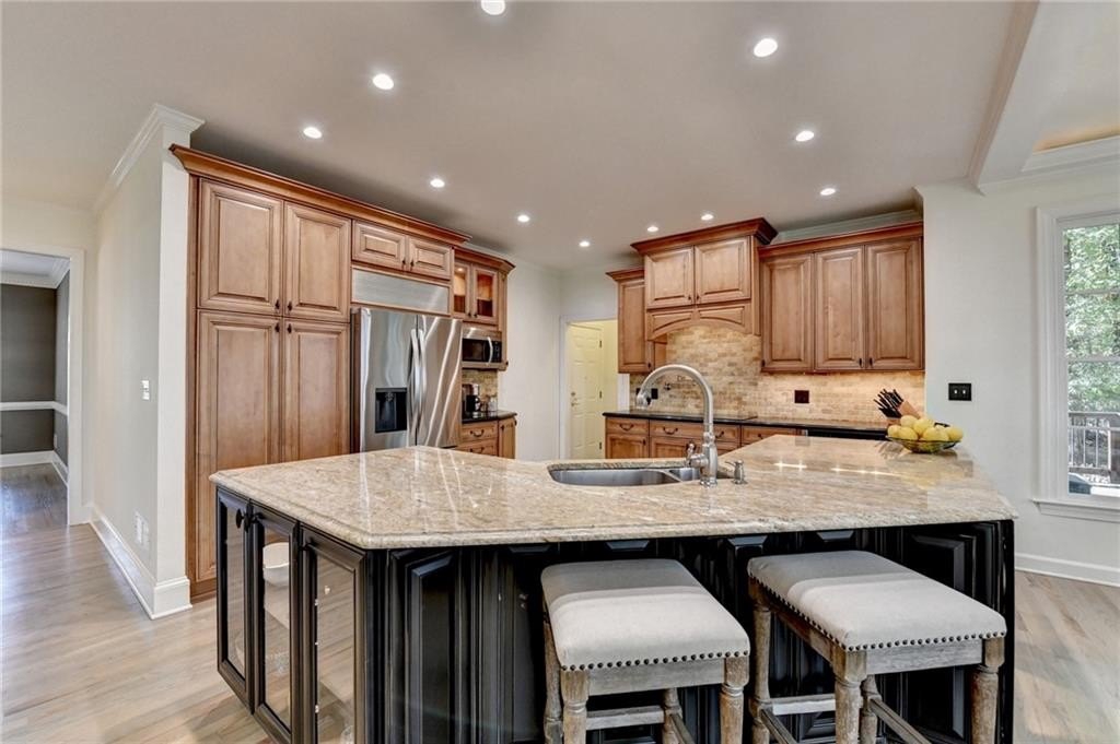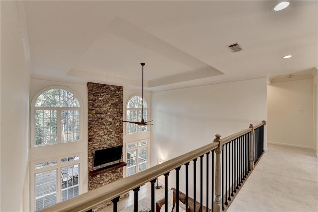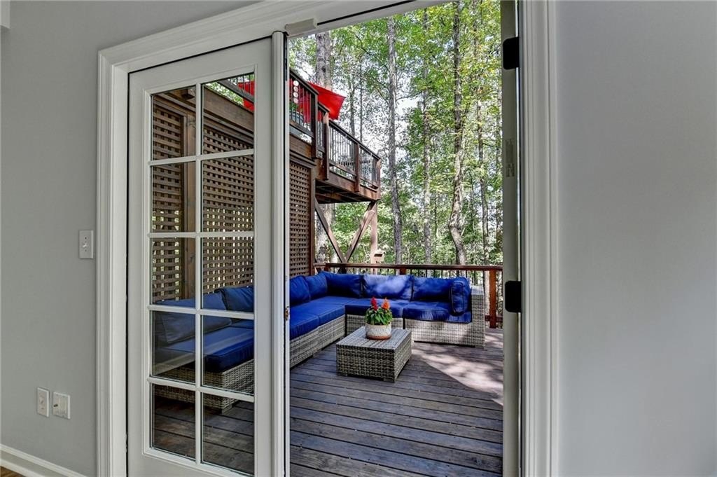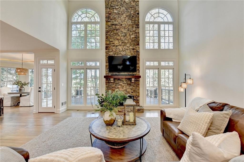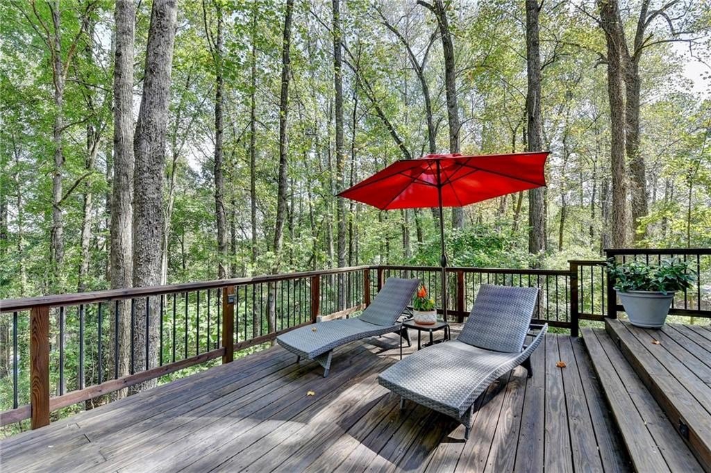 Wow! This home is truly a masterpiece on a quiet cul de sac in the heart of Johns Creek… It has been impeccably maintained and wonderfully updated. You will fall in love with the open flow of the home and its dramatic features. Refinished hardwoods grace the main level along with freshly painted walls, new designer lighting and new stair spindles. The huge two-story family room has such a presence with the dramatic floor to ceiling stacked stone fireplace and custom wood mantle. You are steps away from the oversized custom kitchen with gorgeous cabinets, pull out drawers, large pantry, abundant storage, under counter lights, pot filler as well as massive island with lighted glass cabinetry that showcases your treasures. The eat in kitchen enjoys so much natural light and overlooks the private backyard and incredible deck. You will absolutely adore spending time on TWO spectacular decks which were rebuilt in 2019 and re-stained in 2025. The main level deck offers sooo much space to relax and entertain. Imagine the parties you can host here! The second deck is off the terrace level. Upstairs you will enjoy an oversized primary suite with sitting area and fireplace, large bath and spacious closet. Three additional secondary bedrooms and two full baths round out the second floor. The terrace level boasts new LVP floors, special acoustic tiles in the media room, full bath with quartz counters and of course the beautiful lower deck. The home features NEW windows across the back of the home, gutter guards, irrigation in the front, LED lighting throughout, two 50 gallon water heaters (2019), newer siding back of home, and NEW DRIVEWAY (2024) It is RARE to find a home as move in ready as this one!