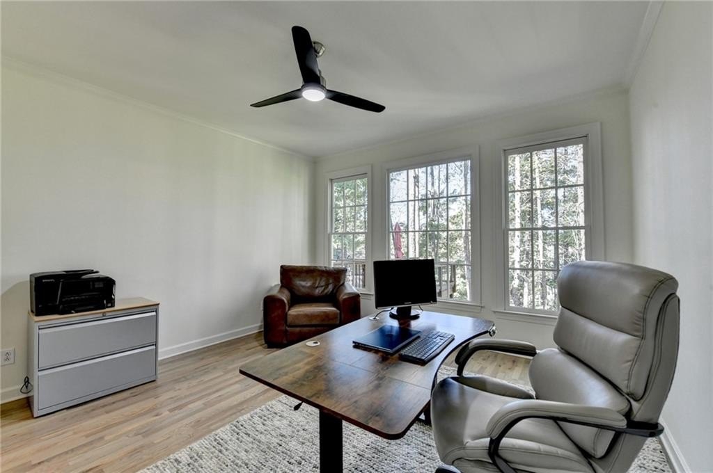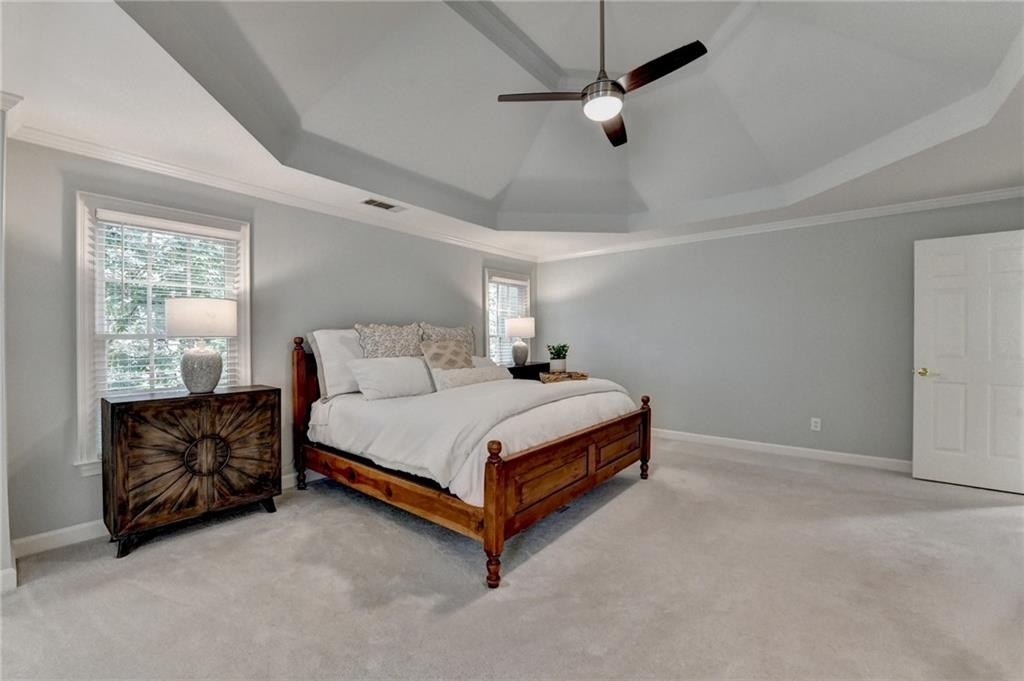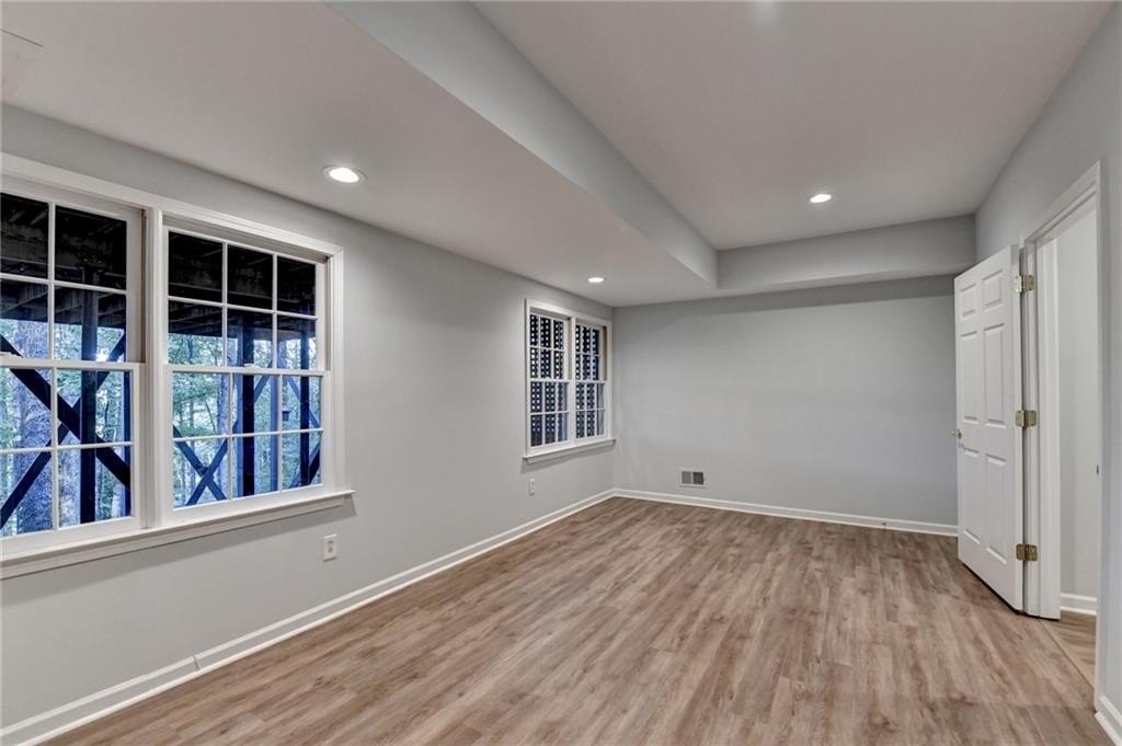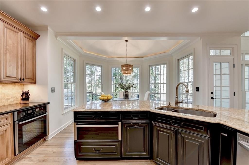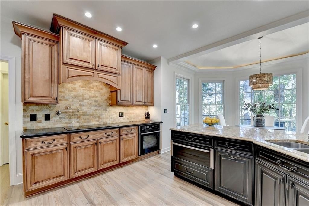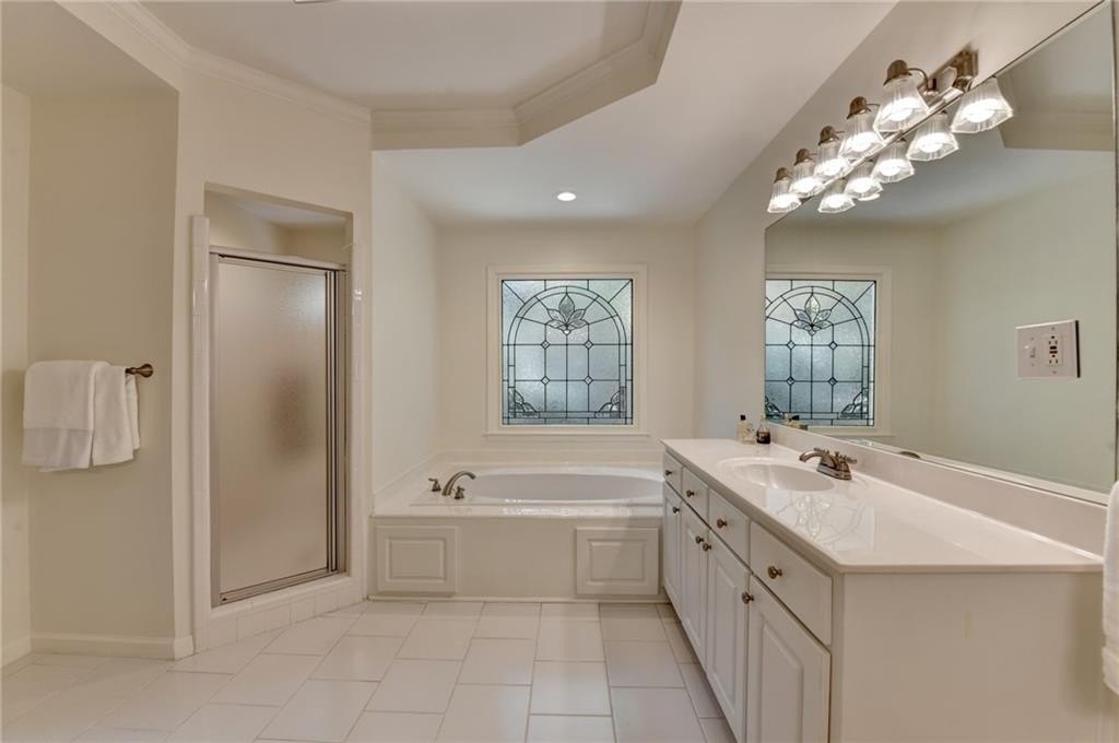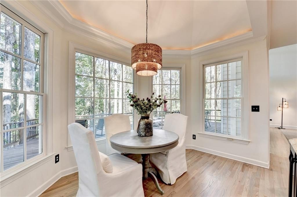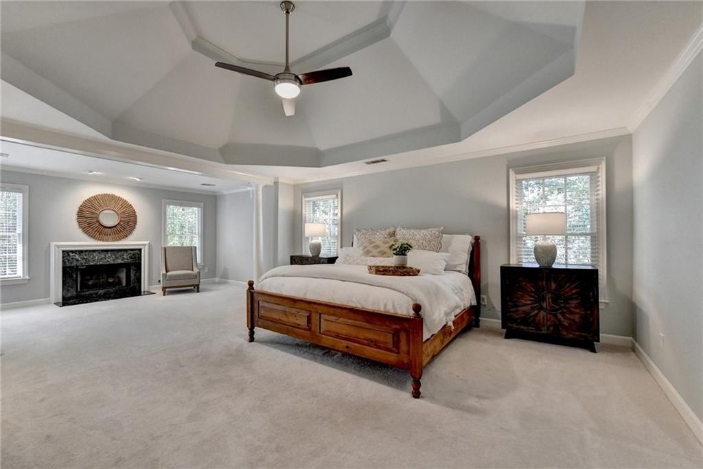 Wow! This home is truly a masterpiece on a quiet cul de sac in the heart of Johns Creek… It has been impeccably maintained and wonderfully updated. You will fall in love with the open flow of the home and its dramatic features. Refinished hardwoods grace the main level along with freshly painted walls, new designer lighting and new stair spindles. The huge two-story family room has such a presence with the dramatic floor to ceiling stacked stone fireplace and custom wood mantle. You are steps away from the oversized custom kitchen with gorgeous cabinets, pull out drawers, large pantry, abundant storage, under counter lights, pot filler as well as massive island with lighted glass cabinetry that showcases your treasures. The eat in kitchen enjoys so much natural light and overlooks the private backyard and incredible deck. You will absolutely adore spending time on TWO spectacular decks which were rebuilt in 2019 and re-stained in 2025. The main level deck offers sooo much space to relax and entertain. Imagine the parties you can host here! The second deck is off the terrace level. Upstairs you will enjoy an oversized primary suite with sitting area and fireplace, large bath and spacious closet. Three additional secondary bedrooms and two full baths round out the second floor. The terrace level boasts new LVP floors, special acoustic tiles in the media room, full bath with quartz counters and of course the beautiful lower deck. The home features NEW windows across the back of the home, gutter guards, irrigation in the front, LED lighting throughout, two 50 gallon water heaters (2019), newer siding back of home, and NEW DRIVEWAY (2024) It is RARE to find a home as move in ready as this one!