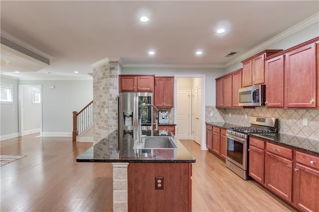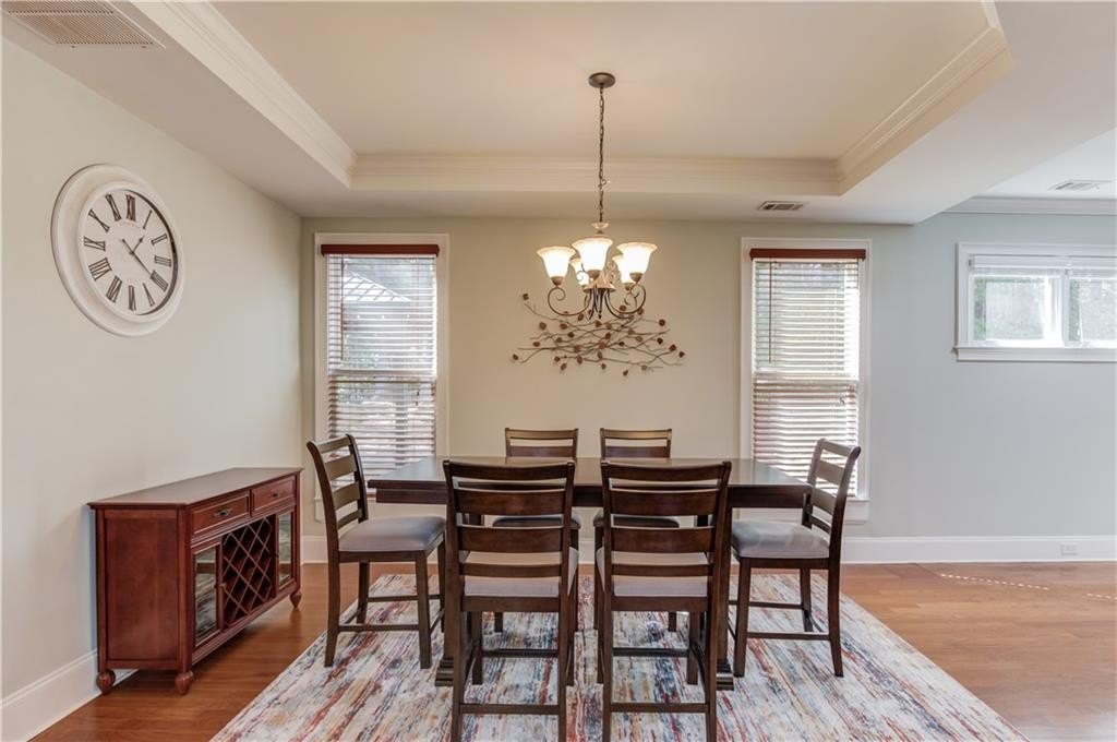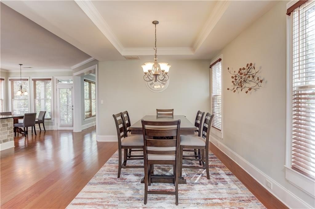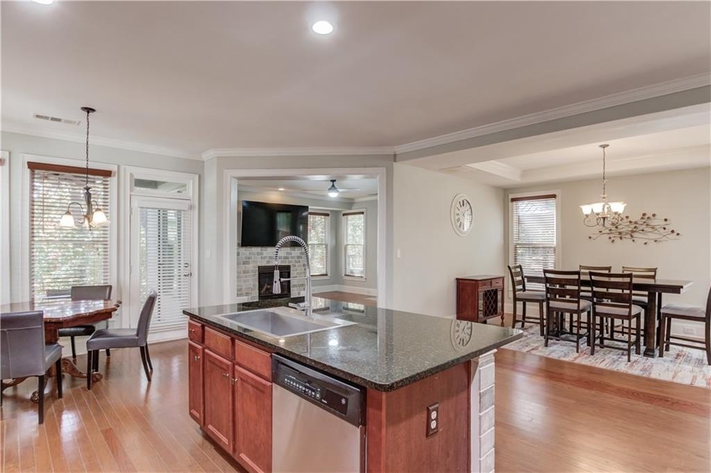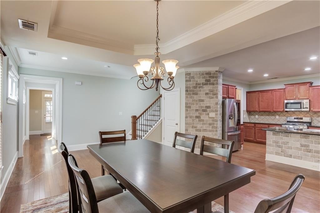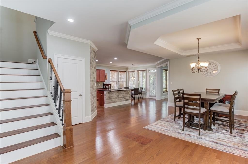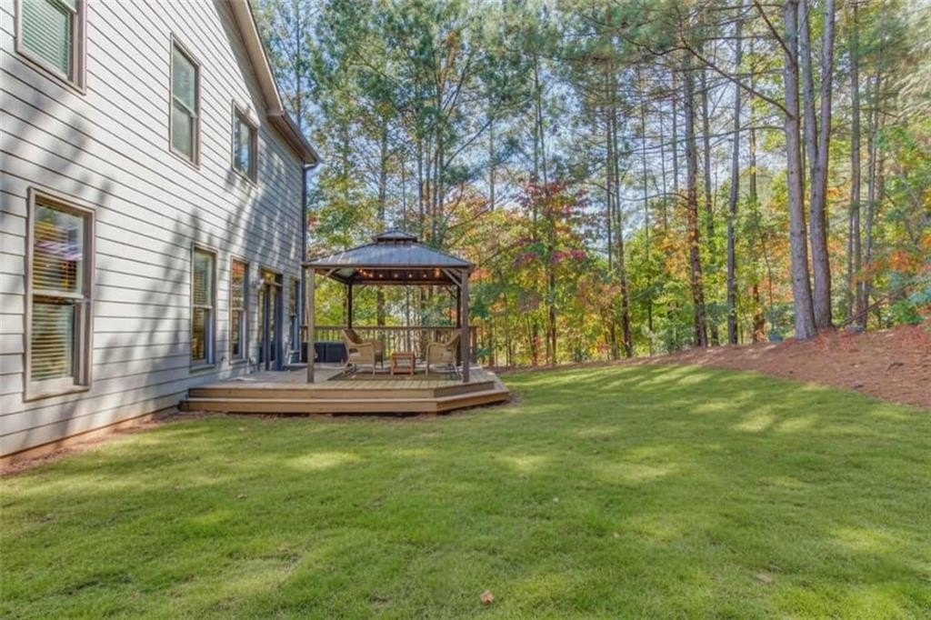 Welcome to this beautifully maintained 4BDRM, 3.5BATH residence in a highly desirable community within the North Gwinnett High School district. Upon entry, you’ll find a bright two-story foyer and an open dining area filled with natural light and accented walls through out the home. The kitchen features stainless steel appliances, stained cabinetry, a large island, stone countertops, tile backsplash, pantry, and plenty of storage. The eat-in kitchen opens to a private backyard with a wooded view and covered patio, perfect for morning coffee or evening gatherings. The living room is warm and inviting with a cozy fireplace, ideal for relaxing or entertaining guests. Upstairs, the oversized primary suite offers a tray ceiling, huge walk-in closet, and a spa-like bathroom with double vanity, soaking tub, and separate shower. Additional bedrooms are generously sized, and the laundry room is conveniently located on the upper level. This spacious home offers comfort, style, and convenience just minutes from the Mall of Georgia. Schedule your showing today!