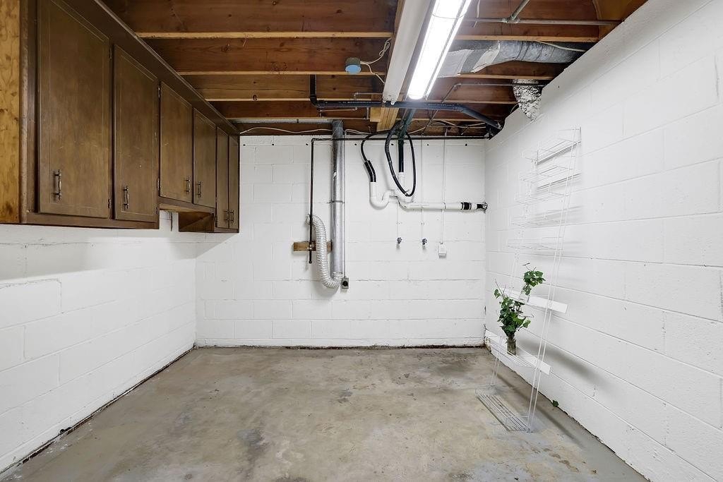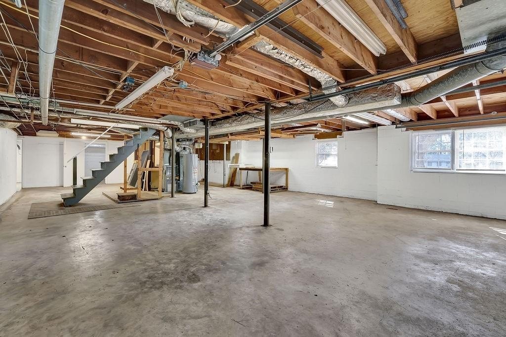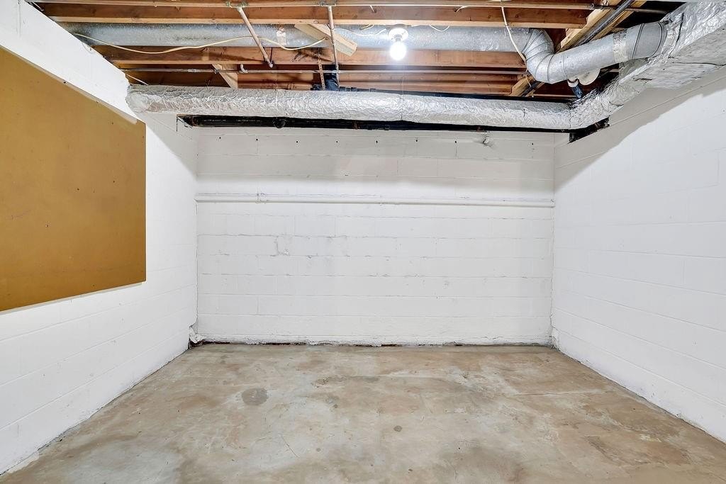 The basement features a garage combination with three rooms equipped with HVAC vents, providing excellent potential for a workshop, gym, or additional living space.