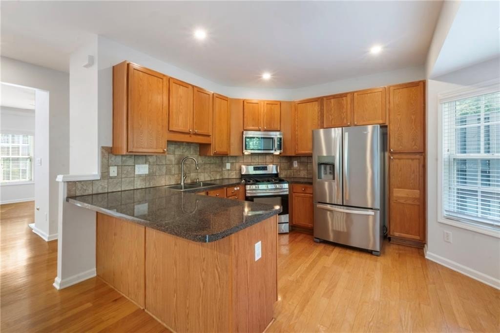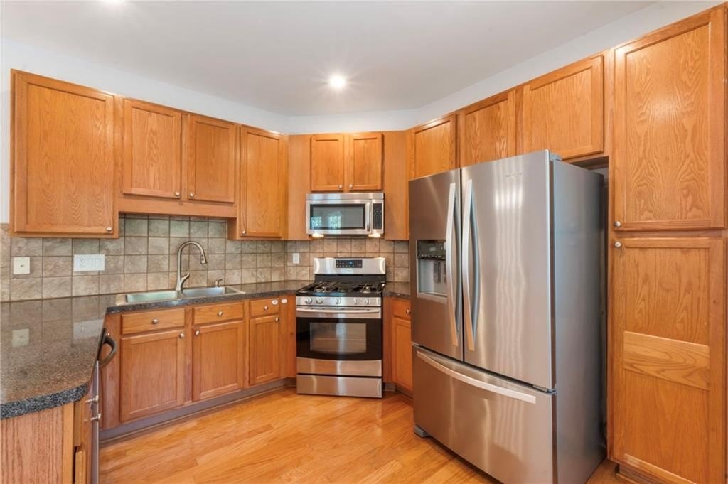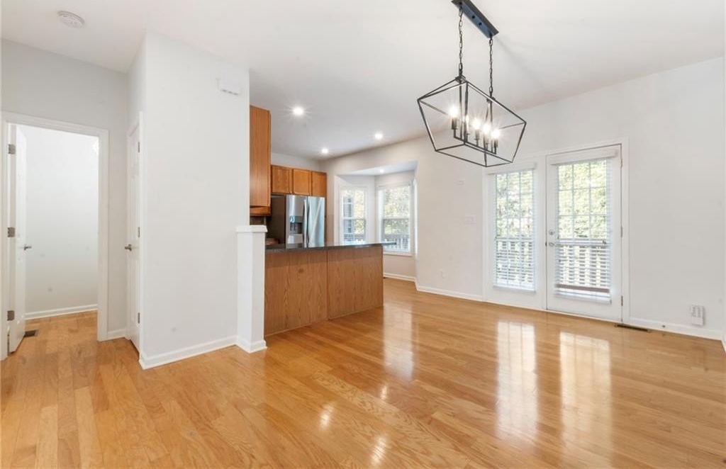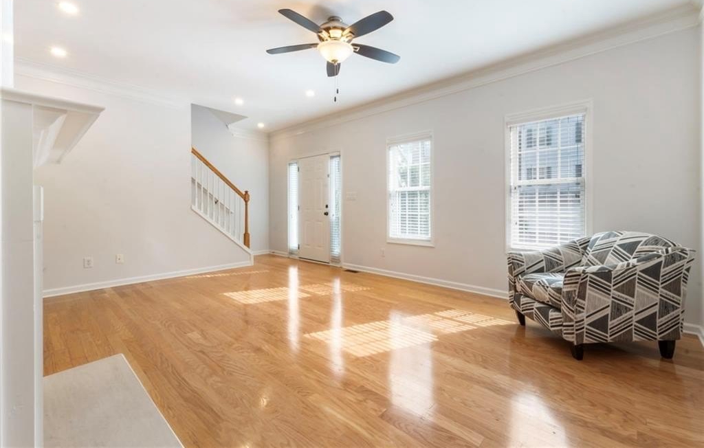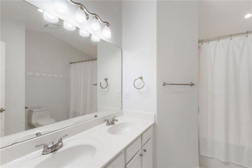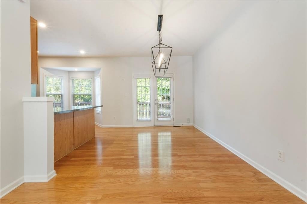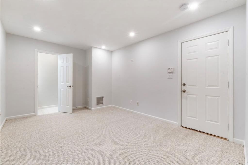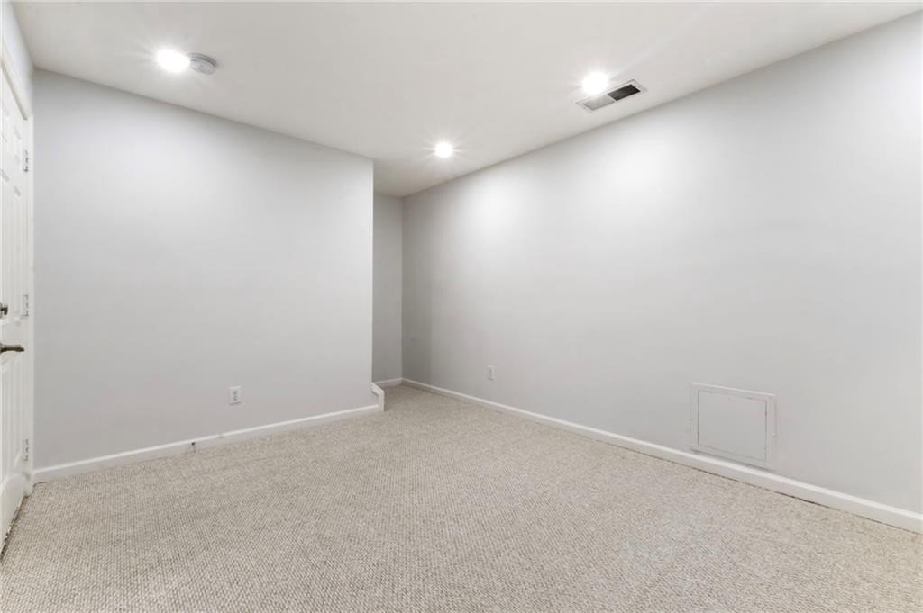 Fantastic opportunity to own a newer construction, 3 bedroom townhome with Fee Simple Ownership in a safe, private community in Sugar Hill. This property features new flooring throughout and recently added recessed lighting on all three levels. The light-filled, fireside living space opens to a separate dining area. The kitchen allows ample storage space, stainless steel appliances, and views to the dining area and living space. There's a half bathroom on this floor as well. A private outdoor deck is private with a lush view of trees. The upper level has a hallway laundry closet, complete with washer and dryer. The primary suite features a tray ceiling, recessed lighting, walk-in closet, and bathroom with double sink vanity. The other upper level bedroom offers en-suite bathroom, spacious closet, and lots of natural light. The terrace level bedroom could be used as a third bedroom or living space. It features a half bathroom and door to the two car garage. This is such an inviting, move-in ready property! It is a treat to show and ready for the next owners!