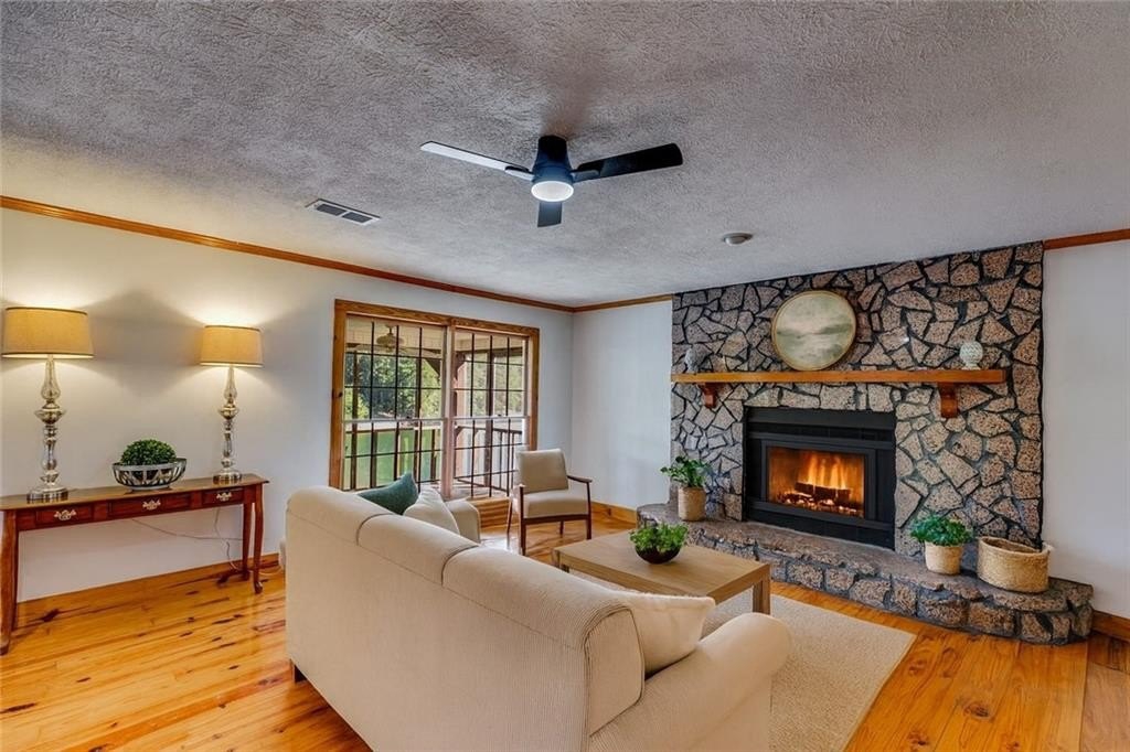 Wake up to sparkling lake views every day in this beautiful 3 bed, 2 bath retreat nestled in the gated community of Fairfield Plantation. Every room captures the beauty of the water. Designed for comfort and entertaining, the open floor plan layout features a spacious family room with a cozy fireplace, a bright kitchen and dining area, and two generously sized bedrooms on the main level. Step outside to the large screened porch or the open deck to enjoy the ever-changing lake views. The finished terrace level adds even more living space, complete with a large bedroom and walk-in closet, a den with its own fireplace, and a walkout patio overlooking the water, perfect for morning coffee or evening sunsets. A versatile flex room offers endless possibilities for an office, gym, or hobby space. Enjoy resort-style amenities including two lakes with a beach, two swimming pools, lighted tennis and pickleball courts, a golf course, walking trails, clubhouse dining, a marina restaurant, and 24-hour gated security. Lake life at its best, private, peaceful, and full of possibilities!