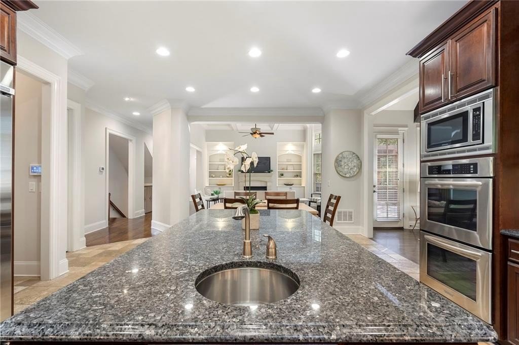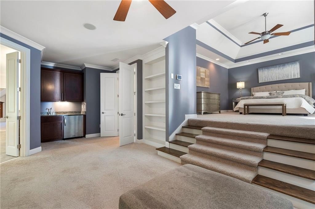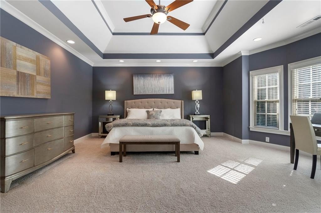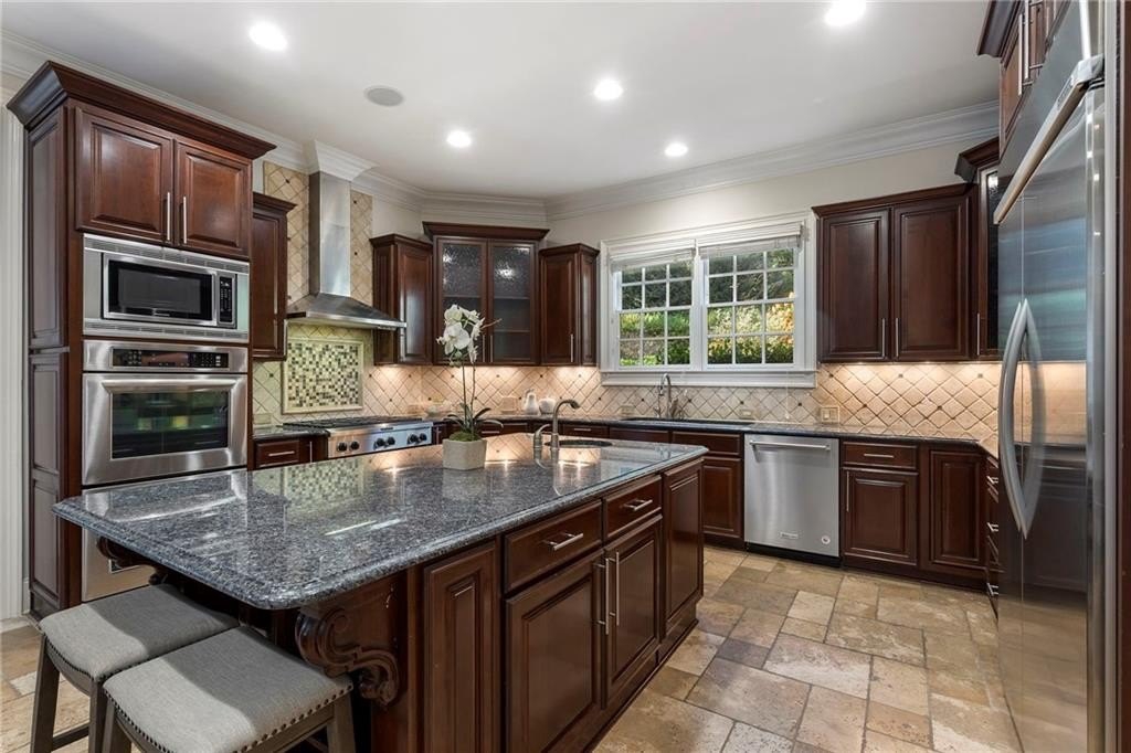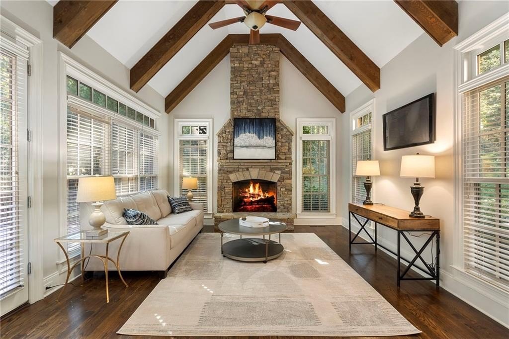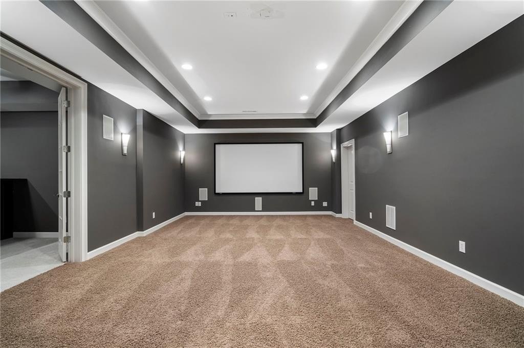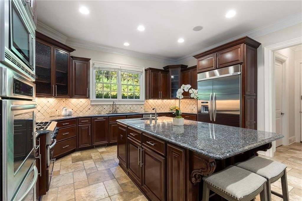 Perfectly situated on a private .70± acre cul-de-sac lot in the prestigious Registry at Vinings Estates, this exceptional residence is a masterful blend of luxury, sophistication, and livability. Offering three impeccably finished levels, the home is designed to accommodate both grand entertaining and comfortable everyday living. A gracious two-story foyer welcomes you into a bright, open floor plan enriched by fine architectural details and abundant natural light. The main level includes a guest suite with a full bath, ideal for visitors or multi-generational living. At the heart of the home, the gourmet kitchen and keeping room with fireplace open to an expansive deck overlooking the private, wooded backyard—creating a seamless indoor-outdoor flow perfect for gatherings and relaxation. The primary suite is a luxurious retreat featuring a fireside sitting area, private screened porch, and a custom walk-in closet of grand scale. The spa-inspired primary bath offers dual vanities, a soaking tub, and a separate steam shower—crafted for indulgent comfort. The terrace level provides an entertainer’s dream space, complete with a private home theater, wet bar, and fitness area, making it equally suited for hosting guests or unwinding in style. Outside, the expansive backyard with Zoysia grass offers unmatched privacy and serenity, with ample room to add a pool and create a resort-style oasis. Additional highlights include a three-car garage and the peace of mind of original ownership and meticulous maintenance. Residents of The Registry at Vinings Estates enjoy access to premier community amenities, including two clubhouses, three swimming pools, tennis and pickleball courts, a fitness center, and a playground. Ideally located near Whitfield Academy, fine shopping, dining, and major conveniences, this home embodies the perfect balance of refined elegance and modern luxury.