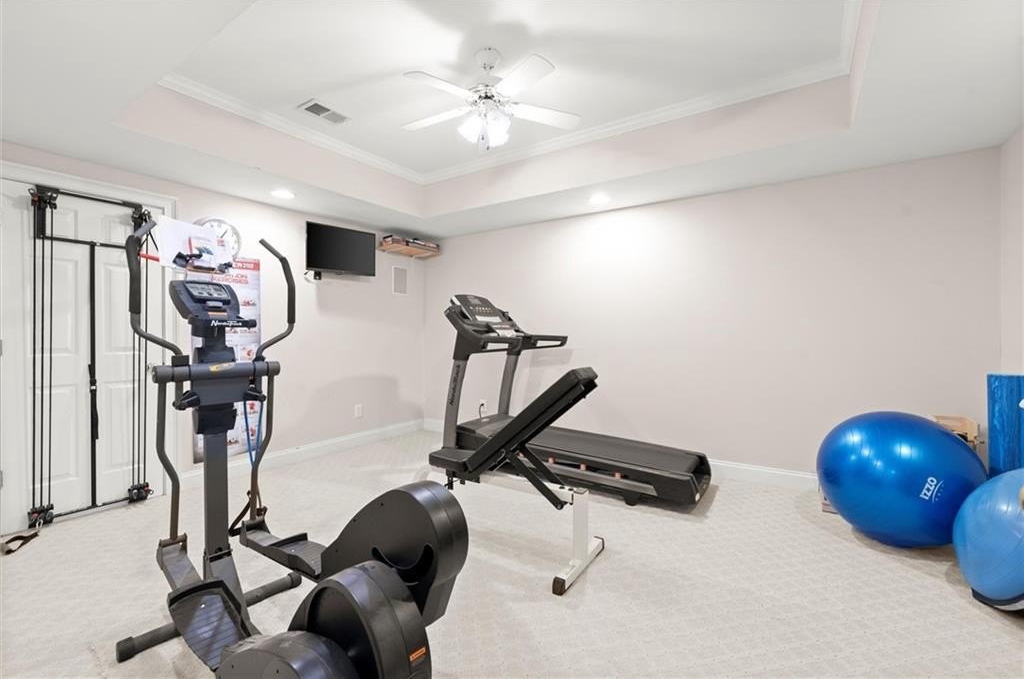 The terrace level offers the ultimate in versatility and luxury, easily serving as an in-law or guest suite with a private exterior entrance. This level features a bedroom, full bath, home theater, media or game room, fitness space, and ample storage.