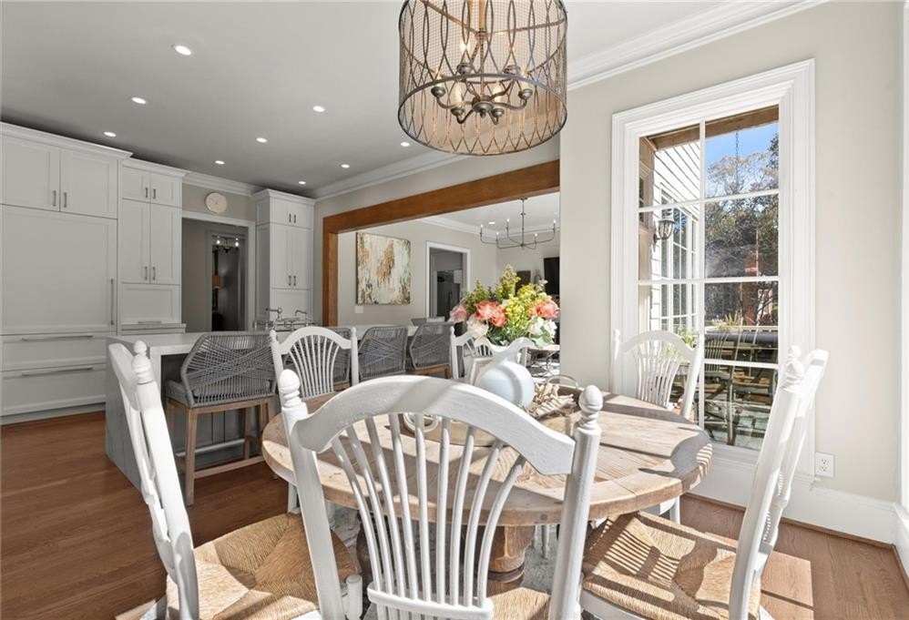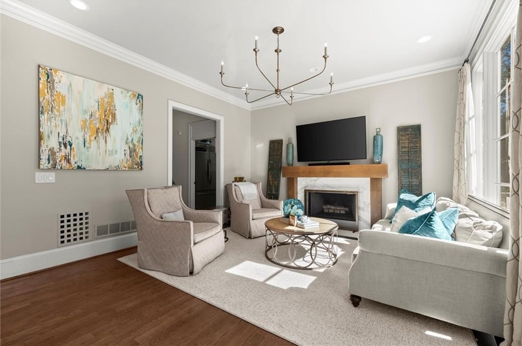 Inside, you’ll find brand-new Renewal by Andersen windows, rich hardwood flooring, and elegant fresh cove moulding framing each light-filled space. A grand dining room sets the stage for sophisticated entertaining, while the versatile front study or formal living room offers a graceful retreat for work or leisure.
