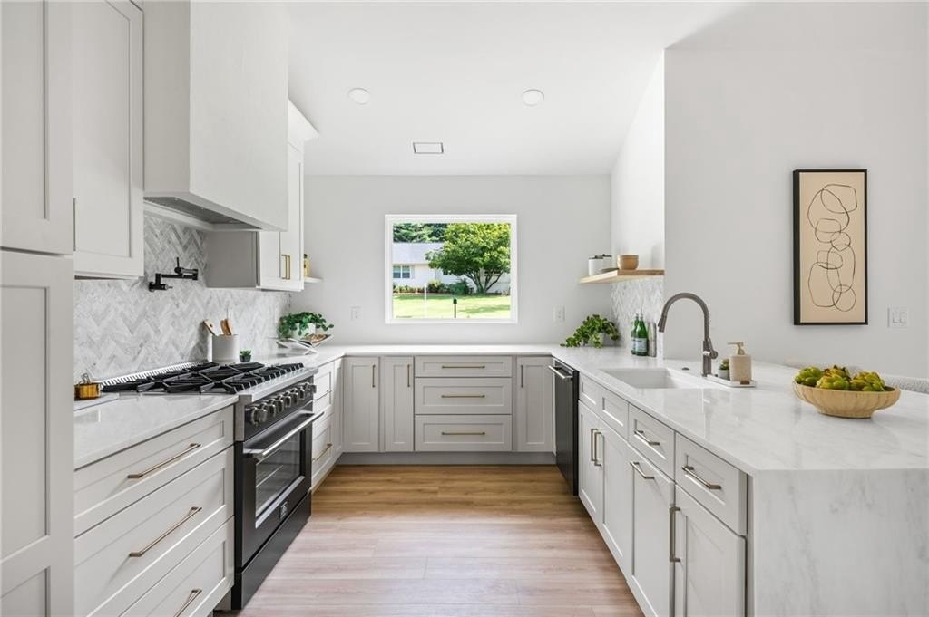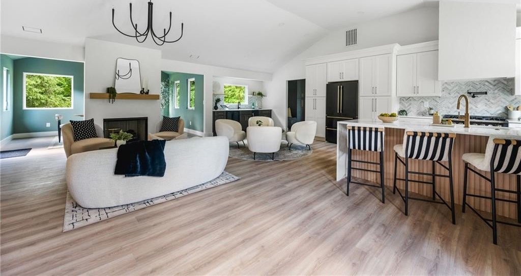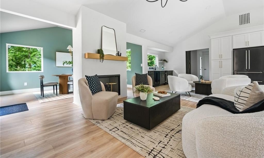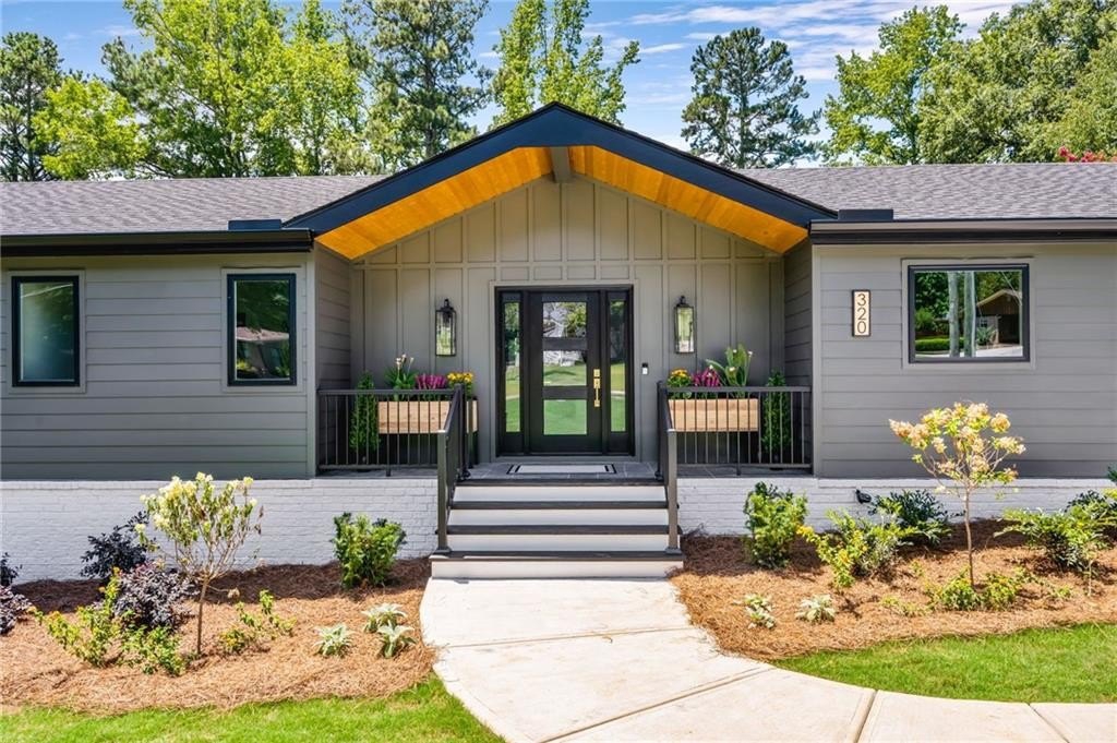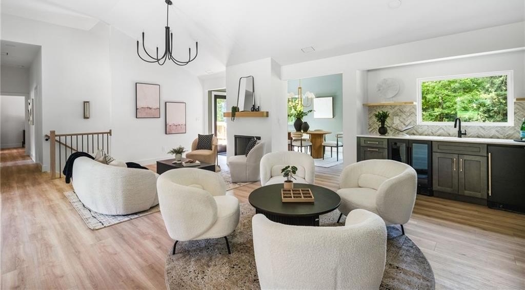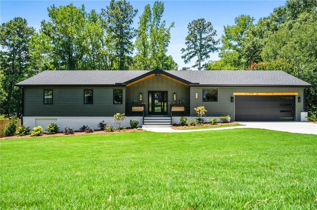 Welcome to your brand new, modern sanctuary in the heart of Downtown Alpharetta lovingly and meticulously rebuilt from the foundation up in 2025. This brand-new ranch-style home is as bright and open as it is refined, with soaring 14-foot ceilings, designer lighting, and custom finishes that set the tone for elevated living.