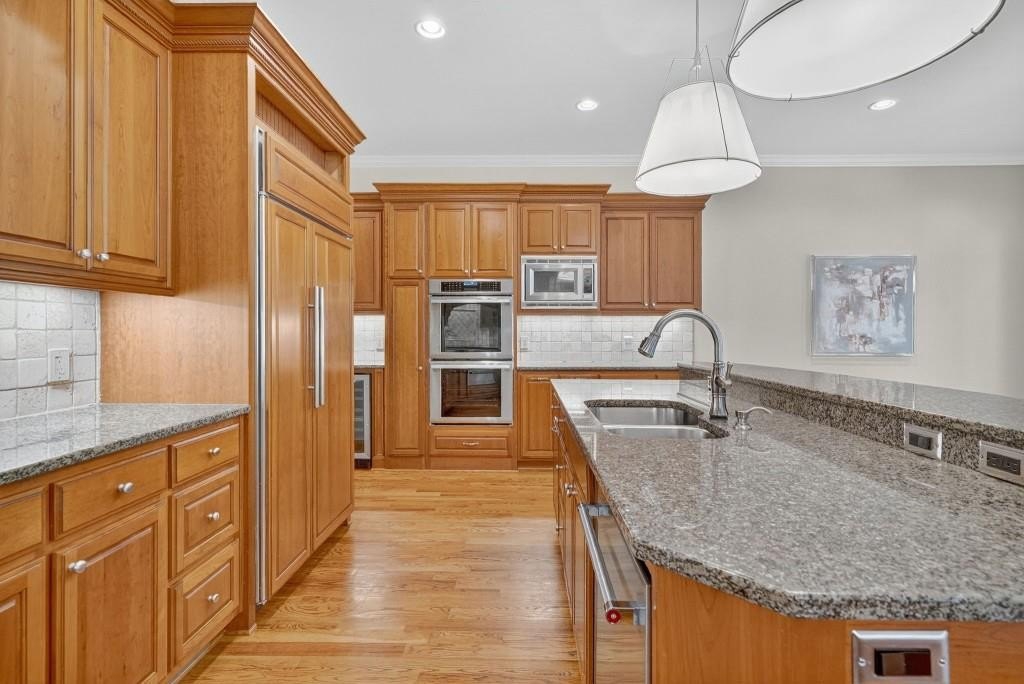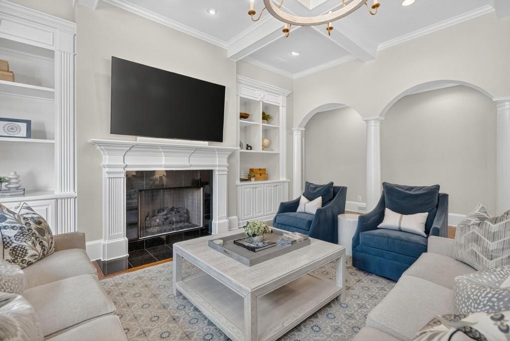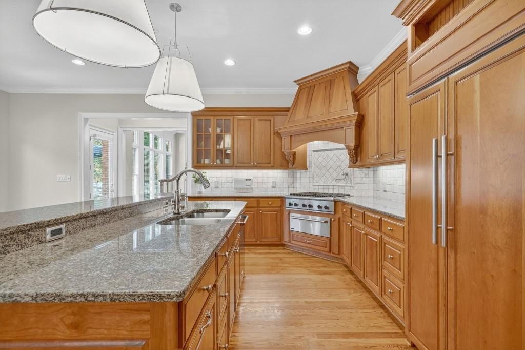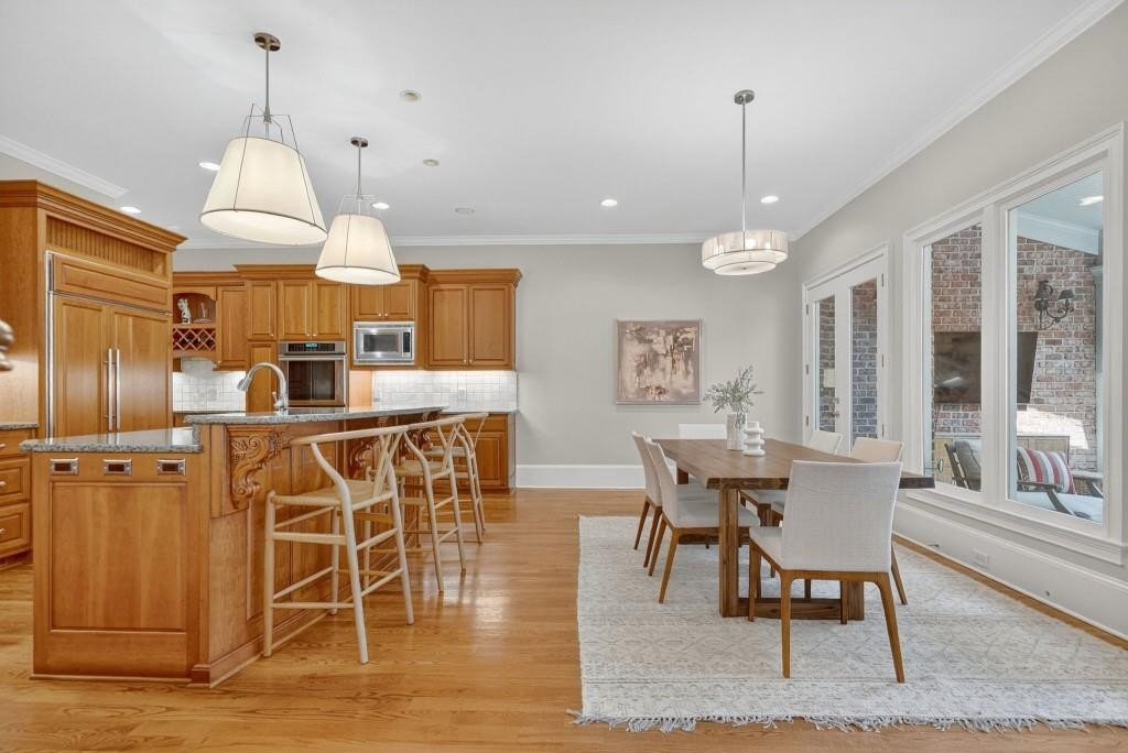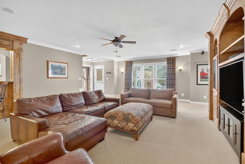 Experience resort-style living in this elegant estate on a private cul-de-sac in the highly sought-after community Winfield on the River, a one-of-a-kind gated neighborhood nestled on the serene banks of the Chattahoochee River. With its timeless brick architecture and natural landscaping, this home is a special retreat with luxurious amenities and exceptional indoor-outdoor living on +/- 0.70 acres. Step inside to a grand two-story foyer flanked by a formal dining room and a flexible office/library/den space-perfect for both elegant entertaining and everyday living. The expansive ceilings and wall of windows in the family room flood the space with natural light, while the open-concept layout flows seamlessly into the gourmet kitchen, complete with high-end appliances, abundant cabinetry, and an entertainer's island. Just off the kitchen, a spacious screened porch and deck overlook your private and spacious backyard oasis. Outside, your own backyard paradise awaits, featuring a stunning saltwater pool with a waterfall, framed by lush, manicured landscaping for maximum privacy and relaxation. The main level owner's suite is a peaceful retreat with a spa-like ensuite and serene views. Upstairs are three spacious bedrooms, three bathrooms, and a versatile bonus room-ideal for a playroom, teen suite, or additional living space. A large unfinished space with a private entry also has the potential to be an additional private suite for guests or multigenerational living. The daylight terrace level is a versatile space for everyday entertainment or hosting guests, offering a full pool bath, tiled playroom with closet, expansive rec room, gym, private office or 5th bedroom with full bath, fireside family room with wet bar, workshop, and extensive storage. Off the terrace level is an additional large covered patio space. Bordering a beautiful river across from a national park with recreation space and hiking trails, the neighborhood feels private and secluded, yet boasts proximity to premier shopping and dining at The Forum and top-rated public and private schools, including Johns Creek High School, Autrey Mill Middle School, Medlock Bridge Elementary School, Perimeter Christian School, and the Wesleyan School. The Atlanta Athletic Club is just minutes away. This home truly combines classic elegance with modern luxury in one of Johns Creek's most desirable gated communities.