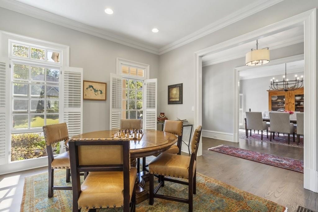 This exceptional Monte Hewett home is perfectly situated on a quiet cul-de-sac in the heart of North Buckhead, and offers a rare combination of architectural sophistication, timeless craftsmanship, and modern livability. Surrounded by beautifully landscaped grounds, this four-level residence is designed for both elegant entertaining and comfortable everyday living. A gracious front porch with gas lanterns welcomes guests into a light-filled interior with 10-foot ceilings on both the main and terrace levels. The stunning gourmet kitchen features walls of windows, quartz countertops, a large center island, new premium appliances, and a breakfast area with custom built-in banquette that opens to an outdoor dining area and kitchen, creating seamless indoor-outdoor flow. The kitchen flows into the keeping room with fireplace, the perfect spot for relaxed gatherings. The spacious family room showcases coffered ceilings, a fireplace, and custom built-ins, while the screened porch overlooks the manicured backyard and a peaceful nature preserve in the distance. A butler's pantry with ice maker connects to the formal dining room, easily accommodating twelve guests. A front living room offers flexible use as a music, game, or Mah Jongg room. Completing the main level are a mudroom with abundant storage and two stylish powder baths. Upstairs, the luxurious primary suite features a fireplace, private sitting room, and a spa-like bath with double vanities, soaking tub, separate shower, and an expansive walk-in closet. Three spacious secondary bedrooms, two full baths, and a landing area with a built-in reading nook complete this level. The fourth floor offers exceptional flexibility-ideal as a media room, home office, craft room, or play space. The terrace level is a true extension of the home, featuring a daylight media/family room with custom cabinetry, temperature-controlled wine cellar, game room, exercise room (optional 6th bedroom), guest suite, 1.5 baths, office, and French doors leading to a private backyard patioIdeally located within walking distance to Sarah Smith Elementary, and moments from PATH400, Chastain Park, and Buckhead's finest shopping, dining, and entertainment, this exquisite home offers an unparalleled lifestyle in one of Atlanta's most coveted neighborhoods.