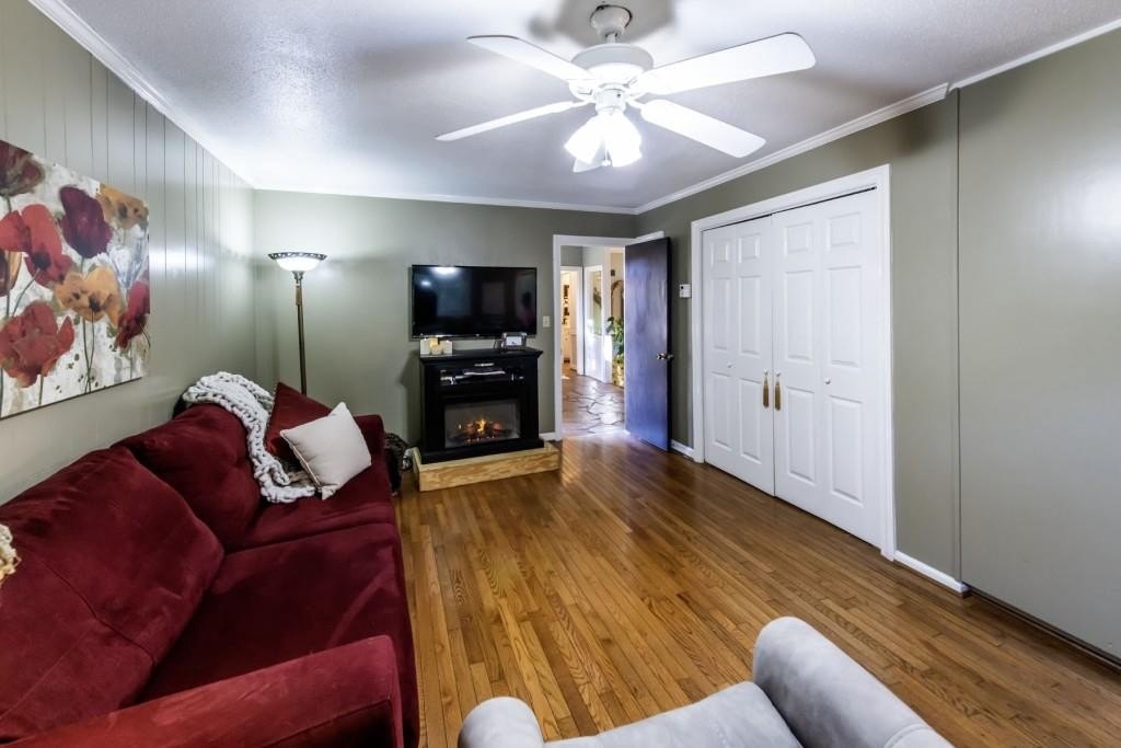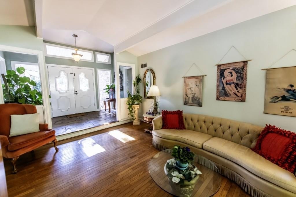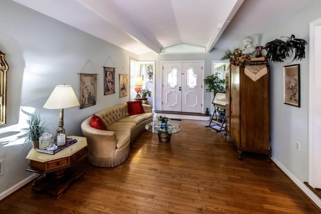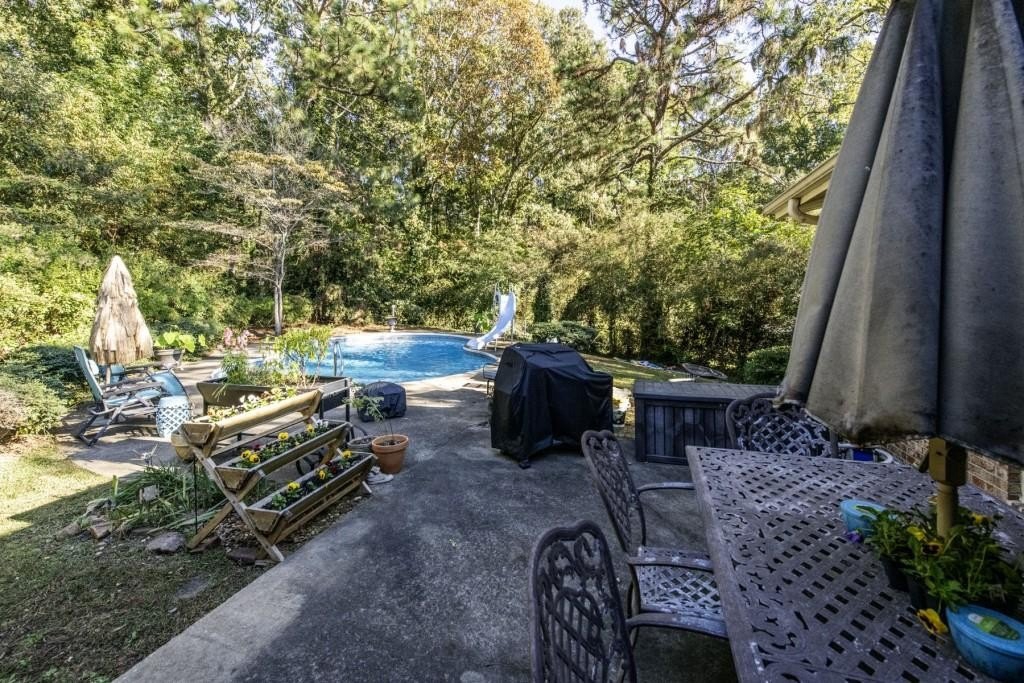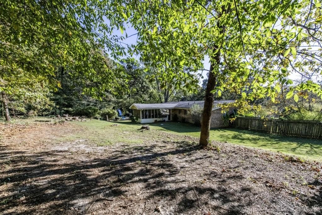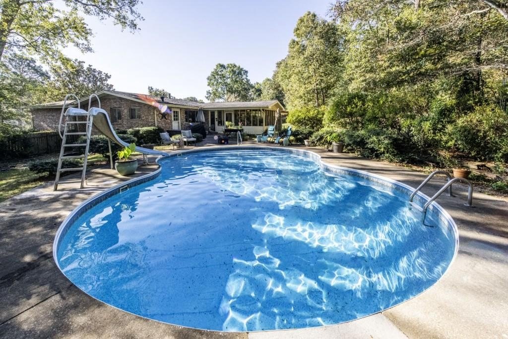 Sought-after 4-sided brick ranch. This lovely 3Bdrm, 2Ba home features hardwood floors throughout, carpet in bedrooms, tile baths. Double entry front doors open to vaulted ceiling and vaulted step-down living area, stone floor foyer w/planter, tons of light! Eat-in kitchen has stainless stove top, vent hood, dishwasher, wall oven and refrigerator, deep stainless double sink, solid surface counters, hardwoods into sep. dining room, den and living room. Double doors off LR open to screened back porch overlooking spacious and private fenced back yard, entertainment area and salt water in-ground pool with concrete steps & 2yr. old liner. 30-yr architectural shingle roof approx. 13 yrs., HVAC, condenser unit and gas water heater approx. 6 yrs. Vaulted attached 2-c garage, NO HOA!