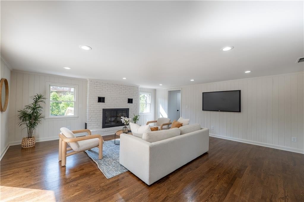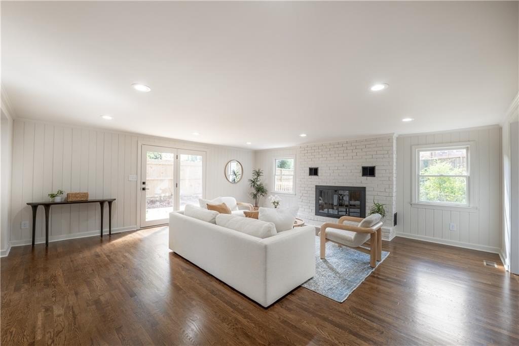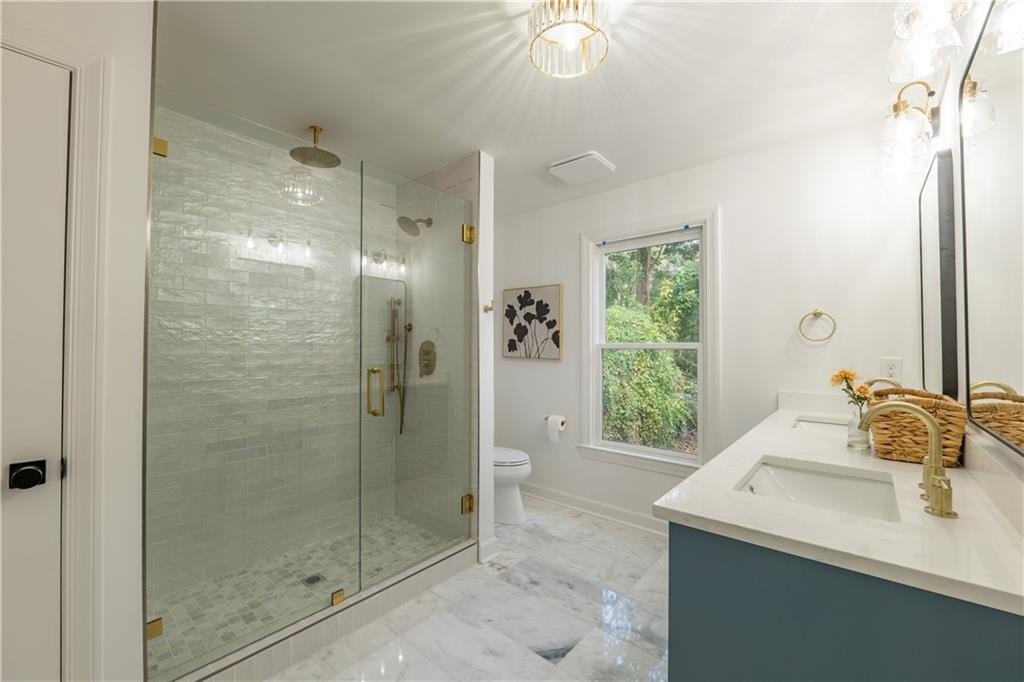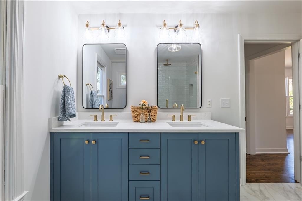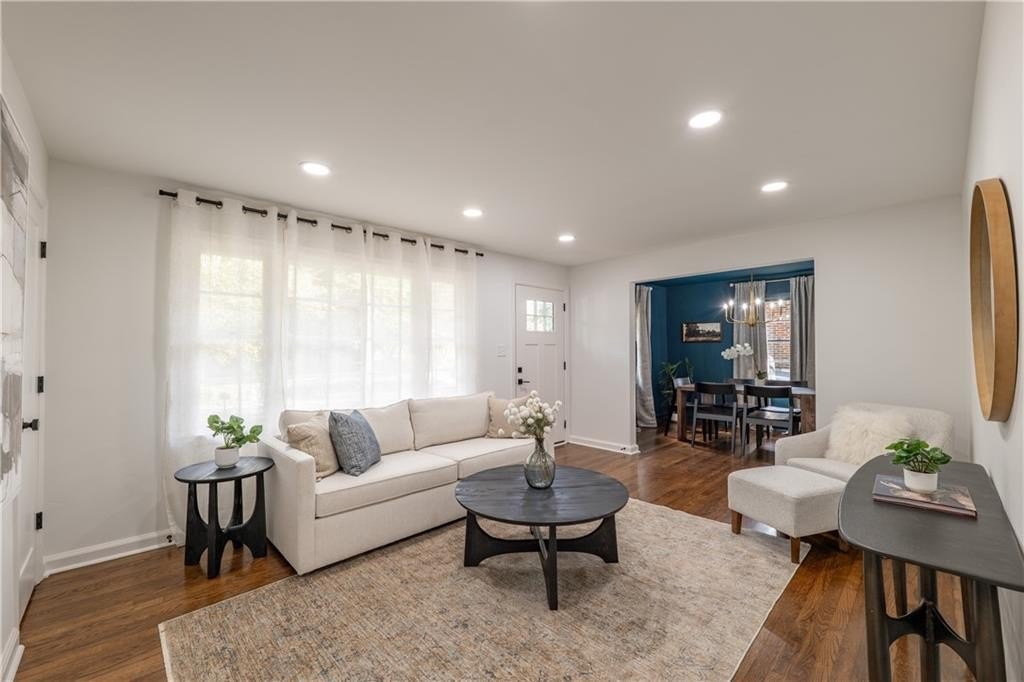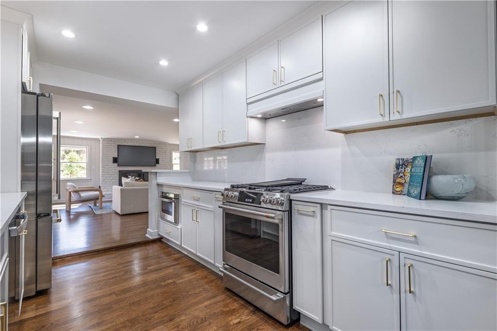 Another fabulous full renovation from Carter Signature Homes featuring 4 Bedrooms, 2.5 Bathrooms (over 2300 SF) over 1 level of  living.   This home is in Decatur’s beloved Medlock Park blends classic charm with modern luxury and thoughtful flexibility. Multiple living spaces include light-filled living room, a separate family room that opens to kitchen, and bonus flex room ideal for a home office, creative studio, or cozy retreat. Dining room connects seamlessly to bright, updated kitchen with white shaker cabinets, quartz countertops, stainless steel appliances, and designer lighting—perfect for hosting or everyday meals. Spacious primary suite offers a true retreat with a walk-in closet and a spa-like bathroom featuring a double vanity, shower with dual showerheads, and elegant marble and ceramic tile. Three additional bedrooms are generously sized and share a beautifully renovated guest bathroom with charming details. Stylish powder room and a large laundry room with utility sink add comfort and convenience. Step outside to a large, brand-new deck overlooking a private, fenced backyard with mature trees and a flat lawn ideal for relaxing or entertaining. Smart layout, private primary wing, refinished hardwood floors and attic storage make this home as practical as it is beautiful. Just moments from Medlock Park and pool, nature preserves, and trails, and a short drive to Decatur Square, Emory, and the future Lula Hills development, this home offers suburban tranquility with urban access, all within the Fernbank Elementary and Druid Hills school cluster.