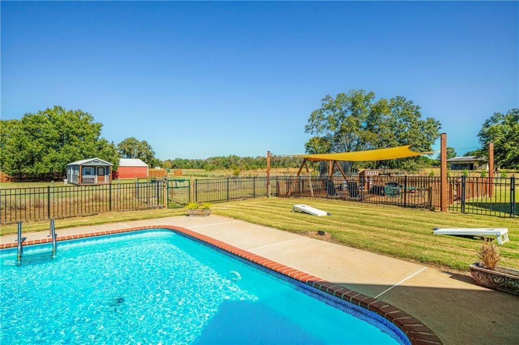 **Discover Your Mini-Farm Dream!Incredible Sunsets**Welcome to this beautifully fully fenced 5.85-acre property, perfectly designed for a mini-farm lifestyle. With separate interior fencing, this expansive land offers up to 6 distinct pastures, providing ideal spaces for both pets and livestock. Enjoy the added benefit of privacy fencing in the backyard, as well as dedicated fencing for the playground and saltwater pool area—perfect for family fun and relaxation! As you step inside, you'll find a warm and inviting interior featuring ,Hardwood Floors, Bead Board Walls, Wood Beams, Upgraded Lighting, 4 spacious bedrooms and 3 full baths with additional flex room for office/nursery .The Bathrooms have all had New Lighting, Upgraded Mirrors& Tiled Bathrooms, The updated kitchen is a chef's delight, complete with modern Stainless appliances and ample storage. Gather around the cozy breakfast nook or relax in the den, adorned with charming wood beam accents. With porches off the front and back of the house, you'll have the perfect spots to unwind and enjoy the tranquil surroundings :Salt Water Pool W/ Covered Patio to enjoy with separate Playground.This property also boasts several additional structures, including: _** Multiple Pole Barns - **A 5-Stall Barn with Tack Room:** Situated on a sturdy concrete slab, this barn is perfect for your equine friends or livestock. - **A 12x40 Detached Building with HVAC:** This versatile space is ideal for a home office, art studio, or guest accommodations—whatever suits your needs! **A Custom Solar-Powered Chicken Coop,Located just minutes from the charming downtown area of Mansfield, you'll have access to a delightful local coffee shop, grocery store, and a variety of restaurants. Experience the perfect blend of rural tranquility and small-town charm—all just a stone's throw from modern conveniences.
