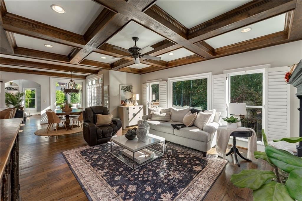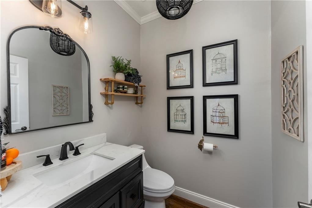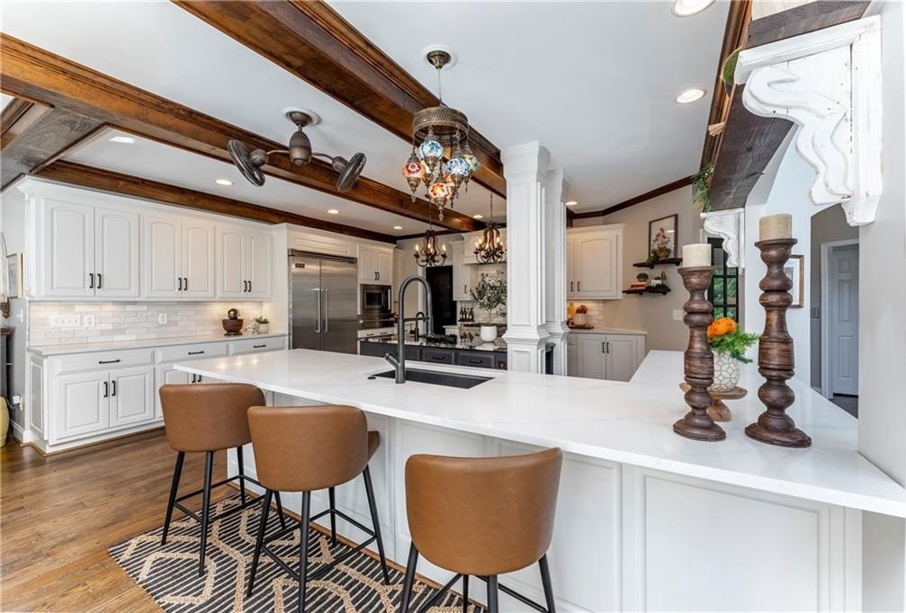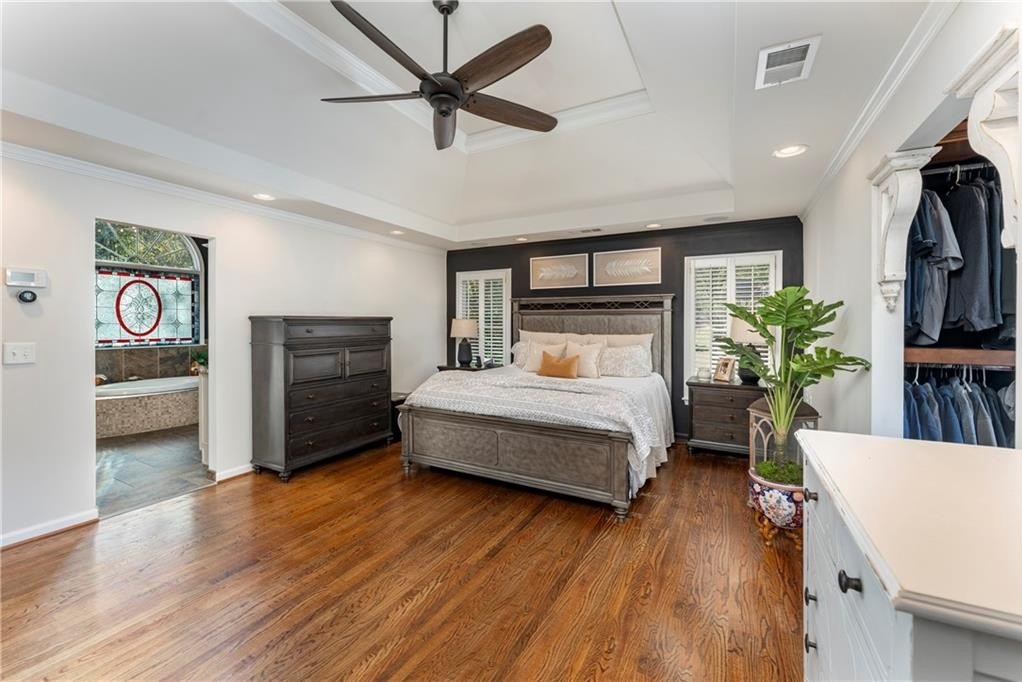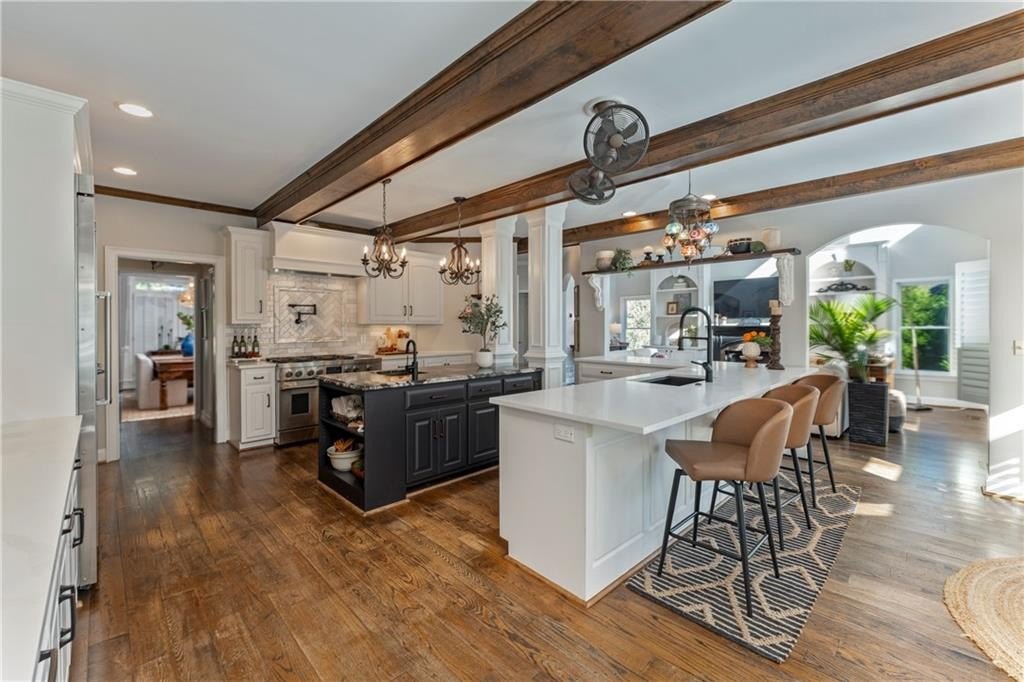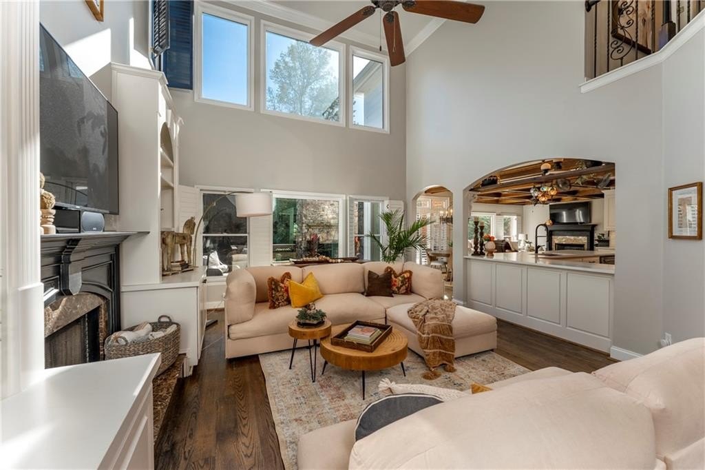 Welcome to this stunning and elegant four-sided brick home in the highly desirable Bradshaw Farm community. The semi-circular driveway, beautifully manicured yard, and three-car garage make a grand first impression, while the home’s timeless architecture and thoughtful design invite you to come in and stay awhile. Inside, a two-story foyer opens to a great room with soaring ceilings and one of the home’s two fireplaces. A formal dining room sets the stage for gatherings and celebrations, while the eat-in kitchen with large keeping room and second fireplace is a dream for any chef—featuring Viking appliances including a six-burner cooktop with griddle, pot filler, warming drawer, ice maker, large farmhouse sink and additional prep sink, plus a walk-in pantry for abundant storage. There is plenty of counter space for any aspiring chef or baker. Don't miss the formal living room where you can sit and watch the golfers out the arched window.