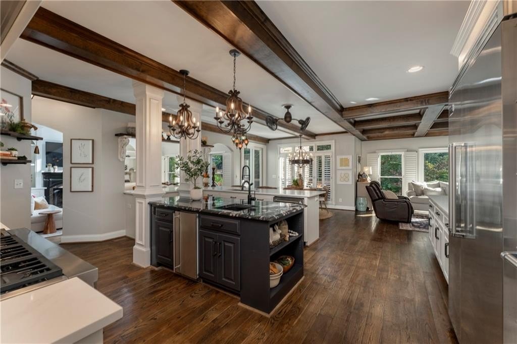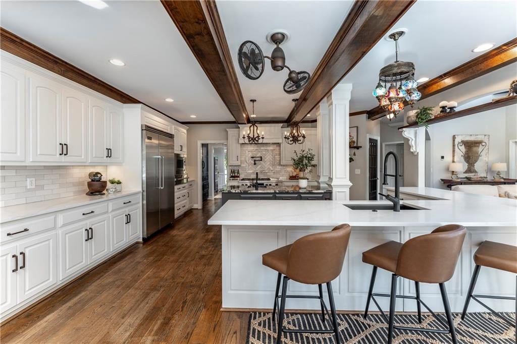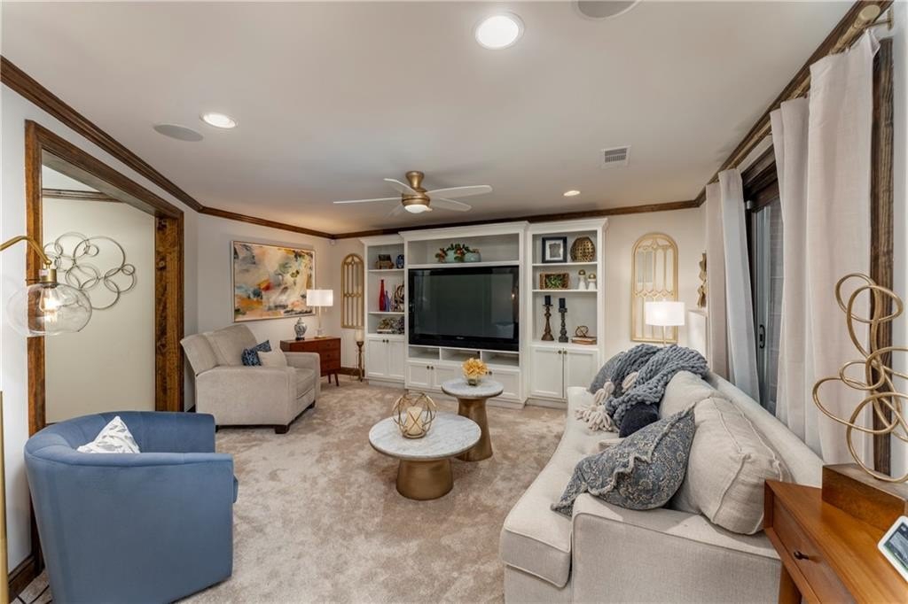 The fully finished terrace level offers incredible versatility with a full second kitchen, perfect for hosting guests or creating a private retreat for multi-generation living. Designed with both comfort and functionality in mind, it includes a large living area, dining area, full bathroom, and a spacious bedroom. A second, smaller bedroom has been transformed into a beautiful dressing room, and there’s even room for an additional seating area off the kitchen. There is ample space for a full-size pool table if you prefer recreation over formal dining.