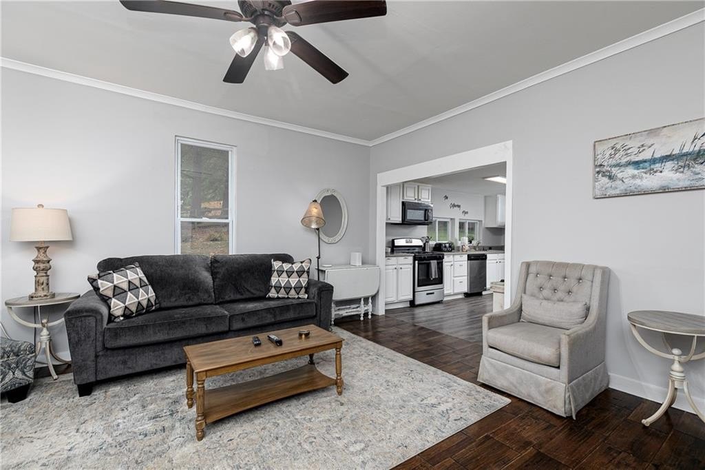 Charming farmhouse on a 1-acre lot in Historic Downtown Acworth. Just a short walk (or golf cart ride) to restaurants and Lake Acworth. This 5 bedroom, 2 bath home has updates throughout. Newer hardwood and vinyl plank flooring, newer windows, updated bathroom fixtures and newer stainless steel kitchen appliances. Enjoy the rocking chair front porch as well as 2 additional porches for you to enjoy the outdoors. The 1-acre lot offers plenty of room for all your toys, a garden or to just enjoy the privacy. Country/lake feel with the convenience of the city. NO SIGN,