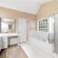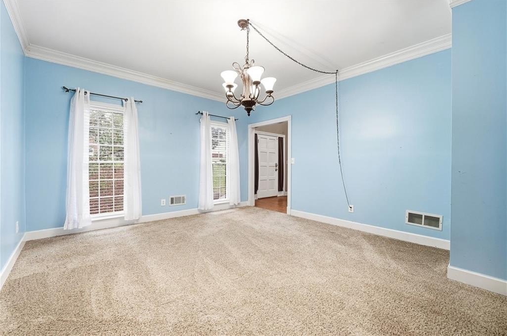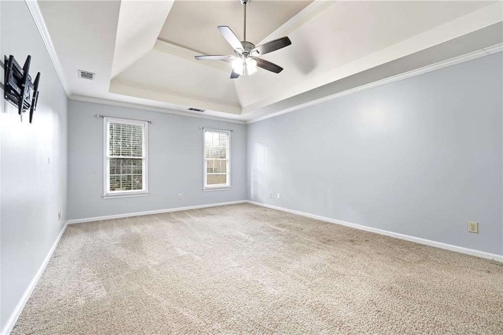 The upper level hosts a luxurious master bedroom complete with a relaxing sitting area and his-and-hers walk-in closets. The spacious master bathroom is designed for comfort with a soothing whirlpool tub, separate shower, and dual vanities. Three additional bedrooms and a full bathroom round out the second floor, providing plenty of space for family or guests.