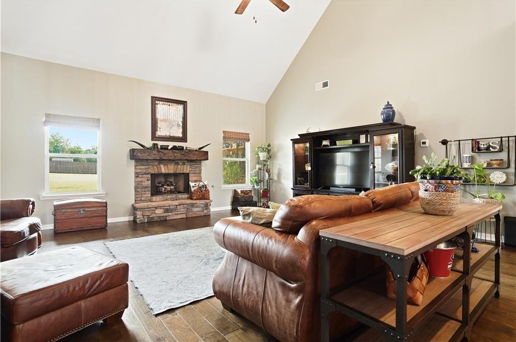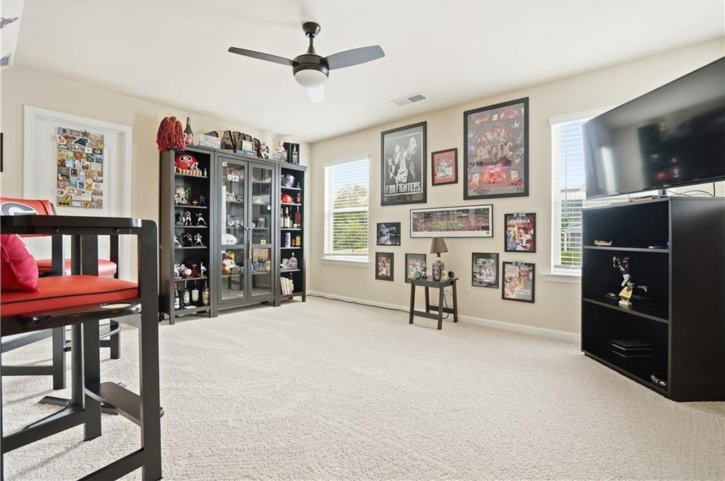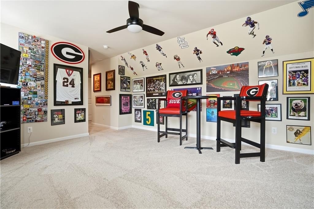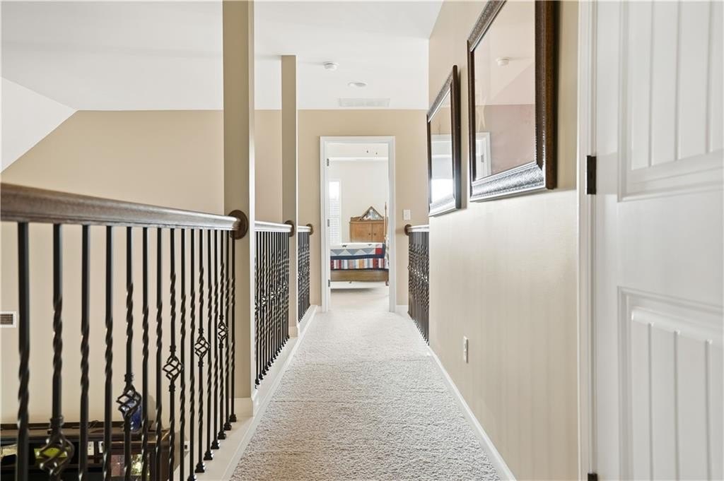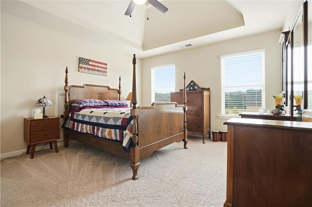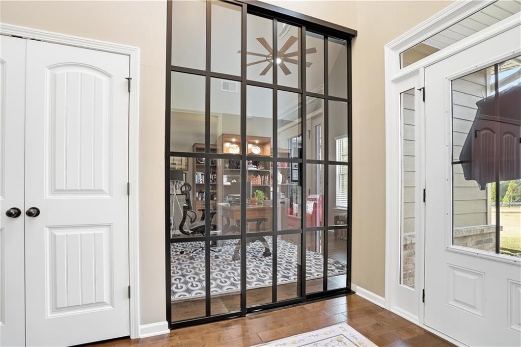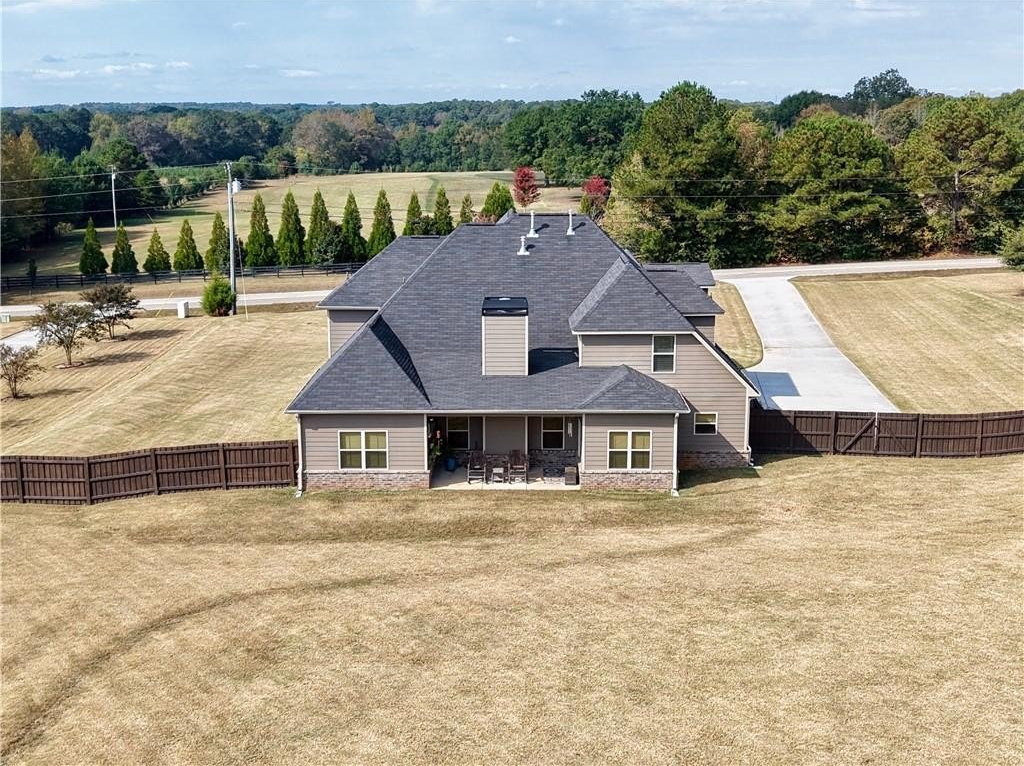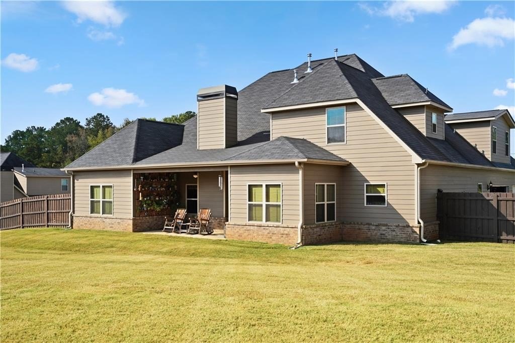 Introducing this better than new resale with an amazing opportunity to ASSUME A VA LOAN at a 2.875% INTEREST RATE for the qualifying buyer. Over $50,000 in upgrades set this home above the new construction options for this area. You will not want to miss your opportunity to see this home and explore all of its amenities. Located approximately 30 miles from the Atlanta airport and within the Union Grove High School district, this home offers convenience, privacy and comfort on a large homesite of just over 1-acre. The home sets on a level, fully sodded lot with a backyard surrounded by wooden privacy fencing, this offers privacy and massive space for enjoying the outdoors. Outdoor lighting and beautiful flower beds greet you as you enter the home. A 2-story foyer welcomes you inside with a dream office, with built in bookshelves, just to the right. You enter the office through sleek, modern sliding glass and black steel doors. The main living room with vaulted ceiling and cozy gas log fireplace offers the best socializing atmosphere with an open view to the kitchen, breakfast area, and elegant coffered ceiling dining area. The kitchen is expansive. The grand island offers generous space for preparation of your main course and later displaying hors d’oeuvres as you entertain your guests. If the sophisticated crown-crafted 42” stained cabinetry is not enough to store your kitchenware, never fear, there is also a massive pantry with built in California Closet shelving, added to accommodate your needs. The kitchen also offers updated stainless-steel appliances, granite counters, tile backsplash and stainless steel undermount deep sink. Also on the main level is the large primary suite with beautiful double tray ceilings in the main room as well as the owner’s lounge. The primary bath offers a deep jetted tub with ceramic tile surround, ceramic tiled separate shower with glass door, and a double vanity with granite countertops over raised cabinets. The owner’s walk-in closet includes a custom designed wardrobe for the utmost in organization with an abundance of shelving, drawers and hanging areas. Following the hardwood flooring up the wooden stairway with wrought iron balusters to the 2nd level you will find 4 generously sized additional bedrooms, all with large closet space and attic access points, and 3 full bathrooms for family or guests. There is a 3-car garage, a mudroom with bench seating and shoe storage cabinets in both areas. The laundry room is located just off the mudroom. Additional upgrades include: a whole home Generac 26 kw generator to keep the house operational during power outages; 10% tint on all windows on the front elevations (west facing) of the home to control light and heat exposure; flooring, bedroom lighting and kitchen plumbing upgrades round out the list of the well thought out improvements within this beautiful home that add both sophistication and practicality.