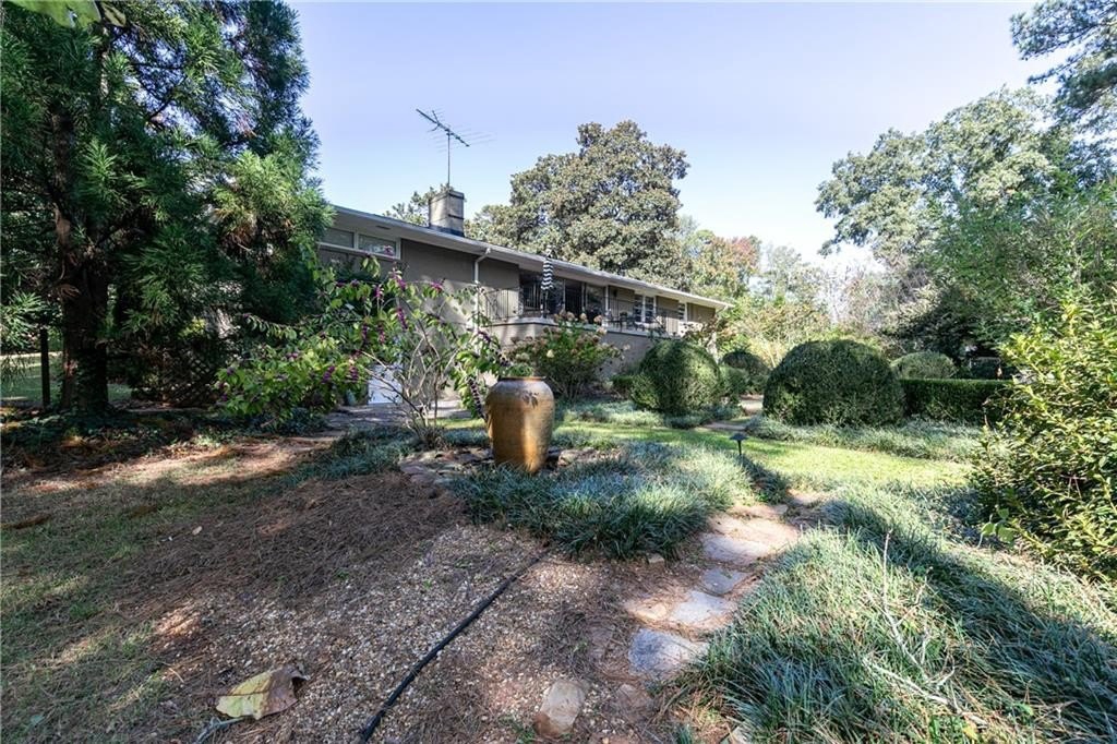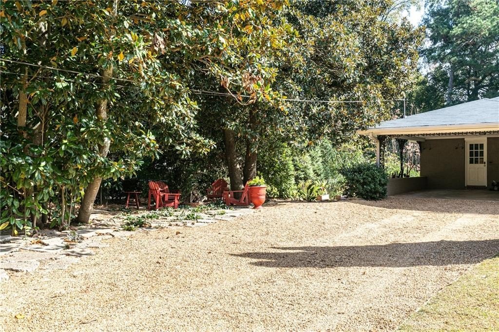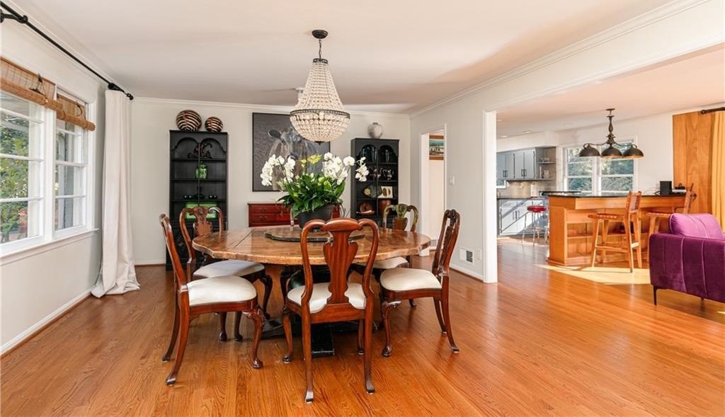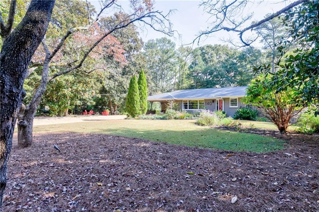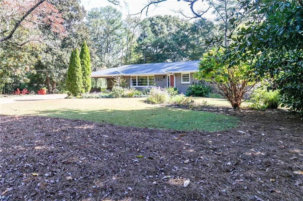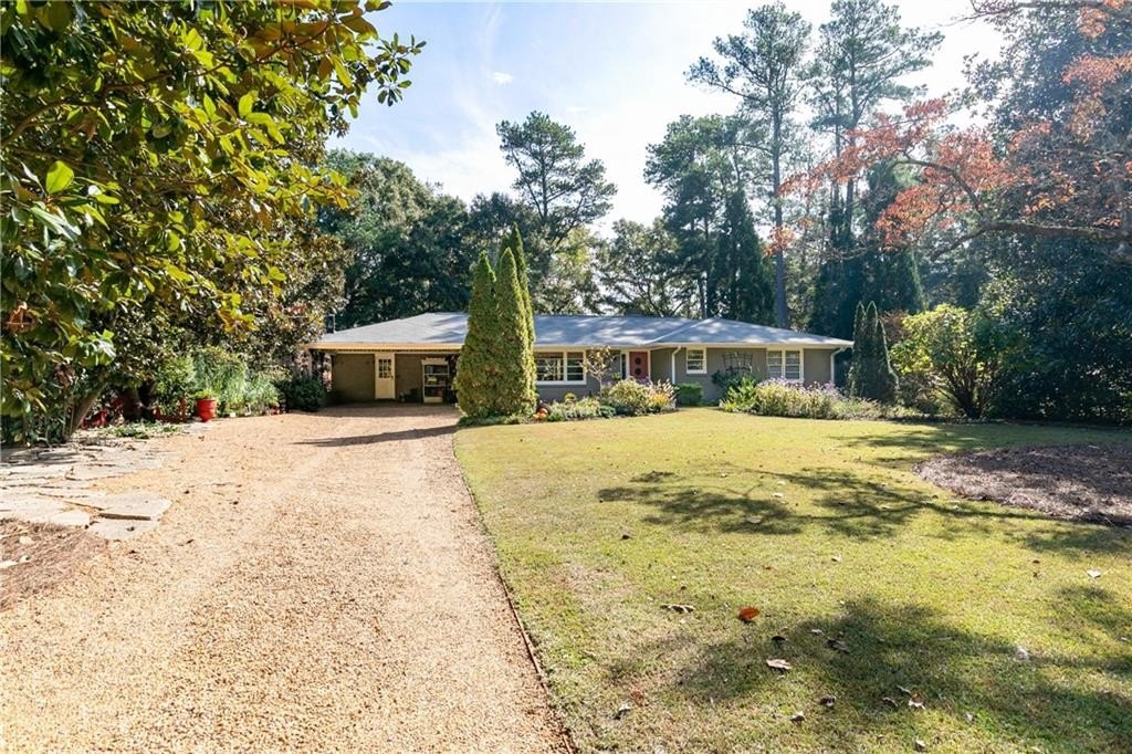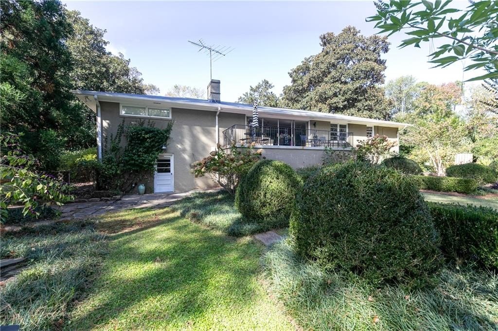 Discover the perfect blend of charm, comfort, and convenience in this beautifully maintained brick ranch, ideally positioned in the heart of Historic Roswell. Nestled among mature trees and lush landscaping, this home offers the rare opportunity to live within walking distance of the best that Roswell has to offer. Step inside to find a bright, open layout where natural light pours through large picture windows. The spacious dining room, kitchen, and family room flow seamlessly together, creating a relaxed, connected atmosphere perfect for everyday living and entertaining. The family room’s cozy brick fireplace and mantle pair perfectly with the home’s subtle mid-century touches, while hardwood floors run throughout much of the main level, adding timeless warmth. The eat-in kitchen features stone countertops, a gas range, and a charming view of the sitting area. Sliding glass doors open to a masonry balcony—ideal for morning coffee or evening gatherings overlooking the private backyard. The primary suite includes an ensuite bath with stone floors, a jacuzzi tub, and a shower combo.