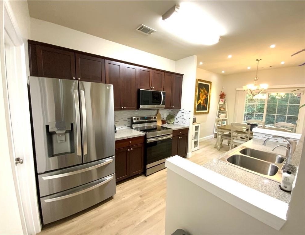 Welcome to a beautifully maintained townhome in a convenient Lawrenceville location. Fresh paint and laminate floors create a bright, inviting space with an easy, open layout. The kitchen features stainless steel appliances and a breakfast bar that opens to the living area, perfect for everyday living or entertaining. Upstairs you’ll find a primary suite with a walk-in closet, sitting area, and a private bath, plus a flexible loft and two additional bedrooms. With a two car garage and close proximity to shopping, dining, schools, and major highways, this move in ready home offers comfort, style, and an ideal location all in one!