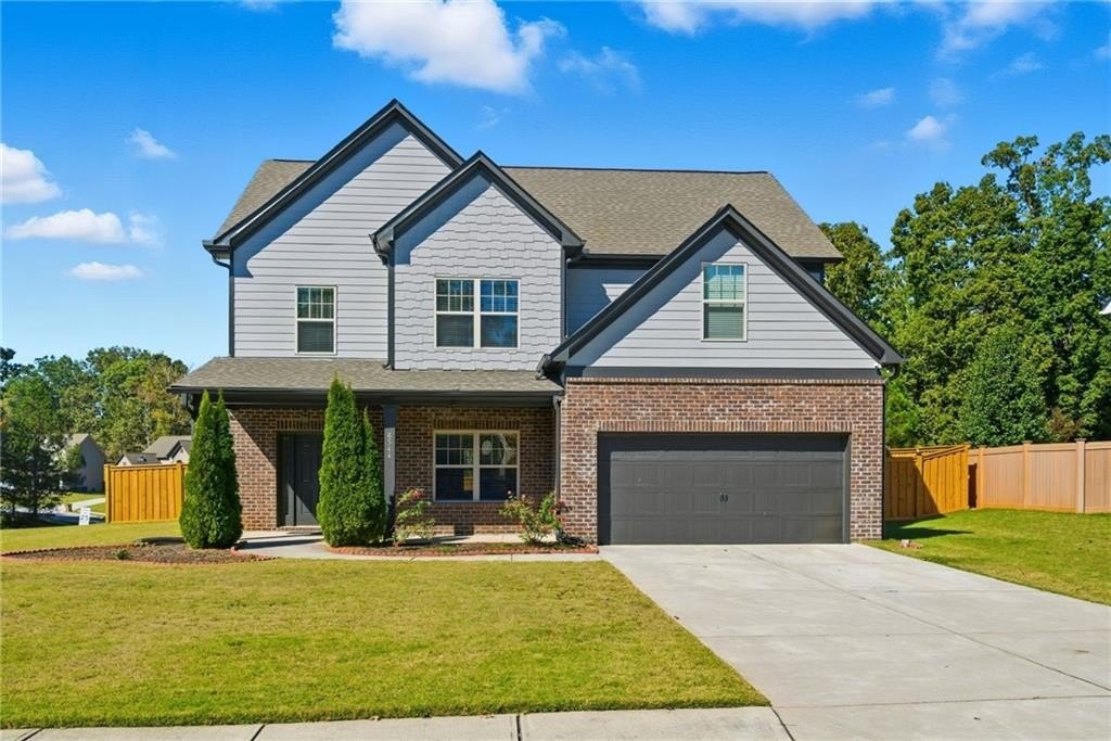 Welcome Home to a Beautiful 2-story home on a level corner lot in a sought-after Swim/Tennis Community within walking distance to Lake Lanier! Enjoy the best of lakeside living with neighborhood amenities and nearby recreation. This 4BD/3BA home features a covered and screened rear porch with outdoor fireplace overlooking a private fenced backyard—perfect for relaxing or entertaining. Open-concept main level includes a Great Room open to the kitchen with large island, bar seating, granite countertops, tile backsplash, and a bright breakfast room. Formal dining room with extended hardwood floors. Bedroom or study on main with full bath. Upstairs boasts an oversized owner’s suite with HUGE walk-in closet and unfinished bonus space for storage or future expansion. Luxury owner’s bath with separate shower, garden tub, and tile finishes. Secondary bedroom with sitting area and convenient upstairs laundry.