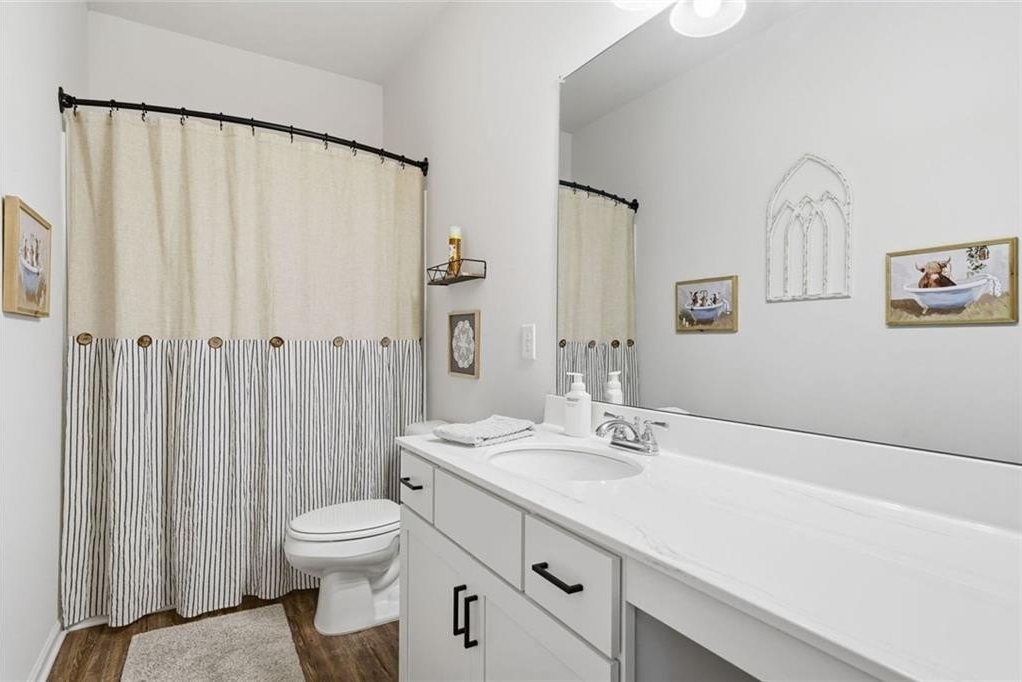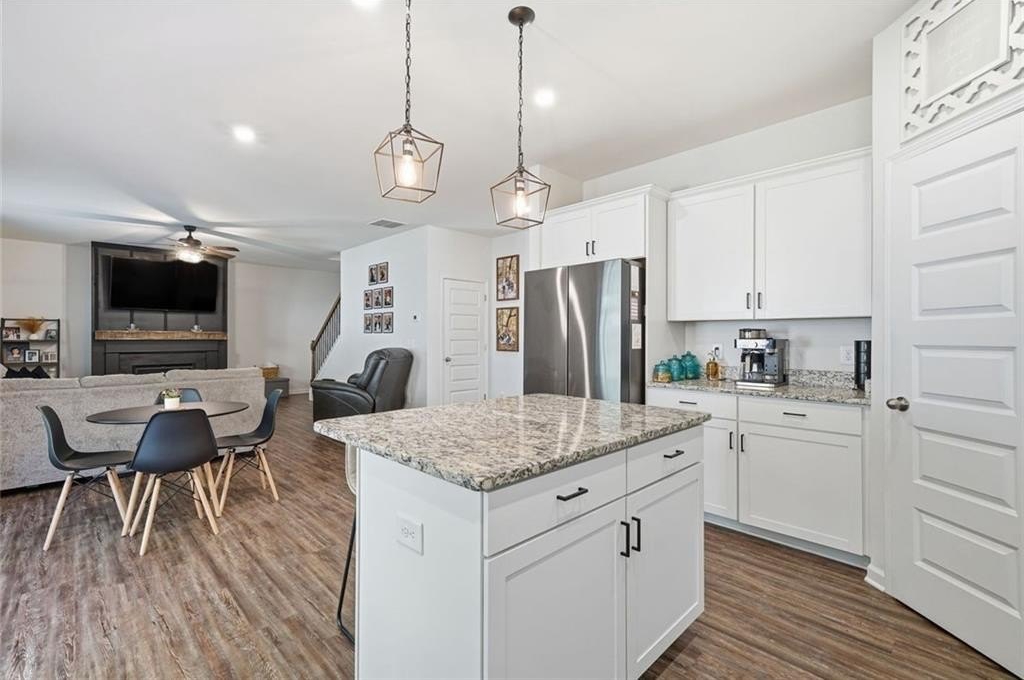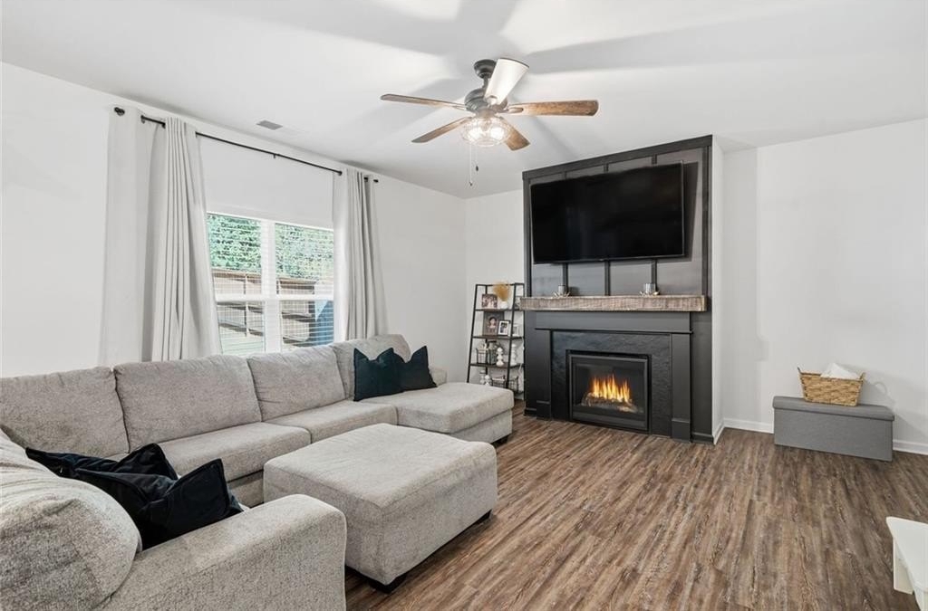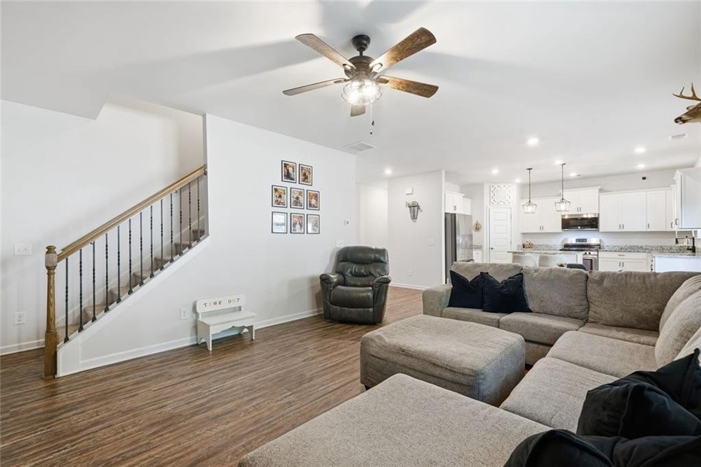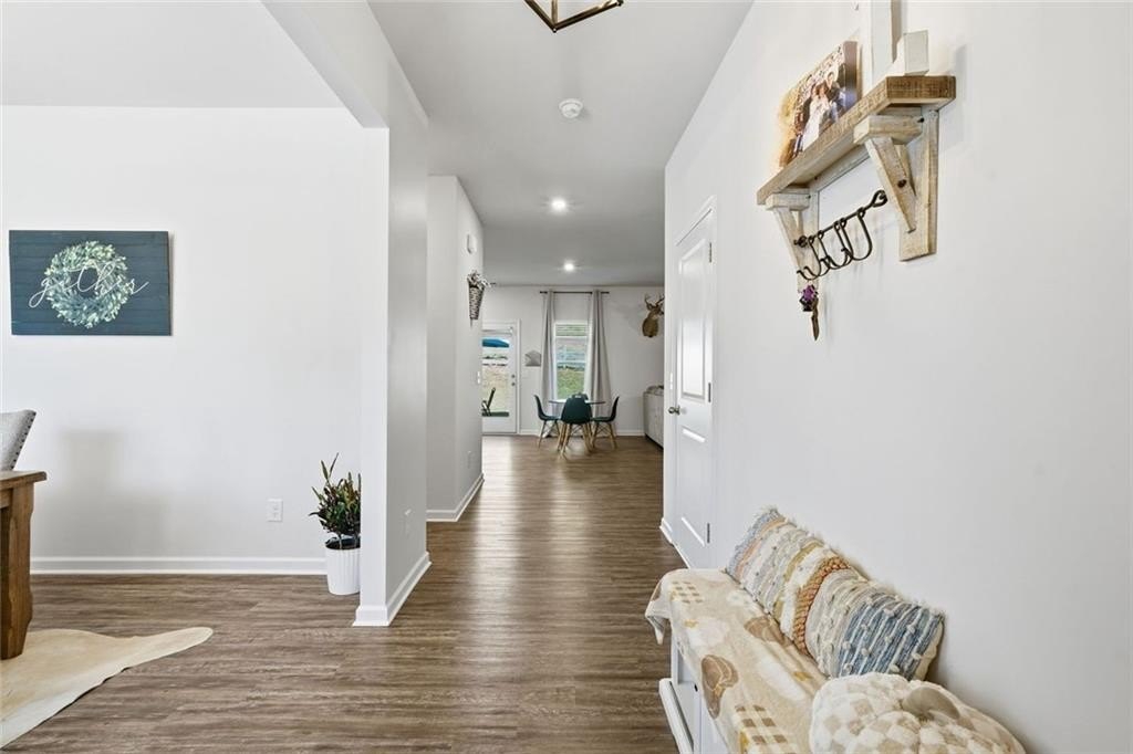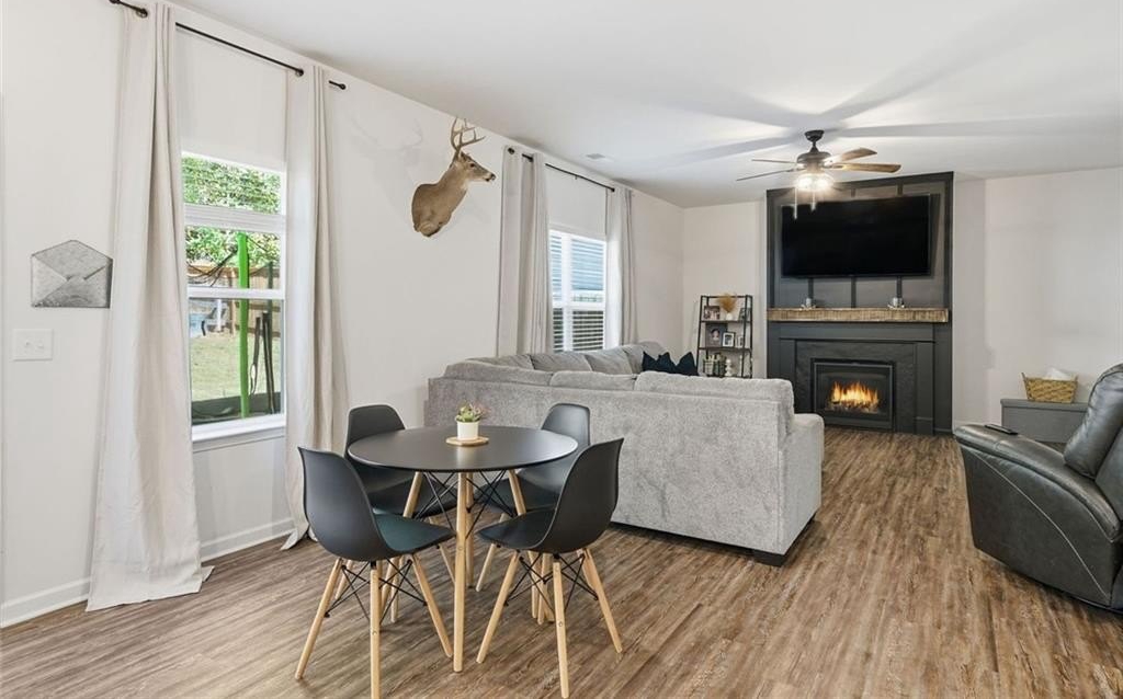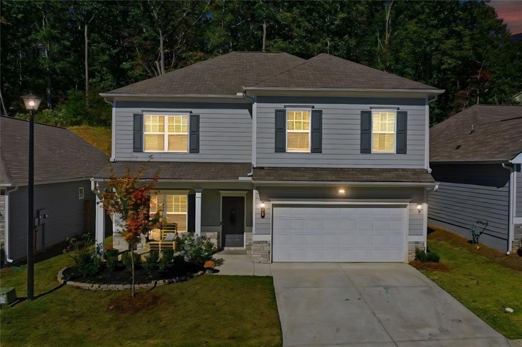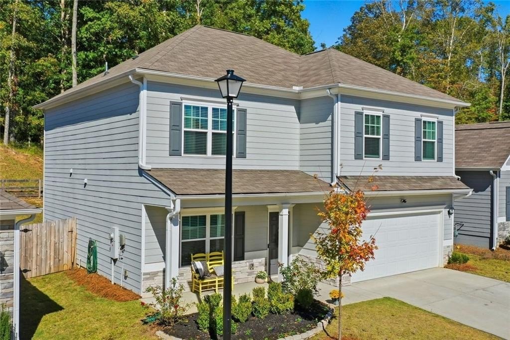 Spacious 4-bedroom, 2.5-bath, tucked away on a premium cul-de-sac lot of Worley Preserve. The front porch welcomes you into an open foyer and dining room. There's a convenient powder room for guests, and the open kitchen flows into an informal dining area that connects to the family room featuring a modern black fireplace with gas logs. A pristine white kitchen with granite countertops, new dishwasher, new microwave, corner pantry, and upgraded lighting above the island with bar seating. Upstairs, the layout separates everyday life, with all bedrooms anchored around a flex space, ideal for a play area. The primary suite features an oversized closet, dual vanity, seamless glass shower, and a separate water closet. The three additional bedrooms have been enhanced with a wood batten and board accent wall, lending each room its own unique design and character. Each secondary bedroom features a walk-in closet. The secondary bathroom includes a vanity with a seating area for added convenience. For practicality, the laundry room is located upstairs. The fully fenced backyard is private and features an open-air patio, with plenty of yard space for playtime. Based on the development's land in this interior cul-de-sac, there are a limited number of homes, which creates additional parking and play areas when entertaining guests. HOA dues cover lawn maintenance, and homeowners are welcome to plant their own flowers. Seller upgraded many standard features while under construction, in addition to the entire home having professional blind installation. Located near the county line, this location is perfect for those seeking the conveniences of Ball Ground, Canton, or Jasper.