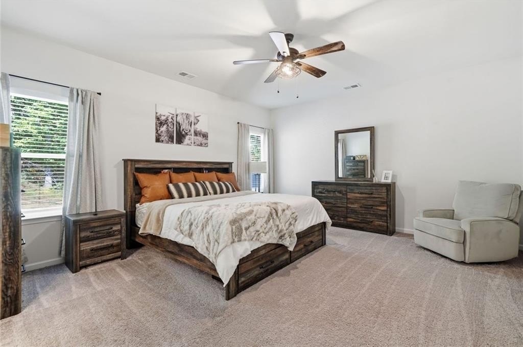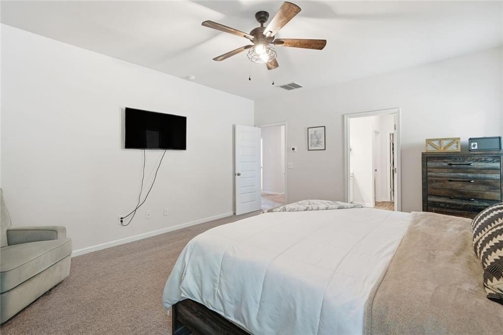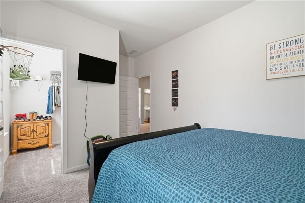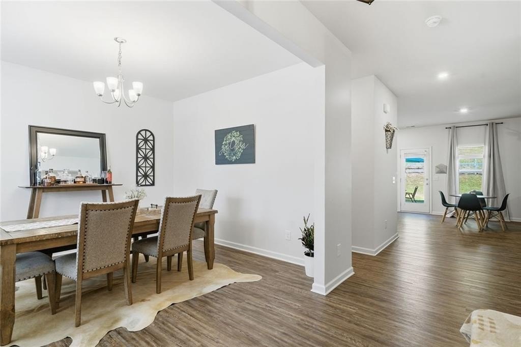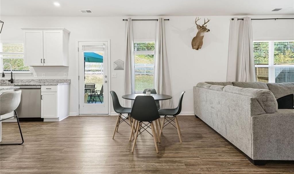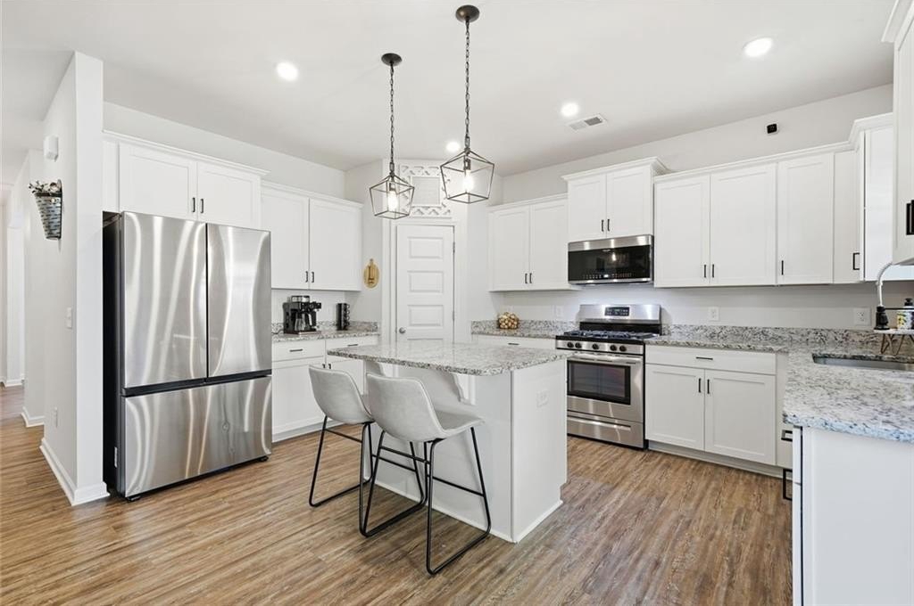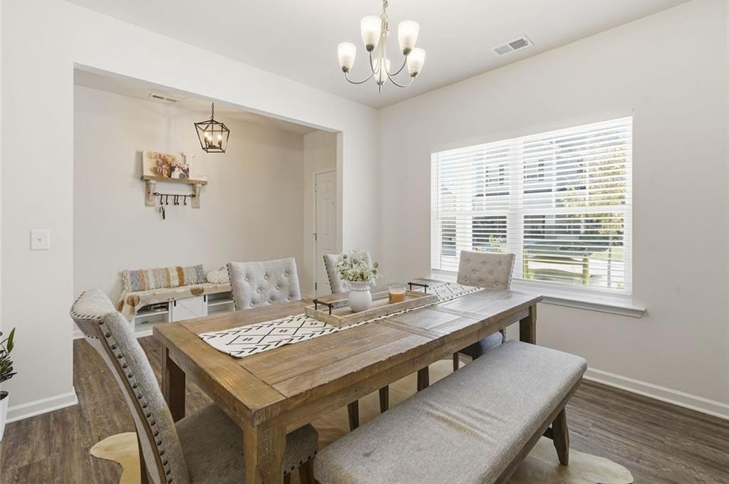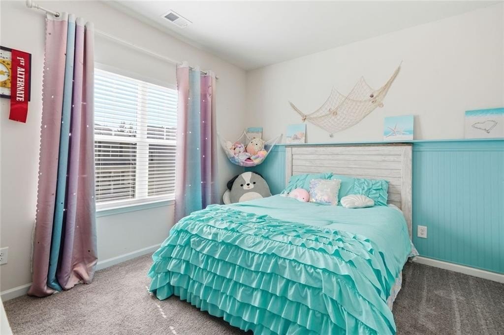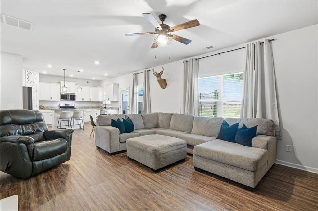 Spacious 4-bedroom, 2.5-bath, tucked away on a premium cul-de-sac lot of Worley Preserve. The front porch welcomes you into an open foyer and dining room. There's a convenient powder room for guests, and the open kitchen flows into an informal dining area that connects to the family room featuring a modern black fireplace with gas logs. A pristine white kitchen with granite countertops, new dishwasher, new microwave, corner pantry, and upgraded lighting above the island with bar seating. Upstairs, the layout separates everyday life, with all bedrooms anchored around a flex space, ideal for a play area. The primary suite features an oversized closet, dual vanity, seamless glass shower, and a separate water closet. The three additional bedrooms have been enhanced with a wood batten and board accent wall, lending each room its own unique design and character. Each secondary bedroom features a walk-in closet. The secondary bathroom includes a vanity with a seating area for added convenience. For practicality, the laundry room is located upstairs. The fully fenced backyard is private and features an open-air patio, with plenty of yard space for playtime. Based on the development's land in this interior cul-de-sac, there are a limited number of homes, which creates additional parking and play areas when entertaining guests. HOA dues cover lawn maintenance, and homeowners are welcome to plant their own flowers. Seller upgraded many standard features while under construction, in addition to the entire home having professional blind installation. Located near the county line, this location is perfect for those seeking the conveniences of Ball Ground, Canton, or Jasper.