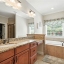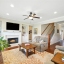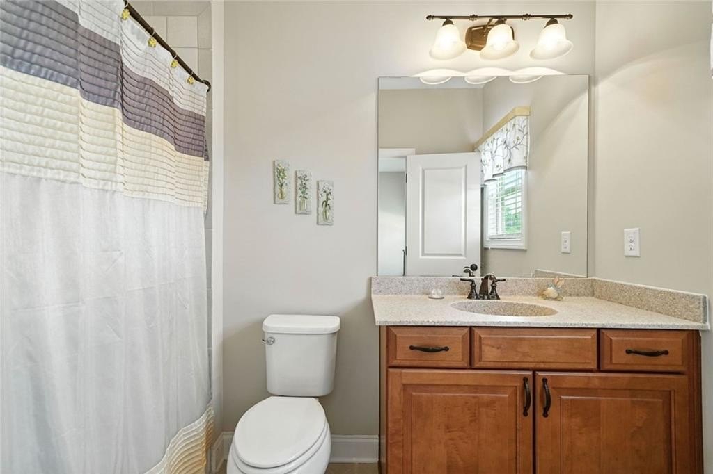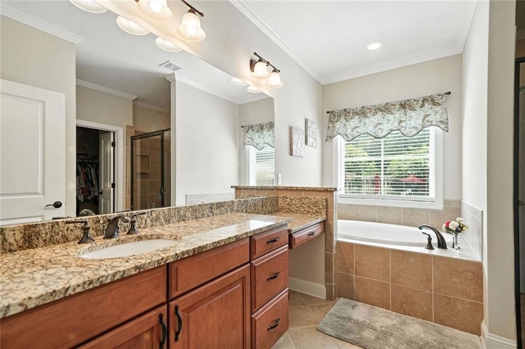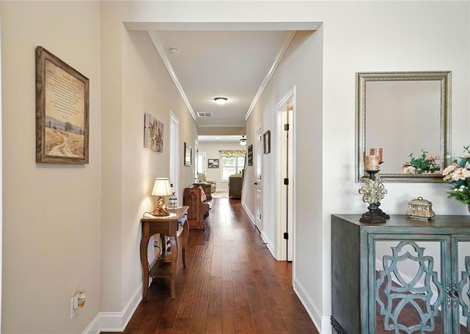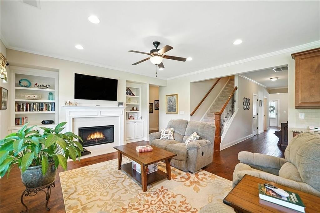 Step into effortless living with this move-in ready ranch featuring a main-level primary suite, an additional main-level bedroom, and an open-concept layout perfect for entertaining. Sunlight fills the living room, highlighting the gas fireplace and custom built-ins, while rich hardwood floors flow seamlessly into the kitchen and dining area. The kitchen is designed for both form and function, featuring granite countertops, wood cabinetry, stainless steel appliances, and a generous island with seating for four, a large walk-in pantry and adjacent space for small office/desk or additional storage. A light-filled breakfast nook offers backyard views and easy access to the covered patio, perfect for morning coffee or evening wind-downs. The spacious primary suite is privately tucked away on the main floor and includes an oversized walk-in closet and a bath with granite-topped vanities, a soaking tub, and an oversized, zero entry, tiled shower with bench seating. Also on the main level is a secondary bedroom with a full en suite bath, along with a separate family room ideal for quiet relaxation or entertaining. Upstairs, guests enjoy their own private retreat with a large bedroom, full bathroom, and a bonus flex room for study or storage that keeps clutter out of sight. Outside, enjoy a low-maintenance backyard with peaceful tree-lined views, all from the comfort of your covered patio. This gated 55 plus community includes a clubhouse, fitness center, outdoor salt-water pool, demonstration/catering kitchen, and more, designed for easy living with everything you need close to home.