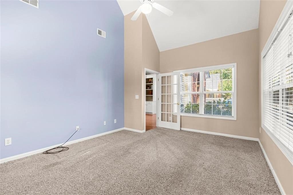 Welcome to this beautiful and spacious one-level condo offering three bedrooms (plus a versatile bonus room!) and two full baths. The open layout is filled with natural light, creating a warm and inviting atmosphere throughout. Family Room with Cathedral Ceiling, real Wood Floors, and inviting formal Fireplace with soaring Built-in Bookcases. Dining Area with wainscoting and Cozy Kitchen with Breakfast Bar and plenty of Cabinets for the cook. Adjacent to Laundry Room and large 2-Car Garage with storage units. Generously sized Primary Suite features a Walk-in Closet and Private Bath with Two Vanities and Walk-in Shower, while Two Additional Bedrooms and the Bonus Room provide plenty of space for family, guests, or a home office. Located in a quiet, well-maintained community, residents enjoy access to a Sparkling Pool and a Clubhouse - perfect for gatherings or relaxing. Neighborhood is just minutes from the East-West Connector with great shopping and restaurants nearby. Only 1/2 mile from Hurt Road Park and a mile from the Silver Comet Trail. One mile to Cobb Hospital. With its convenient one-level design, this home offers comfort, style and ease of living in the heart of Cobb county.