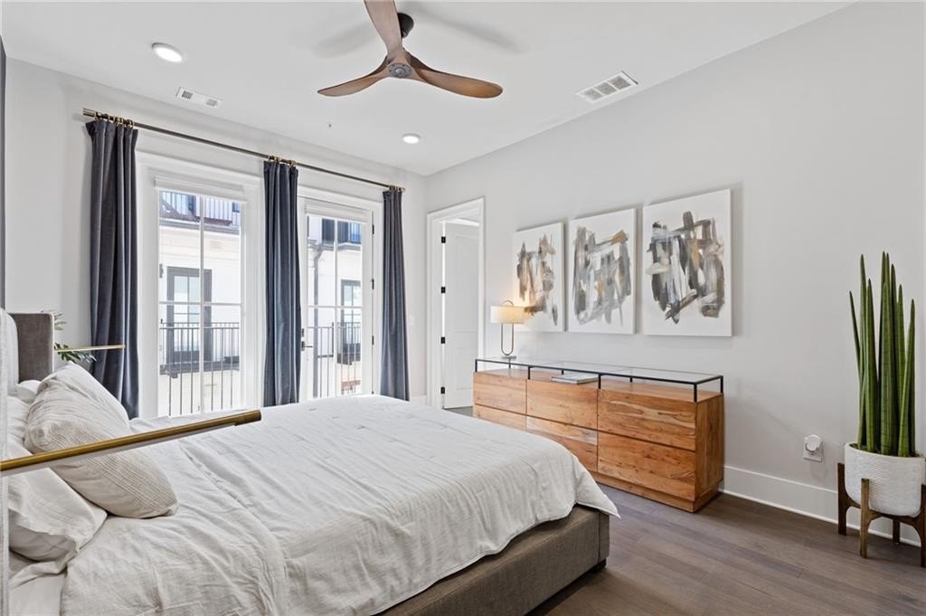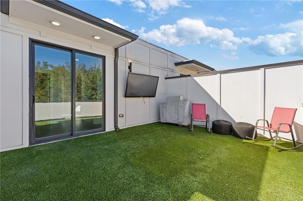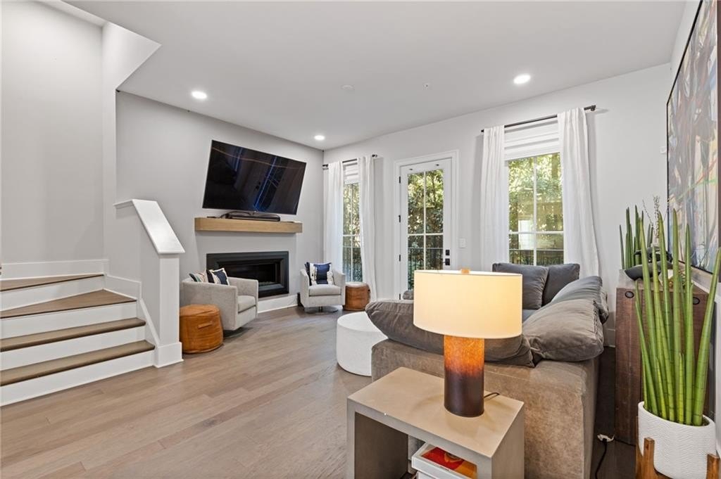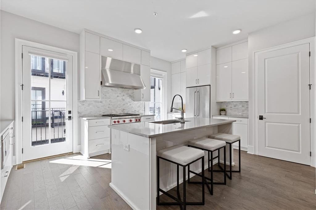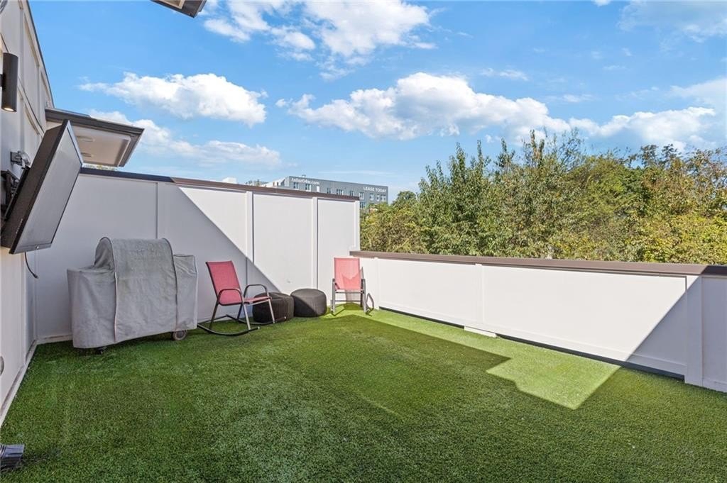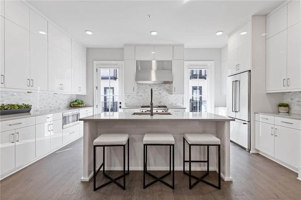 Welcome to 574 Boulevard Place NE #3, a stunning 4-level townhome in the heart of Old Fourth Ward that blends modern design with everyday comfort. Just a short walk to Ponce City Market, the Eastside BeltLine Trail, and all the best of intown Atlanta, this home offers a Walk Score of 88 and the lifestyle to match. Inside, a private elevator connects all four levels, starting with a spacious 2-car garage and a full bedroom suite with private bath and an artistic accent wall—perfect for guests, a quiet workspace, or a creative studio. Upstairs, the chef’s kitchen features a 6-burner Wolf range, professional vent hood, quartz countertops, marble herringbone backsplash with hidden outlets, under-cabinet microwave, and sleek, glossy ceiling-height cabinets—a standout feature reflecting today's top design trends that favor style, function, and personality. The open living and dining areas include a fireplace, designer lighting, and two balconies that invite fresh air and natural light. On the third level, the primary suite spans the entire floor, and includes a balcony, brick accent wall, luxury bathroom with backlit mirrors and under-cabinet lighting, a large custom closet, and a conveniently located laundry room. The top level offers two rooftop decks with sweeping views of Ponce City Market and the Bank of America tower, along with a wet bar, beverage fridge, full bath, and additional bedroom—perfect for entertaining or retreating in peace. Beautiful and durable engineered hardwoods run throughout, grounding the sleek design in warmth and comfort. This home is stylish, functional, and quietly luxurious—urban living at its finest! (Furnishings are negotiable)