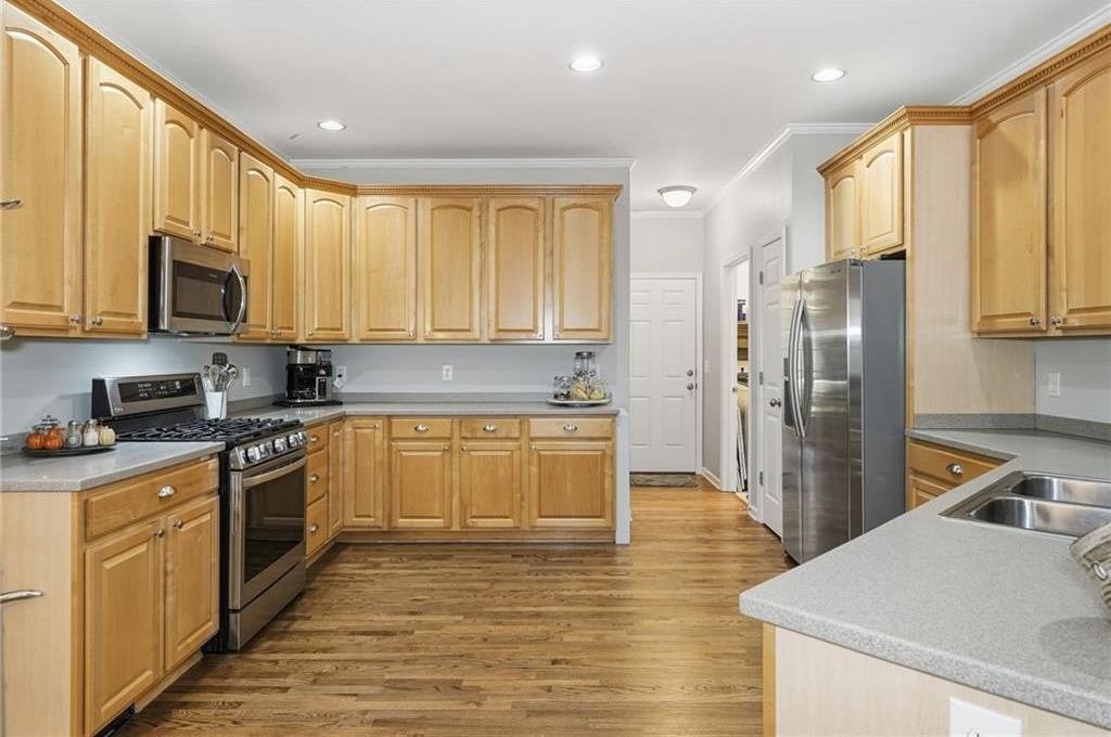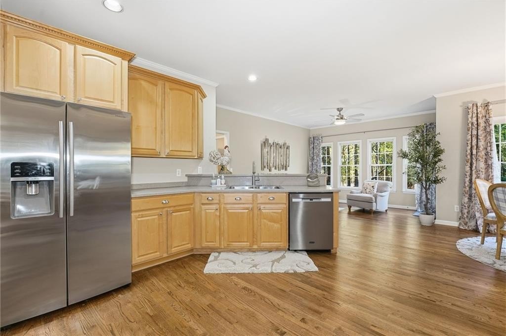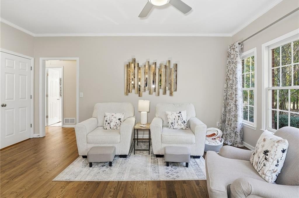 Welcome home to this beautiful Ranch 4 sided brick, private lot, no HOA, 3 car garage with circle driveway with extra parking spaces, in Cobb County! This hard to find 4 bedroom 2.5 bath custom 4-sided brick ranch is located on almost an acre private lot. This home features a bright open floor plan, hardwoods that have been recently refinished throughout the main, all new paint on the interior and exterior, NEW ROOF, new lighting, and updated landscaping. As soon as you enter the foyer you can see the love & care of this home! Home features Large great room with painted brick fireplace which opens to Kitchen with lots of cabinets, stainless appliances, breakfast bar, large breakfast area & keeping room that leads to the large formal dining for family gatherings. Another great feature this home offers is a split bedroom floor plan with a large master on the right side of the home, his and hers closets, a private door that opens to an enclosed back deck, office or 4th bedroom in the middle of the plan and two good-sized bedrooms and full bath on the other side of the home. Heading to the basement you will see how it mirrors the upper level along with a finished bonus room, finished storage area, workshop, boat door & large unfinished area that could be a future bedroom, media room or game room, also including a safe room. A lot of potential for further growth! Returning to the upper-level head to the back of the home to enjoy the view off the screened in porch and the trex finished deck! Additional features include an entry level garage. Minutes away from shopping, schools, and restaurants!