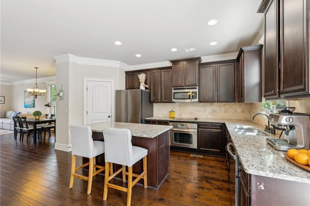 Enjoy modern comfort and convenience in this sun-filled end-unit townhome. The open layout features hardwood floors, crown molding, built-ins, and brand-new carpet. The kitchen shines with a large island, stainless steel appliances, a walk-in pantry, and a sunny breakfast nook that flows into the cozy fireside living room. Upstairs, the spacious owner’s suite includes two walk-in closets and a relaxing bath. The terrace level offers flexible space for a guest room, home office, or studio. Step out onto the private deck to enjoy your morning coffee or unwind after a long day. With a new roof, two-car garage, extra guest parking, and an ideal location near GA 400, MARTA, North Point Mall, and the Big Creek Greenway, this home offers the best of both city convenience and suburban charm.