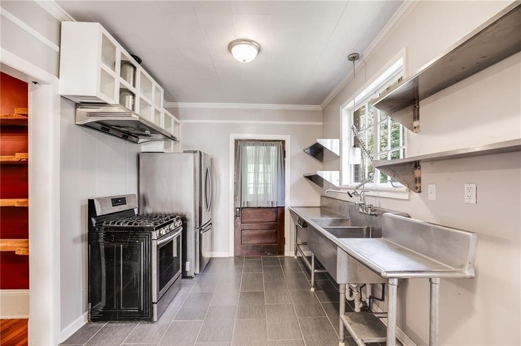 The chef-style kitchen features restaurant-grade upgrades including a 6-burner gas range, industrial stainless-steel shelving, deep double sink, and a walk-in pantry—perfect for culinary enthusiasts or those who love to entertain. Notable Features Include: