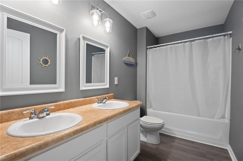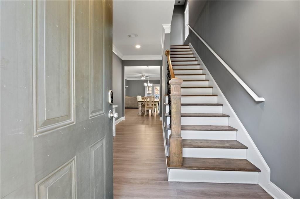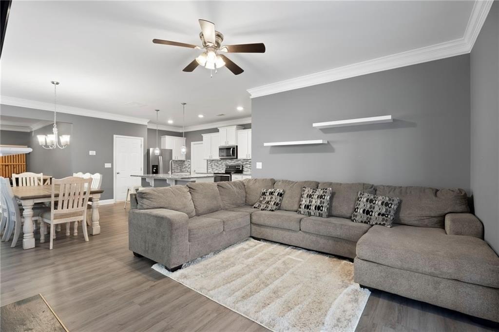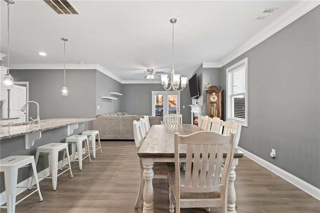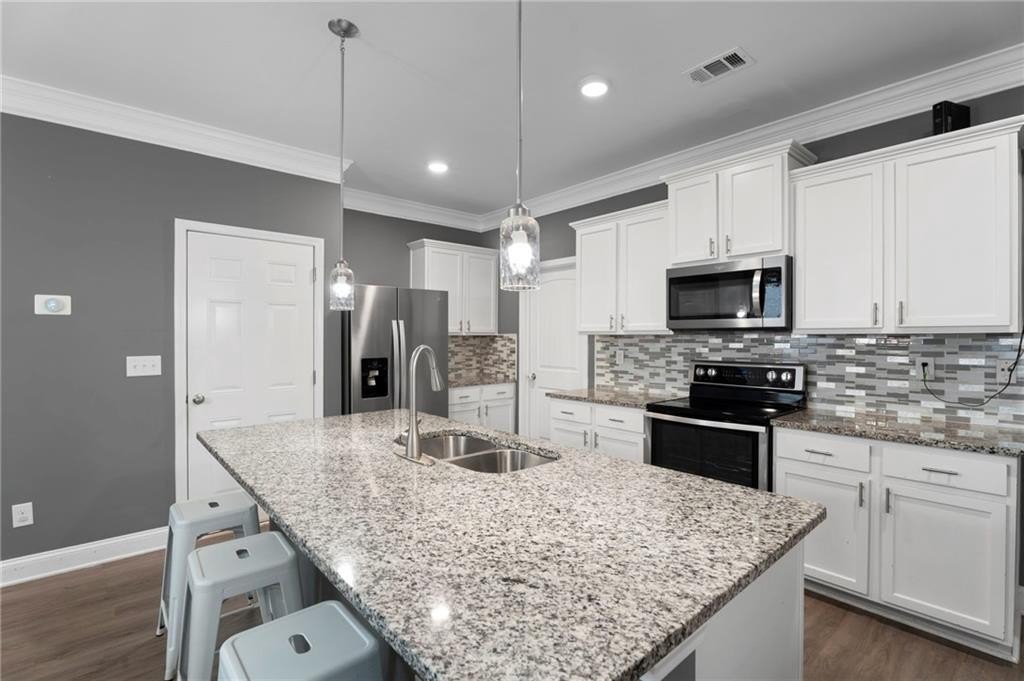 Welcome to 515 Altama Way, where warm, livable style meets thoughtful upgrades in one of Acworth’s most convenient locations. From the moment you step inside, the home feels open, inviting, and designed for real life. The main level features wide open sightlines between the living, dining, and kitchen areas, perfect for everyday living as well as entertaining. Crown molding, soft gray tones, and abundant natural light create a calm and cohesive aesthetic throughout. The kitchen is both beautiful and functional, offering a large granite island with seating, white cabinetry, and stainless appliances. Whether you are hosting friends or enjoying a quiet breakfast, this space truly works as the heart of the home. The living room centers around a cozy fireplace and opens to the fenced backyard through French doors, making indoor to outdoor flow effortless. Upstairs, the primary suite is a retreat, but what truly sets it apart is the custom designed walk in closet system. Every inch is intentionally planned with dedicated shelving, shoe cubbies, hanging zones, and even a built in window bench. It is the kind of closet that simplifies mornings and sparks joy daily. Additional bedrooms are well sized and flexible for work from home, guests, or play spaces. With 5 bedrooms, 3 full baths, and an attached garage, this home is designed for how real life is lived. And the location could not be better, just minutes to everyday essentials and quick access to I 75 and I 575, so whether you are heading to work, Woodstock, or out for the weekend, getting there is easy.