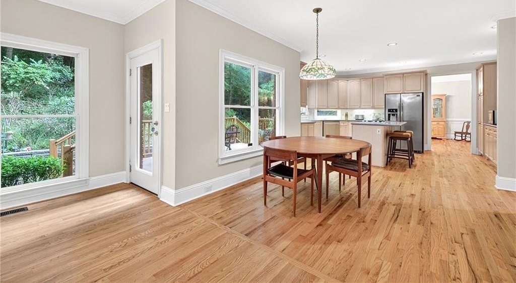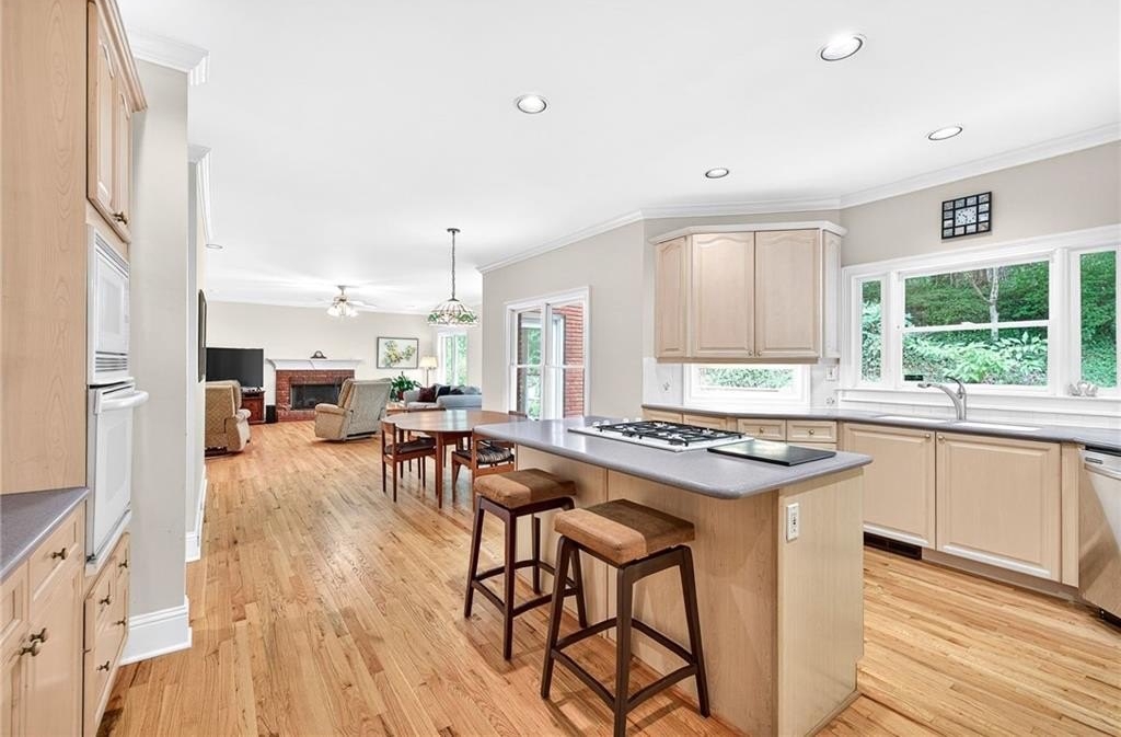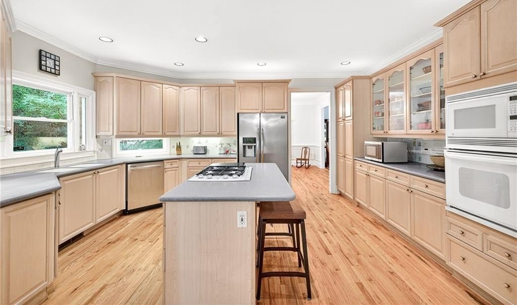 Welcome to this stately all-brick traditional home nestled on a quiet cul-de-sac street in the highly sought-after Oak Grove neighborhood. Step into the beautiful two-story foyer featuring hardwood floors on main level, a bright and open floor plan and wonderful space throughout! The main level offers multiple living spaces including a formal dining room, living room, bedroom with full bath, large fireside family room open to expansive kitchen with loads of cabinet and counter space, center island with gas cooktop, and a large eat-in kitchen. Off the kitchen and great room is a wonderful private backyard with a large deck and loads of outdoor space ideal for grilling out and entertaining family and friends! Upstairs includes upgraded hardwood floors in the primary bedroom with a large ensuite bath and wonderful walk-in closet. Three additional bedrooms plus bonus room up including two with a shared bath, a third bedroom with ensuite bath, and a huge bonus room that would make an excellent media room, rec room, teen suite, or additional bedroom. The home has been meticulously maintained featuring a brand new roof, newer HVAC units, refinished hardwoods, and an ideal layout allowing for the buyer to make the space their own! Excellent neighborhood and fantastic Oak Grove location minutes to shopping, schools, restaurants, and so much more!