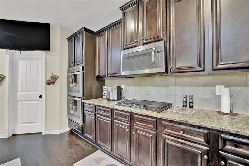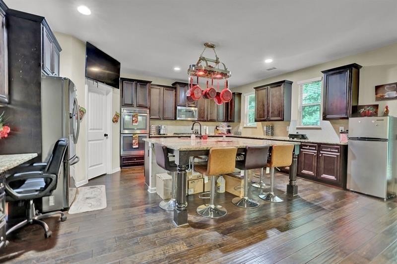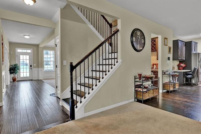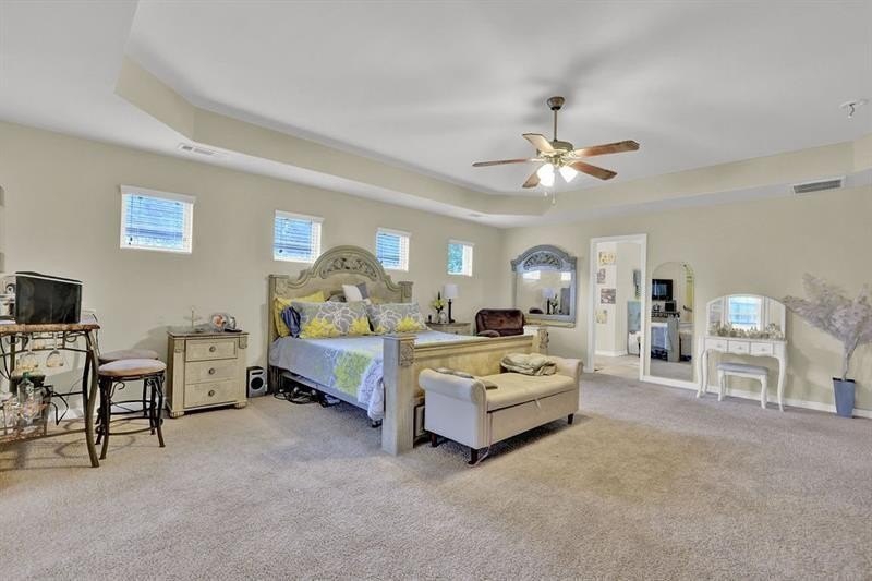 4.125% ASSUMABLE rate available via ROAM!!!! STOP THE CAR!!! This Stunning 4-Sided Brick Beauty in the Highly Coveted Baycreek Gated Community is waiting for its next perfect Owner! Welcome to the elegance, comfort, and space in the award-winning Loganville School Cluster. This 5-bedroom, 4-bathroom home has it all—perfectly blending luxury and functionality. From the moment you arrive, the inviting rocking chair front porch sets the tone. Step inside to gleaming hardwood floors and a grand foyer flanked by a formal dining room with coffered ceilings and custom crown molding. Across the hall, a spacious guest suite with a full bath offers the perfect retreat for in-laws or visiting guests. The expansive family room flows seamlessly into a chef’s dream kitchen featuring a MASSIVE island, stainless steel appliances, granite countertops, an oversized walk-in pantry, and ample cabinet space. Entertain in style with a separate butler’s pantry and built-in wine rack—ideal for hosting or crafting your favorite cocktails. Upstairs, prepare to be amazed by the truly oversized master suite, complete with a large sitting room—perfect for a home office, nursery, or personal gym. The luxurious en-suite bath boasts a dual vanity, soaking tub, custom tile shower with glass enclosure, and a dream master closet with direct access to the laundry room for ultimate convenience. Three additional spacious bedrooms upstairs offer soaring cathedral ceilings, walk-in closets, and access to two more full bathrooms. One bedroom even opens to its own private balcony—your perfect spot for morning coffee or quiet evenings. All of this is situated on a level, flat lot in a beautifully maintained and gated community, just minutes from top-rated Baycreek Elementary and Loganville schools. Homes of this size and quality rarely come on the market—don’t miss your chance to make this DREAM home YOUR reality! Schedule your showing today!