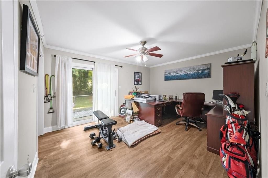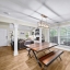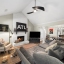 An airy, light-filled living room greets you upon entry, where soaring vaulted ceilings and a cozy fireplace create an immediate sense of home. The open layout flows effortlessly from the living area to a dedicated dining space and a well-appointed kitchen, designed for both casual mornings and lively entertaining. This level also features a versatile bedroom with a spacious walk-in closet and a full bath, offering ideal accommodations for guests or a private home office.