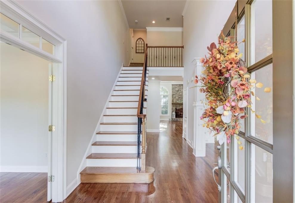 Enjoy the warmth of three fireplaces, newly finished hardwood floors, fresh interior paint, and brand-new carpet throughout. Elegant dual staircases, high ceilings, and expansive windows complete the home’s bright and airy feel.