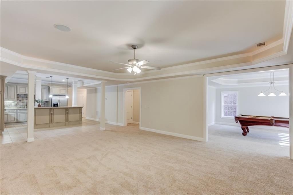 The fully finished basement features a full kitchen and a soundproof theater room, perfect for entertaining guests or accommodating multi-generational living.