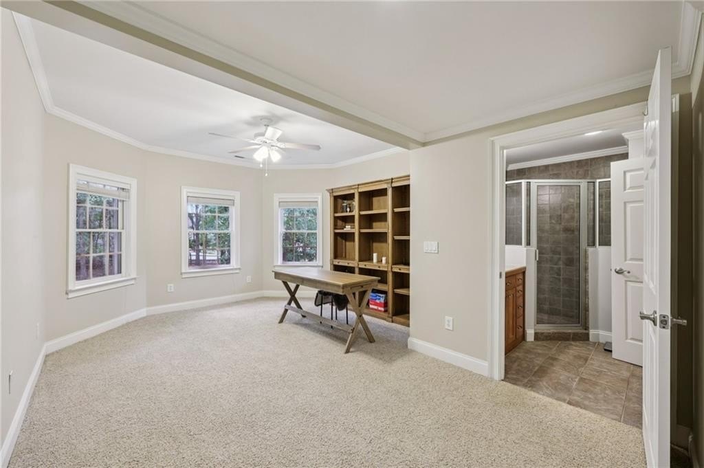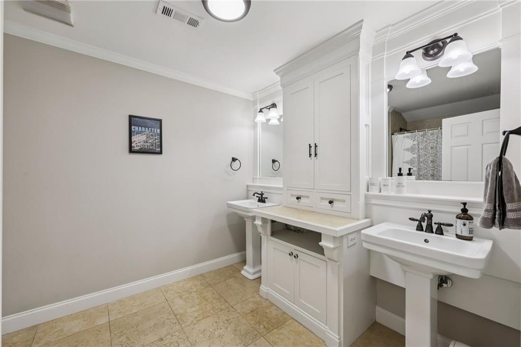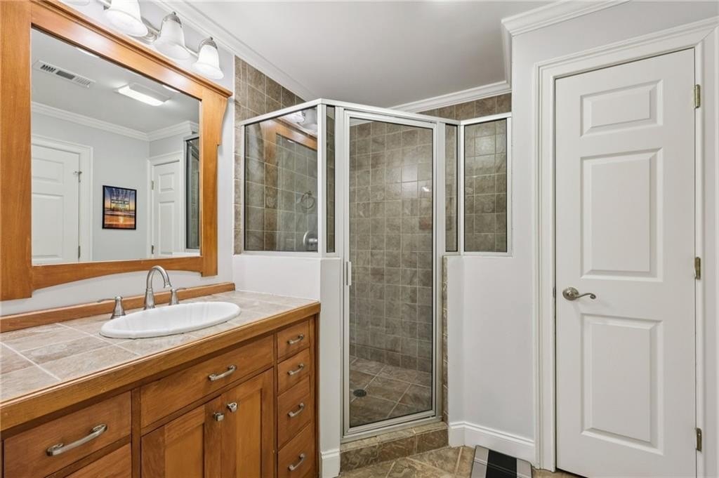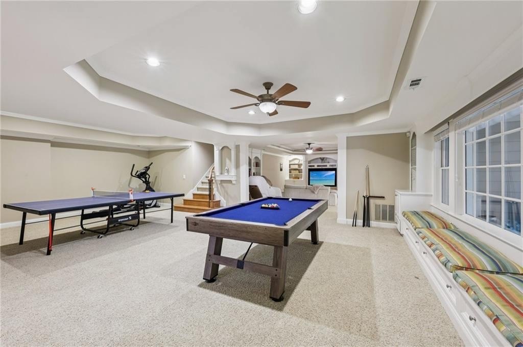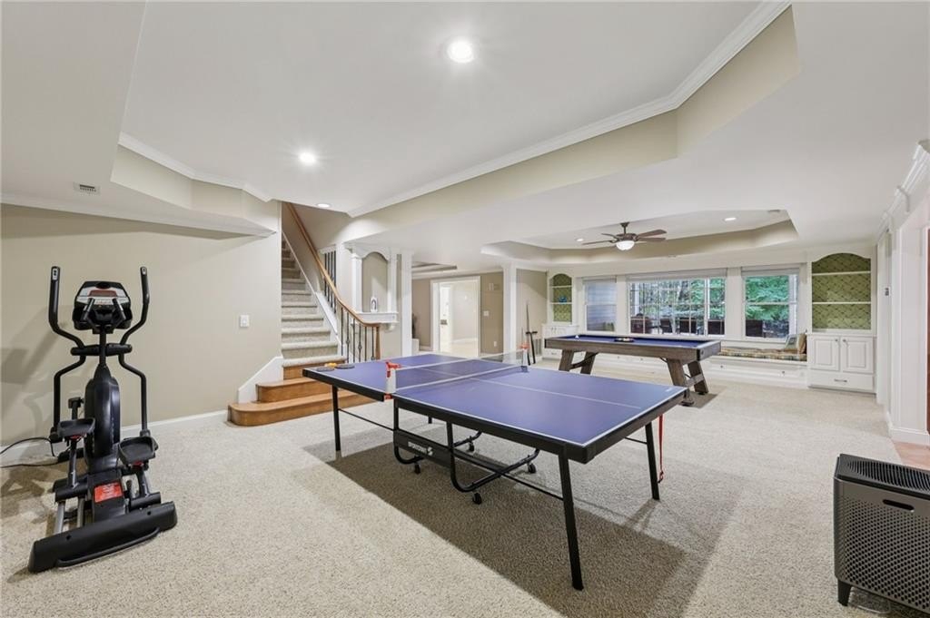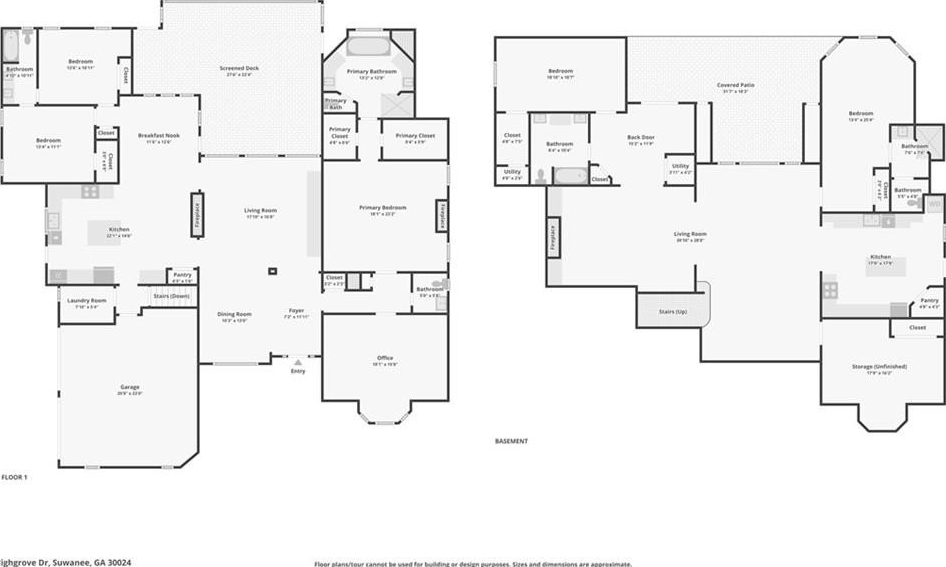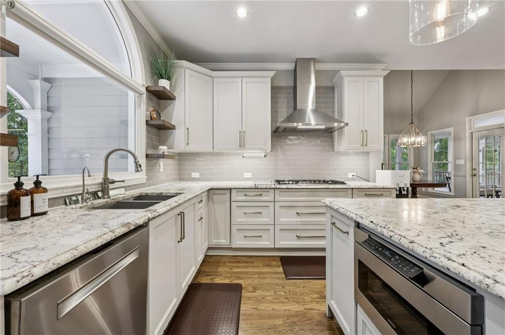 Stunning custom-built brick ranch in highly sought-after Grand Cascades and top-rated Lambert High district! This beautifully updated home features a split-bedroom plan with a large main-level office, refinished hardwood floors, new carpet, and fresh designer paint inside and out. The completely remodeled kitchen showcases upgraded Bosch stainless appliances, top-of-the-line granite countertops, and a spacious keeping room with a double-sided fireplace shared with the 12’ ceiling great room. The elegant owner’s suite offers a deep tray ceiling, sitting area with fireplace, and a luxurious spa bath with dual granite vanities, soaking tub, walk-in shower, and his-and-hers closets. The terrace level is ideal for multigenerational living with two private bedroom suites—each with full baths—plus a full kitchen, media room, double recreation rooms, and storage/workshop space. Relax on the huge screened porch overlooking the level, fenced backyard. Even more recent upgrades include two new water heaters and new main-level HVAC. Main floor powered by gas; terrace level by electricity. Enjoy resort-style amenities including an Olympic-size pool, lake, 6 tennis courts, trails, clubhouse, fitness center, sports fields, and playgrounds. Perfect blend of luxury, flexibility, and comfort in one of Suwanee’s premier communities!