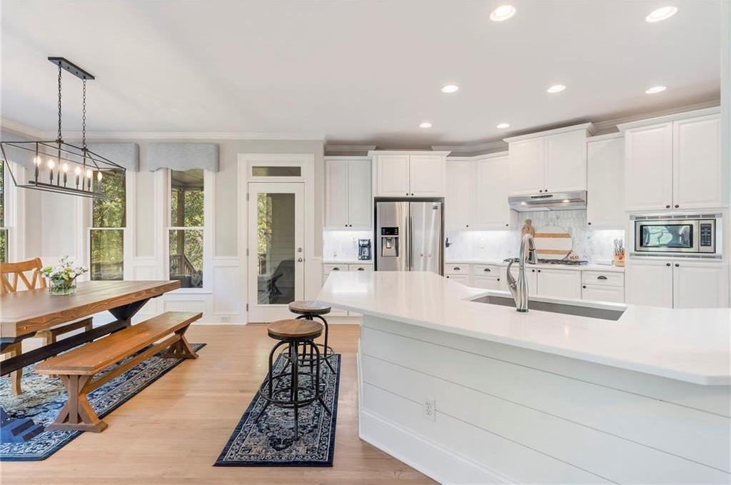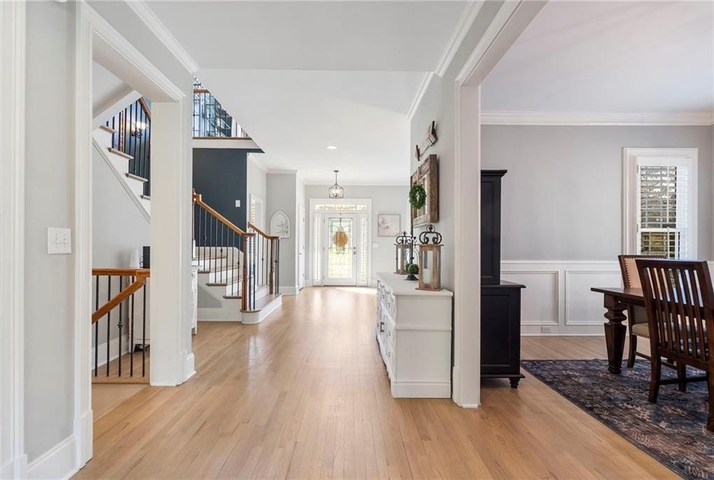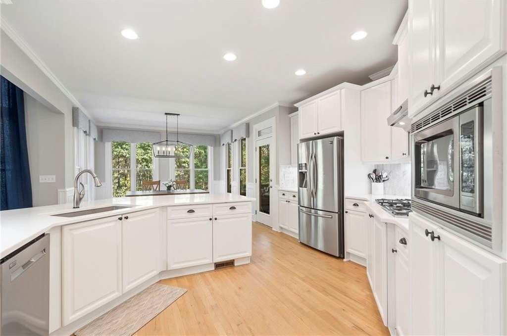 WELCOME HOME TO THIS STUNNING UPDATED JEREMY RUTENBERG HOME IN SOUGHT AFTER BENTWATER. This Five Bedroom 5.5 bath on a private yard with A BEDROOM ON MAIN in North Paulding High school district does not disappoint. Amazing Front Porch greets you as you enter into a Gorgeous Foyer with tons of space, not to mention the beautiful staircase and NEW LIGHT HARDWOOD FLOORING throughout. Beautiful Dining Room that seats 8-12 with updated light fixtures and crown molding. Spectacular Family Room with Stone Fireplace, BOOKCASE with Wall of Windows which opens to recently UPDATED KITCHEN with double ovens, white cabinets, QUARTZ countertops AND BREAKFAST BAR with Breakfast Area. Nice Size Bedroom on Main with Full Bath. Separate Laundry Room on Main. Upstairs you will find a HUGE LOFT for play area or office. Grand Primary Bedroom is Large with new carpet with Huge Primary Bath with double vanities, Separate Whirlpool Tub and Large Shower with his/her walk-in closets. Third Bedroom is decorated to a tee and has nice bath. Fourth and Fifth Bedrooms are very spacious with 2 more full baths. Did I mention THREE CAR GARAGE AND COVERED PORCH ON THE BACK. Private Backyard with Golf Course Views in the Winter. UNFINISHED BASEMENT is huge with windows that look out to private backyard with wildlife for your everyday viewing. BENTWATER provides a resort style community with Golf, Swimming, Tennis, playgrounds and Hiking Trails which is not too far from Lake Allatoona. Great Schools and Restaurants nearby.