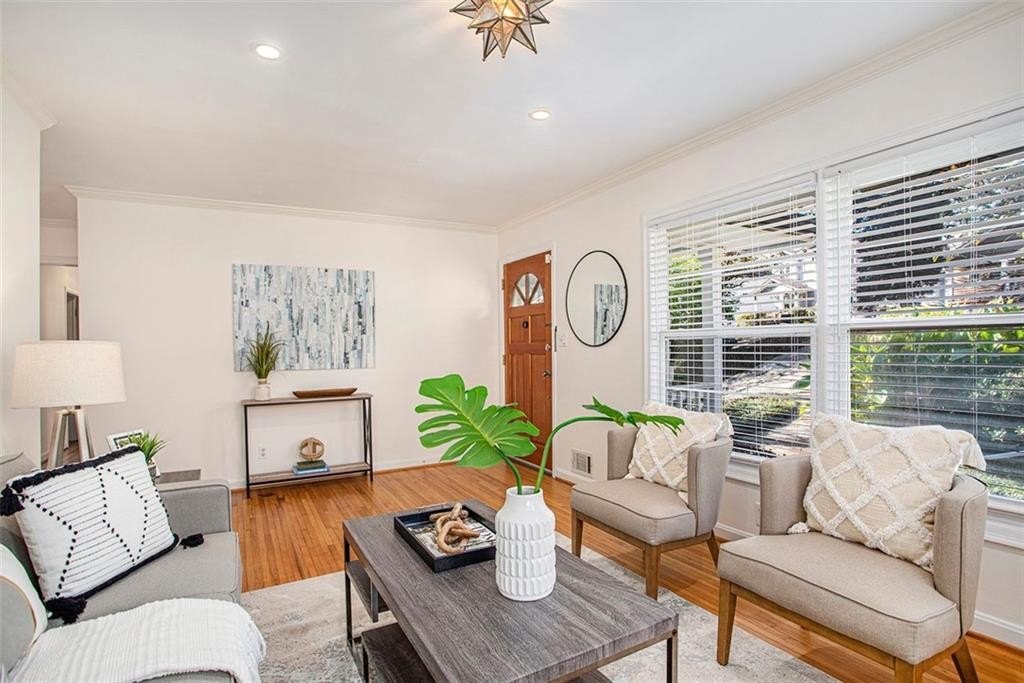 Welcome to your next home in one of the most sought-after neighborhoods in Decatur. With great schools at all levels and close proximity to both Decatur and Atlanta hot spots like Oakhurst, Kirkwood, and East Atlanta, you get all the amenities you want, on a quiet street. And it is priced to sell!! Seller is very motivated, and the price reflects that, as well as giving you plenty of wiggle room to update and craft this home with your own personal tastes. The four-sided brick, mid-century ranch sits amidst a beautifully landscaped front lawn, with granite and stone walkways, snaking around each side of the house, leading to the back deck, the back yard, or up to the roomy front porch. Add a swing or a few rocking chairs, it’s the perfect place to chat with your neighbors during the afternoon dog/kid walking brigade. The front door opens to a sun filled den with gleaming hardwood floors, which leads into the breakfast nook, breakfast bar, and kitchen with newly painted, vintage cabinets and new stainless-steel refrigerator. From there, your French doors open to a beautiful wooden deck overlooking an expansive backyard that backs into Dearborn Park. Talk about privacy! The park is a picturesque destination that features seven acres of green space with a boardwalk and gravel trail, basketball court, picnic pavilions, a playground, running streams, and a tranquil pond stocked with fish. A weekend full of activities, in your backyard. A third door into the side of the kitchen makes bringing shopping goodies, right to the refrigerator and gleaming granite counters, a breeze. Wander further into the home, on blonde hardwood floors throughout, you’ll find the three sun-filled bedrooms. The two guest rooms share a full bathroom which is updated with modern amenities, while keeping vintage touches like original tile and bathtub. At the end of the hall is the sunlit primary bedroom with attached half bath, which could easily be expanded to include a shower (ask for estimates). The interior stairs in the middle of the hall take you down to the attached garage and the finished basement, which includes more livable space: a large bonus room with full bathroom, and adjacent finished office/workroom. Make the basement a playroom, home yoga studio, family entertainment room, or fourth bedroom for guests; with a full bath and separate exterior entrance, family and guests will have plenty of room to live, work, and play. Outside and inside, this is a home that will have something for everyone. Make it yours today!