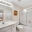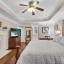The luxurious primary suite on the main boasts a trey ceiling, a double-sided fireplace that serves the Great Room and the Primary Bedroom, and a spa-like bathroom (remodeled approx. 3 years ago) with his & her closets. The main level also offers a guest half bath and a convenient laundry room with sink.
