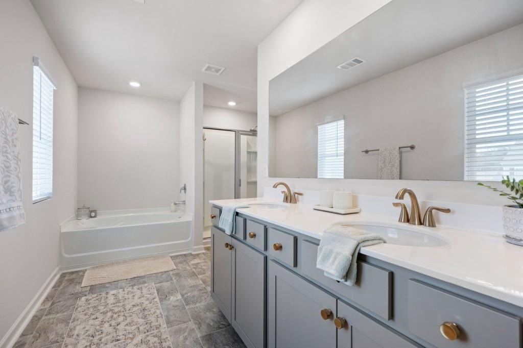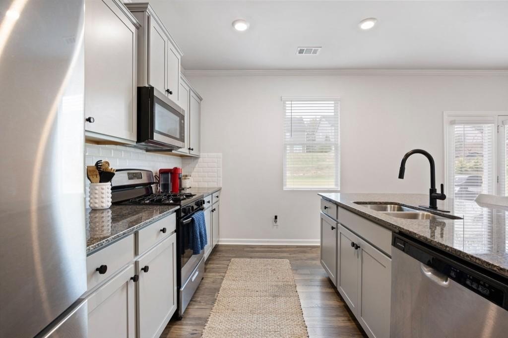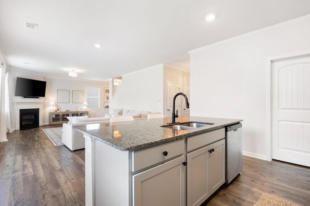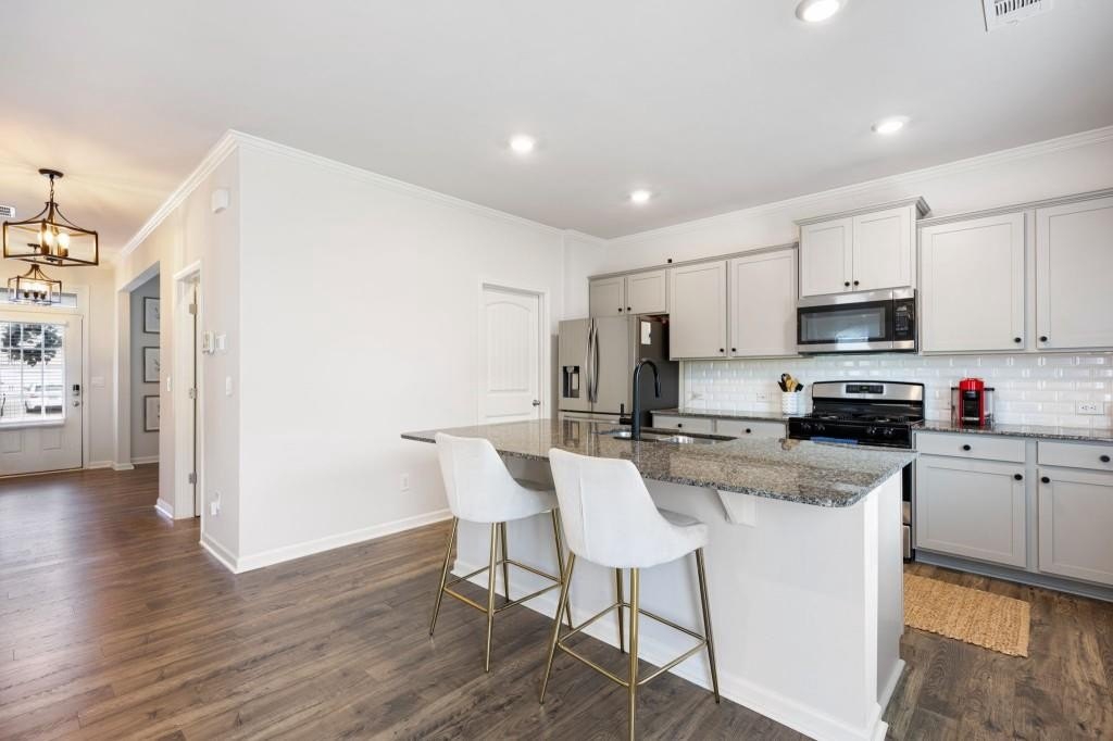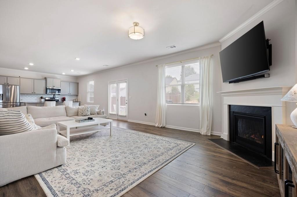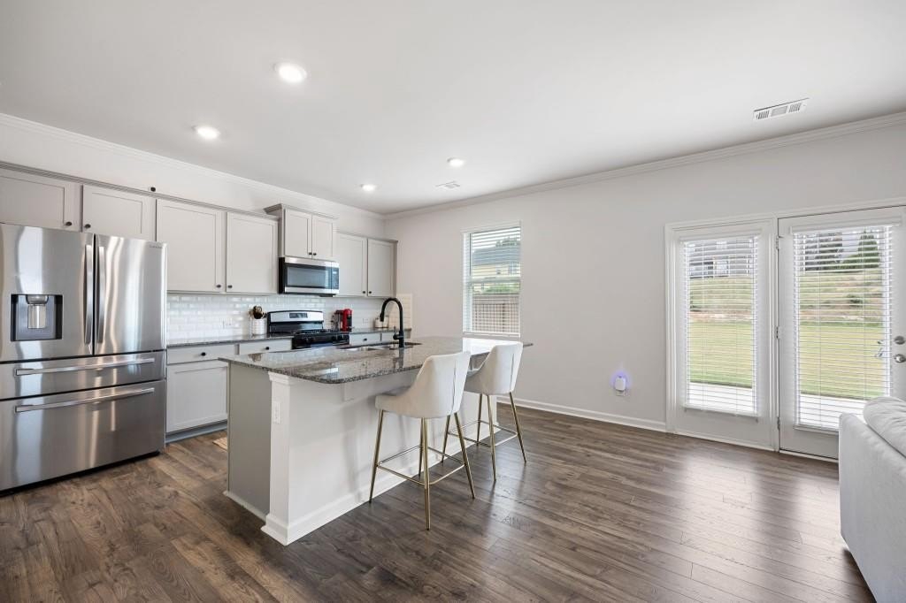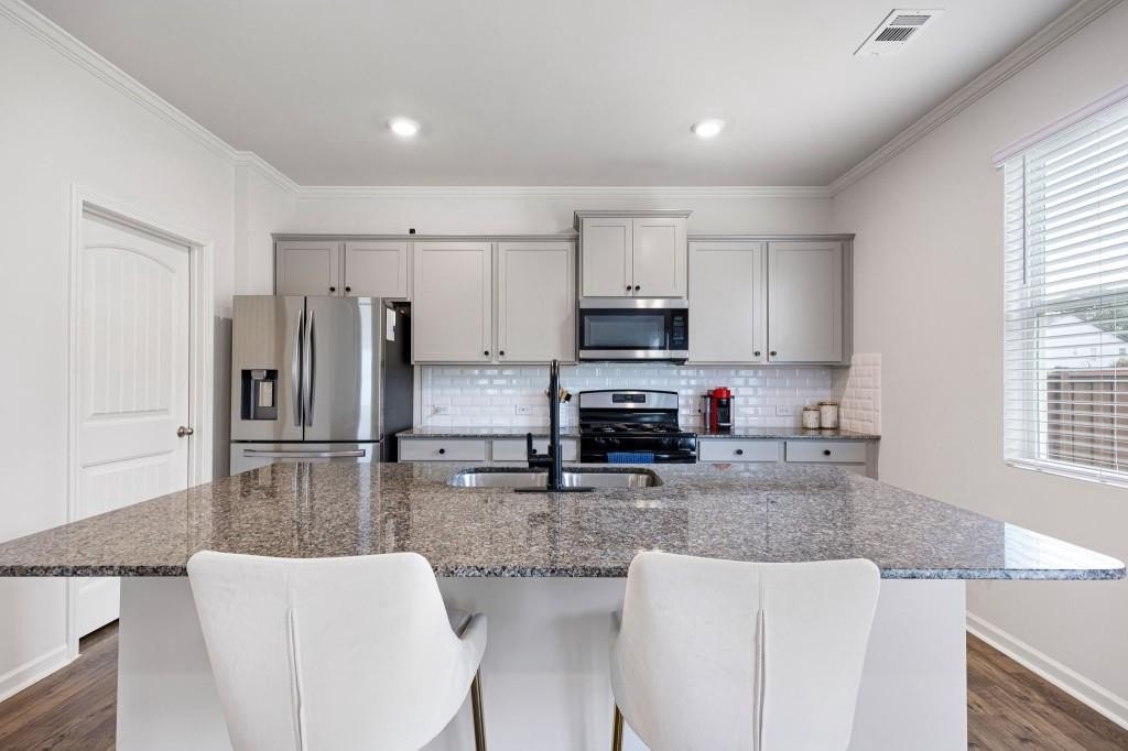 Welcome to this beautiful Galen floor plan in the sought-after Palisades community! From the moment you step onto the covered front porch, you'll feel right at home. Inside, a separate dining room opens to a bright, open-concept main level with LVP flooring and modern light fixtures. The kitchen steals the show with its large island, granite countertops, stainless steel appliances, stylish backsplash, and walk-in pantry - all overlooking a spacious fireside family room that's perfect for everyday living or weekend entertaining. Upstairs, you'll find generously sized secondary bedrooms, a shared bath with double vanities, and a convenient upstairs laundry room. The primary suite is oversized with a walk-in closet and a spa-style bath featuring double vanities, a soaking tub, and a separate shower. The backyard is flat and usable, with a patio that's just waiting for cozy fall nights and summer cookouts. Palisades residents enjoy fantastic neighborhood amenities including swim, tennis, clubhouse, playground, and sidewalks throughout the community. All just minutes from Downtown Dallas, shopping & dining along US-278, and the scenic Silver Comet Trail - where convenience meets community and home feels exactly right!
