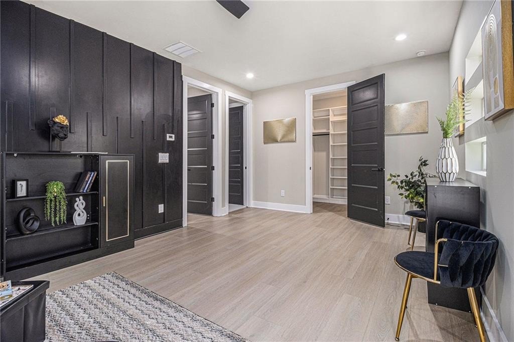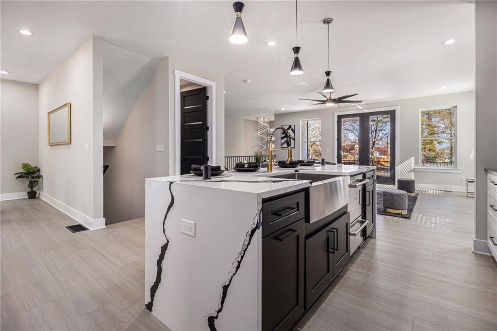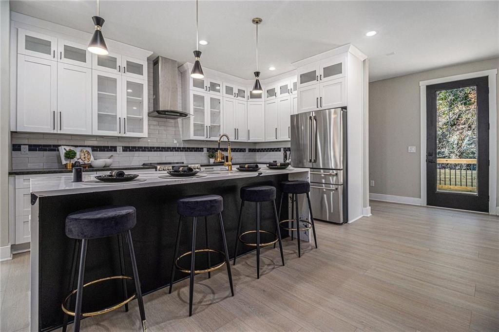 SEXY, MODERN, 3-STORY NEW CONSTRUCTION! Entering the 24-FOOT FOYER with gorgeous chandelier, this home features soaring 9-FOOT CEILINGS on all 3 floors and STATELY 8-FOOT INTERIOR DOORS and 6-FOOT WINDOWS. OPEN CONCEPT floor plan welcomes you to an air of grand opulence. A cozy fireplace & statement wall complete the family area. This showcase home on a level, fenced lot. Enjoy the Chef's kitchen surrounded by new, white, glass-front Shaker-style cabinets, island with breakfast bar, waterfall granite countertops, subway-tile backsplash, and new, high-end 4-piece stainless steel appliance package including a French door fridge, drawer microwave, and double drawer dishwasher. Relax in your oversized primary bedroom retreat featuring a walk-in closet with custom shelving system and an impressive en suite bathroom showcasing a spa resort-style wet room, with a soaking tub and oversized marble-tiled shower with dual rain showerheads. The luxurious shower panel system has a temperature display, adjustable massage jets, a LED rainfall shower head and handheld sprayer. The driveway with dual access and 2 car garage with opener allow for ample room for friends, family & guests. Underground utilities also provide peace of mind during storms. In HOT Grove Park and the Bellwood Quarry development, access to parks abounds. Center Hill Park and its playground, a water feature playground area, are 2 minutes away! Close to everything Atlanta has to offer! HOT APPRECIATING GROVE PARK AREA! INSTANT EQUITY! PRICED $127,300 BELOW ATTACHED $675,000 APPRAISAL! $7,500 TOWARDS BUYER RATE BUY-DOWN.
