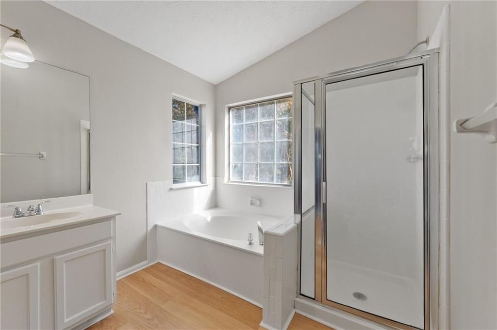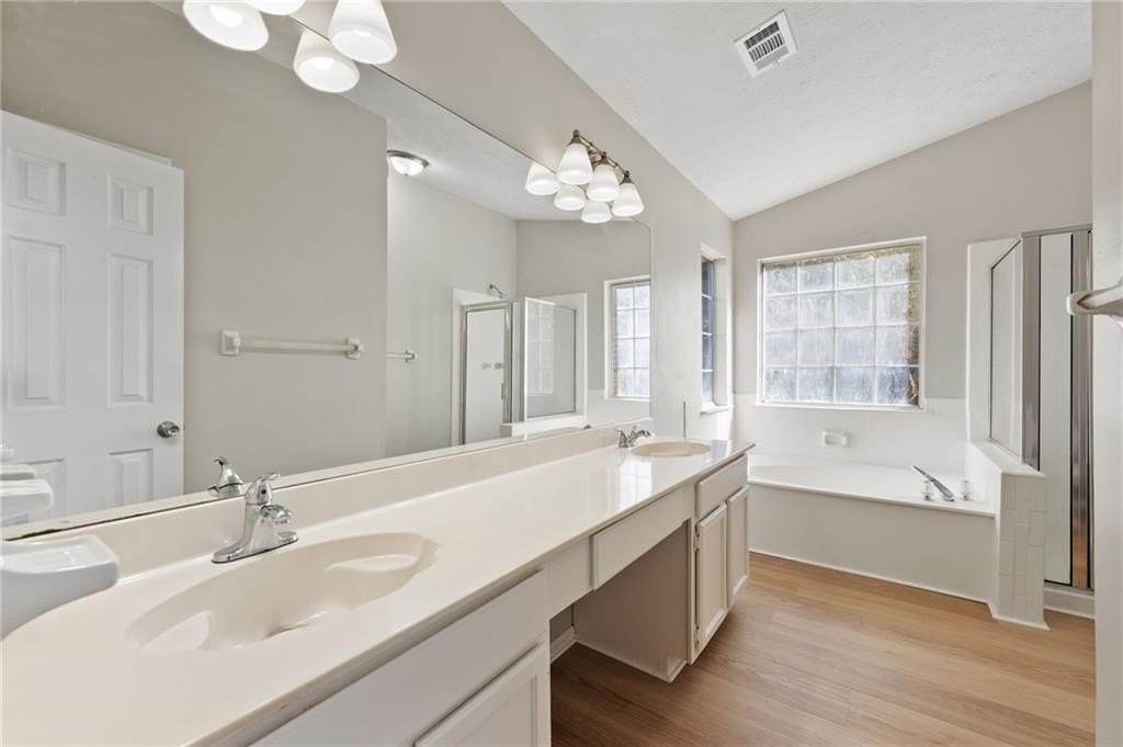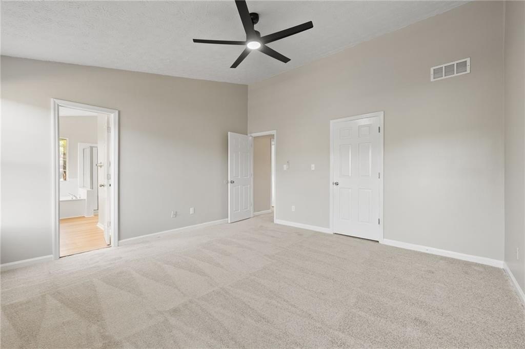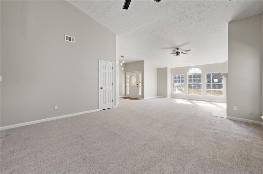 Stunning and move in ready 3 bed/2 bath lakefront ranch home featuring new carpet throughout and new Luxury Vinyl Plank flooring in the kitchen and Master Bathroom, new interior paint, new light fixtures, stainless steel appliances, and a large open concept living area. Wonderful curb appeal and two car garage. Huge open concept living room offers a fireplace and large windows that allow in a lot of natural lighting as well as views to the kitchen and dining area. Huge kitchen offers tons of cabinet and countertop space, island with overhang perfect for barstools, and eat in kitchen area. Large Master bedroom offers tall ceilings and an En-suite with double vanity, soaking tub, walk in shower, and large walk in closet. Two great sized secondary bedrooms and secondary bathroom with large vanity and tub/shower combo. The back deck overlooks the beautiful lake and backyard waiting for your personal touches.