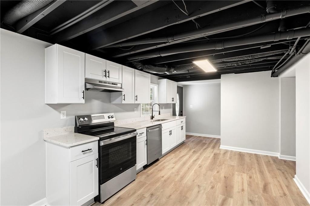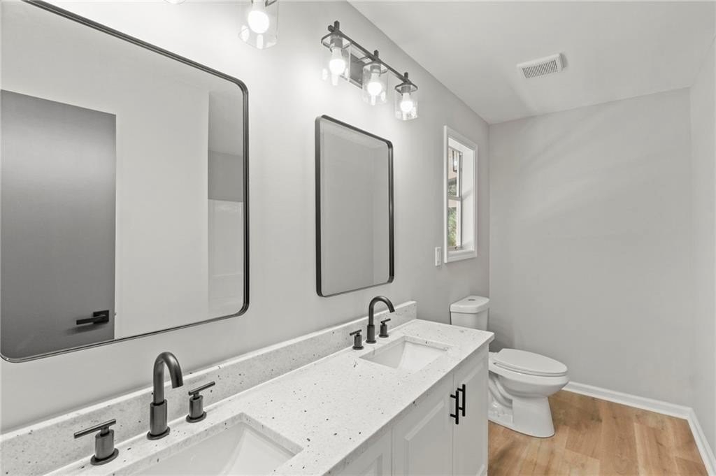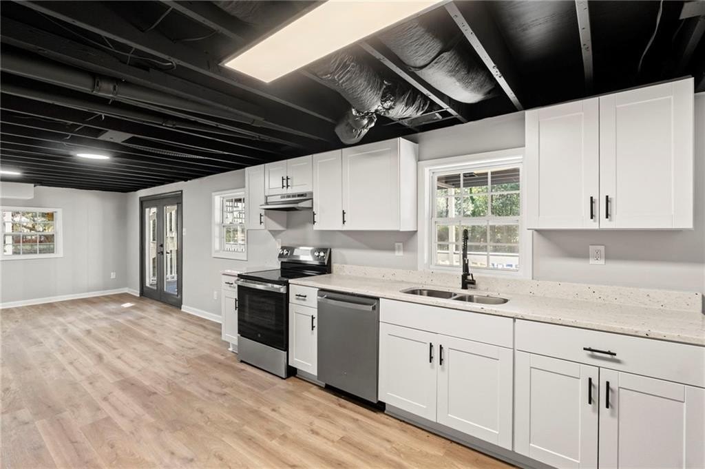 Stunningly renovated 6 bed/4 bath home with a finished basement providing a second kitchen perfect for an apartment or in law suite. Home features brand new Luxury Vinyl Plank flooring, new HVAC, new interior and exterior paint, new lighting and plumbing fixtures everywhere, new granite countertops in kitchen and bathrooms, and new stainless-steel appliances. Home offers beautiful curb appeal with covered front porch and 2nd entrance on the right side. Enter into the large living room with big windows allowing in lots of natural light that leads into the large dining room and picture window. Large kitchen off the living room offers brand new cabinets, granite countertops, and large butlers pantry with 2nd sink. Off the butlers pantry is the huge sunroom. Master on main offers an En-suite with double vanity, low flow toilet, and walk in shower. Full bathroom and laundry room also located on the main level. Upstairs provides two great sized secondary bedrooms and secondary bathroom with new granite, low flow toilet, and tub/shower combo. Basement offers a 2nd kitchen with new cabinets, new granite, stainless steel appliances, and eat-in dining area. Two great sized bedrooms and full bathroom offering walk in shower, low flow toilet, and double vanity. Outside offers plenty of ways to enjoy the vast outdoor space. Large double decks wrap around to the side of the home and overlook the huge backyard with a fire pit.