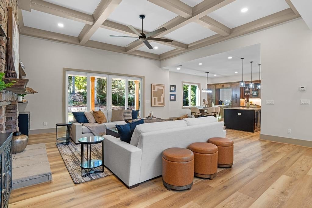 Exceptional new construction home on a private 1.7-acre gated lot in the heart of Peachtree Corners. This custom-built 6BR, 7.5BA home offers 7,000 sq, ft of refined living space and a flexible layout ideal for multigenerational living. The main-level primary suite features a wood-burning stone fireplace, spa bath with whirlpool tub, dual vanities, large shower, and custom closet. A second main-level bedroom with full bath is perfect for guests or a home office. The open-concept great room impresses with a dramatic stone fireplace and handcrafted mantel, flowing into a chef’s kitchen with high-end stainless appliances, wine cooler, and abundant cabinetry. Upstairs are four ensuite bedrooms, a media room with fireplace, and a spacious bonus room ideal for a gym, studio, or playroom. Outdoor living includes a covered patio with stone outdoor kitchen, full irrigation system, and pool permit in place .Space to add guest house or private well. Close to The Forum, top schools, Chattahoochee Park and East Jones Bridge Park with walking trails around river plus playground and picnic areas.