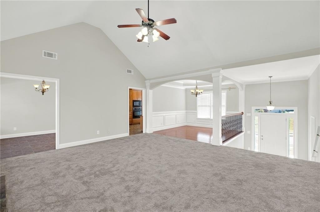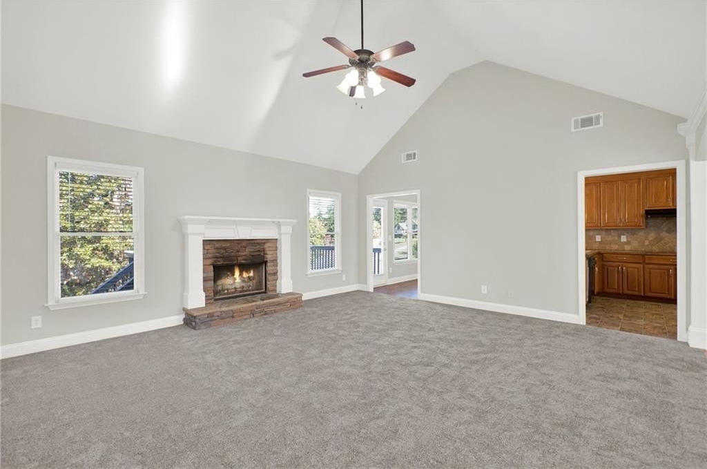 Welcome home! Move in ready, beautiful tri-level home with homey front porch in Silver Creek neighborhood located in North Cherokee County. All major items updated: Newer roof, paint in & out, HVAC, new Carpeting, septic pumped/serviced Sept 2025. Great space with Bedroom, Bathroom, Laundry, & Living/rec room on the main/1st level. Great for teen suite/inlaw. Large vaulted great room with fireplace with dining room on next level along with the kitchen and breakfast room and access to the deck. 3 Bedrooms, 2 full baths upstairs. Lower level includes oversize 2+ car garage and an unfinished basement area.