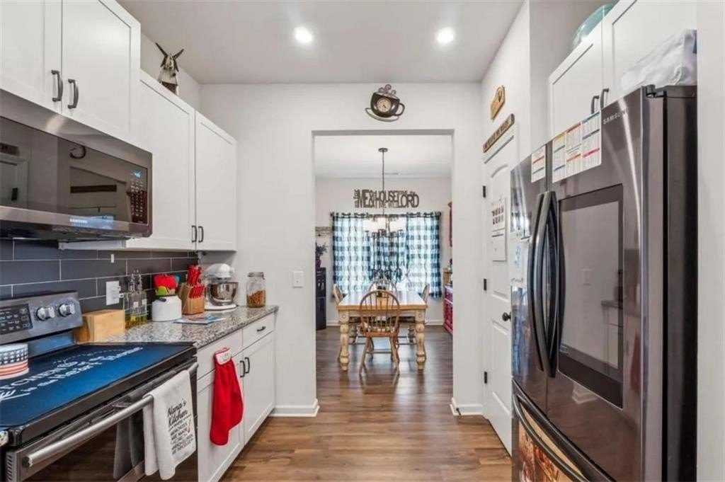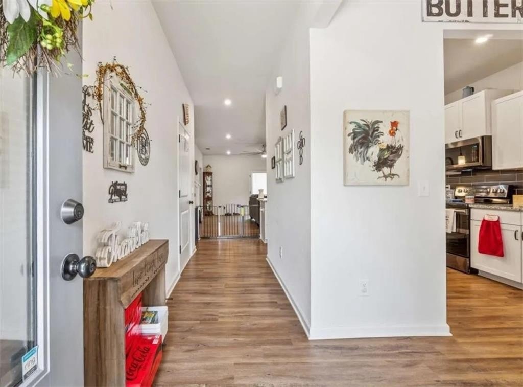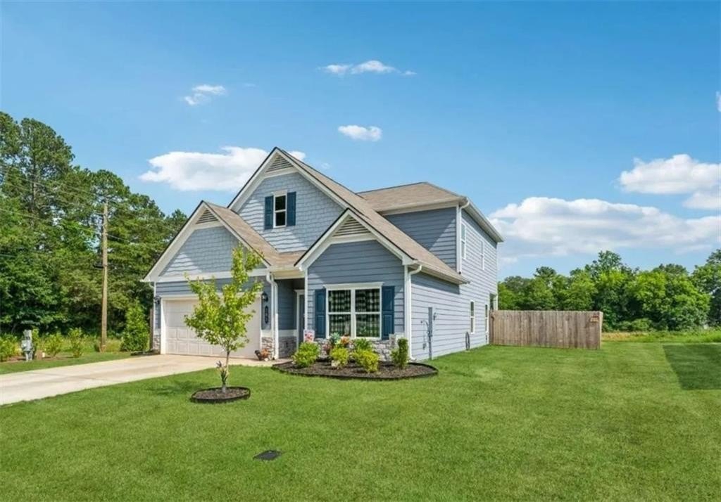 Welcome to this beautiful three-bedroom home situated on a rare double lot. The home boasts many upgrades. With three bedrooms, 2 1/2 baths, located in a desirable subdivision, with a fully fenced yard. The property offers the largest yard in the neighborhood, where there’s space for outdoor living, playing, and entertaining. Inside, you can find a bright open concept with 9-foot ceiling on both levels. Luxury, plank flooring on the main level, while the upstairs is fully carpeted*. The kitchen is equipped with granite countertops, upgraded cabinetry, a pantry, and a peninsula island for all your casual dining or entertaining, which overlooks a spacious family room with a built-in electric fireplace, nearby laundry room, and easy access to the covered patio with your new expansive backyard. The owner's suite, situated on the main level, offers a walk-in closet and a large, upgraded tile shower. Upstairs includes two additional closets in the hall for storage, two more bedrooms with deep closets, and a full-size bath with ample storage. The flexible loft would make a great MEDIA room or extra play area for the kids! Additional highlights include upgraded lighted fixtures with modern finishes throughout. Located in a growing community with nearby schools, parks, and amenities. Move-in ready, this home blends comfort and style while remaining totally functional. Don’t miss this rare opportunity for this DOUBLE LOT home. Schedule your showing today. ***Microwave, Double Oven, and Dishwasher will be replaced***