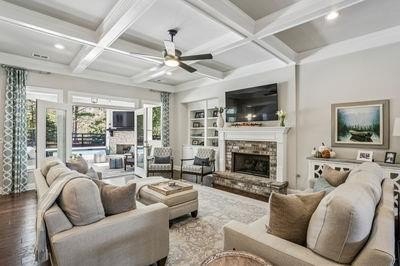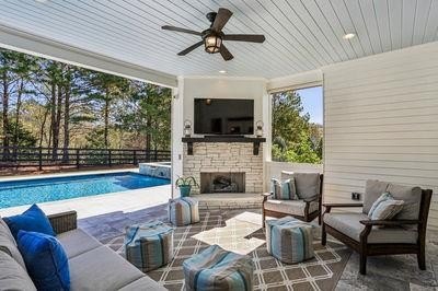 Set on two manicured acres in the prestigious Birmingham Estates community, this striking residence captures refined Southern living with modern flair. Featuring four bedrooms and three-and-a-half baths, the home blends effortless everyday comfort with luxury outdoor living. From the welcoming front porch to the sparkling sport pool and hot tub surrounded by marble decking, every space is designed for connection, relaxation, and entertaining in style. The open-concept floor plan showcases gleaming hardwood floors, abundant natural light, and thoughtful architectural details throughout. The primary suite on the main level provides a peaceful retreat with a spa-inspired bath and generous walk-in closet. The heart of the home centers around the warm fireside great room and gourmet kitchen— ideal for entertaining or everyday living—with an oversized island, custom cabinetry, and a casual dining area overlooking the backyard oasis. Upstairs, you’ll find spacious secondary bedrooms and an expansive recreation room, ideal for movie nights, gaming, or guest accommodations. STORAGE IS ABUNDANT throughout, including a three-car garage, an accessible 12' x 14' temperature-controlled storage room above the garage, and well-organized closets. The covered patio with fireplace and TV makes entertaining effortless year-round, while the manicured lawn offers plenty of space for play and outdoor gatherings. Situated in one of Cherokee County’s most desirable neighborhoods—known for its large estate lots, scenic setting, and charming mail pavilion—this home combines privacy, style, and convenience, just minutes from Milton, Alpharetta, and Crabapple.