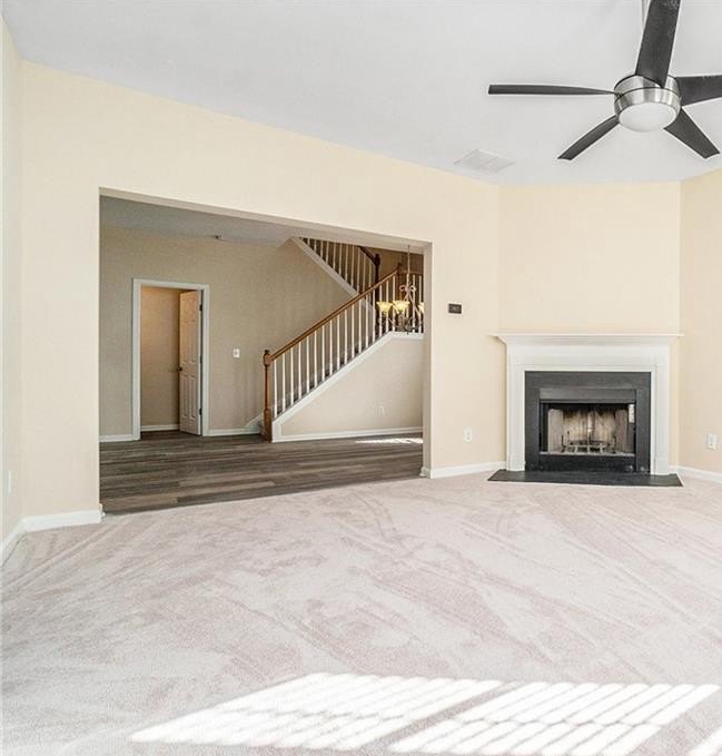 Spacious and beautifully updated home offering 4 bedrooms and 2.5 baths! All bedrooms are conveniently located on the upper level along with the laundry room and two full baths. The primary suite features a generous sitting area, dual vanities, a separate tub, and a walk-in shower. Downstairs boasts an inviting family room with a cozy fireplace, a bright kitchen with a breakfast area open to the dining room, stainless steel appliances, and a walk-in pantry. Fresh new laminate flooring on the main level and new carpet upstairs. The home also includes a convenient garage entry off the kitchen. Note: Square footage listed is incorrect—this home offers much more space than reflected!